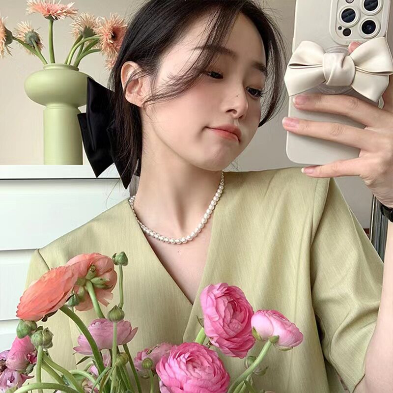 「她非池物」法式輕奢仿珍珠項鍊女ins感氣質鎖骨鍊名媛網紅頸鏈