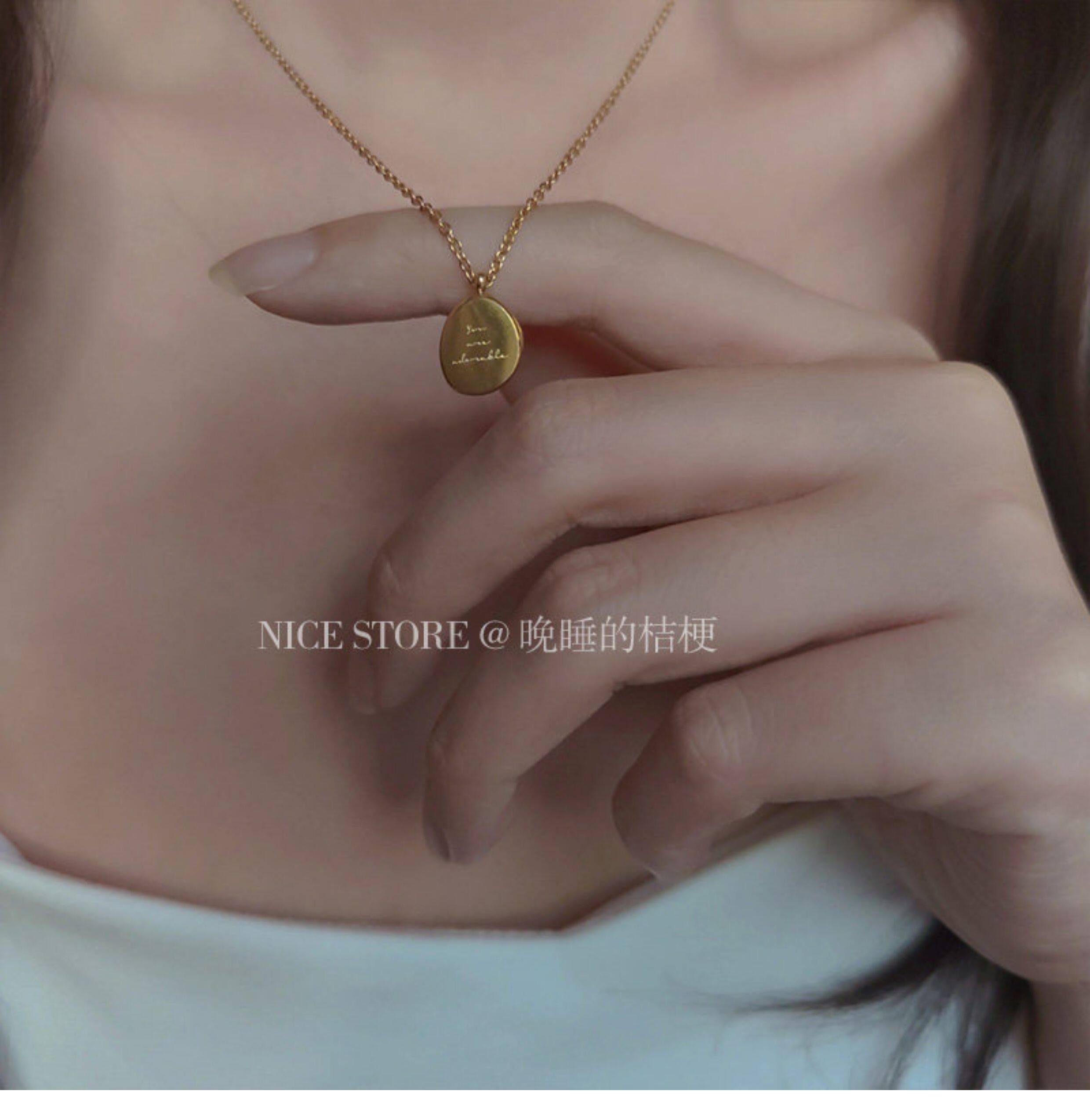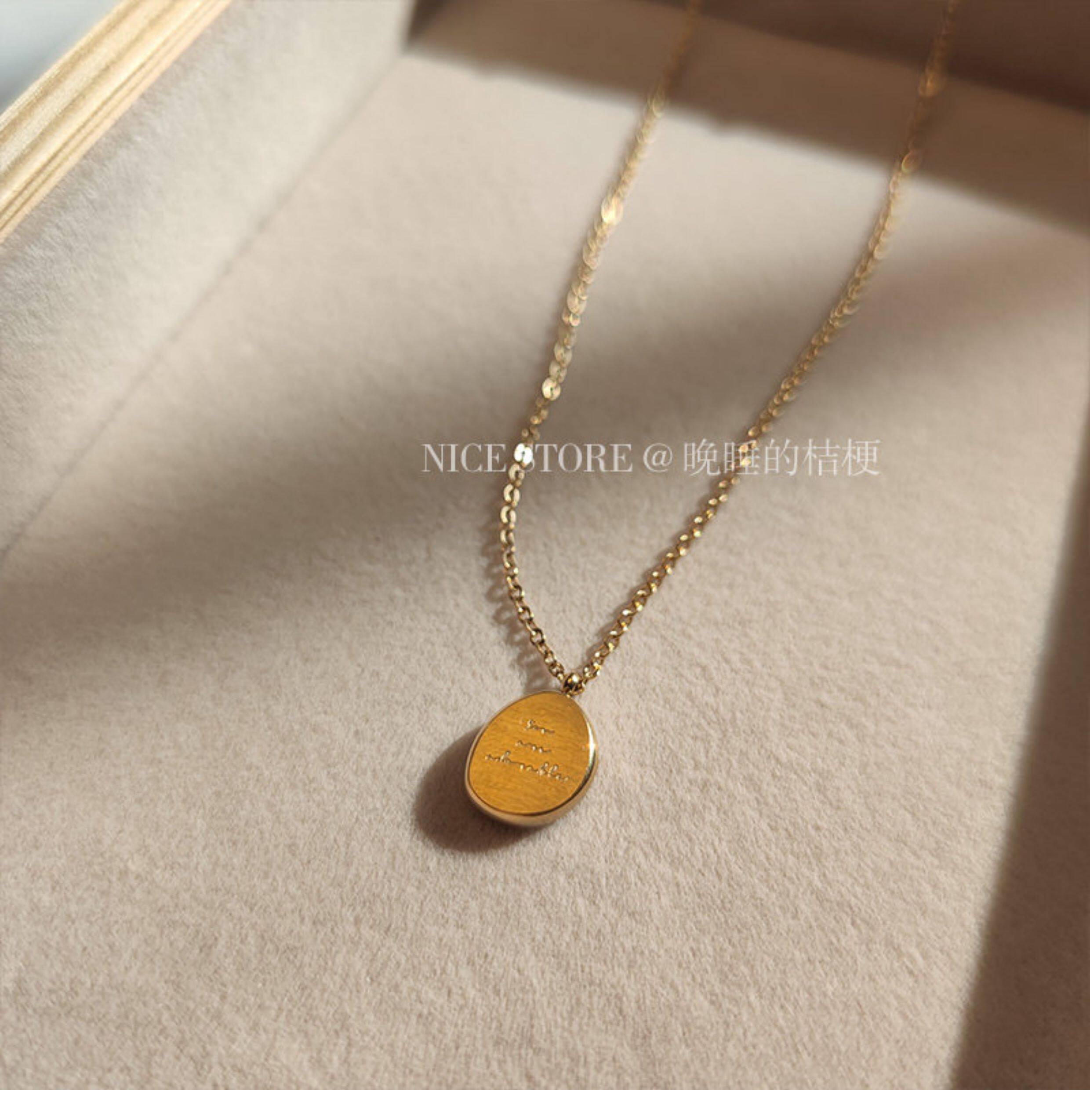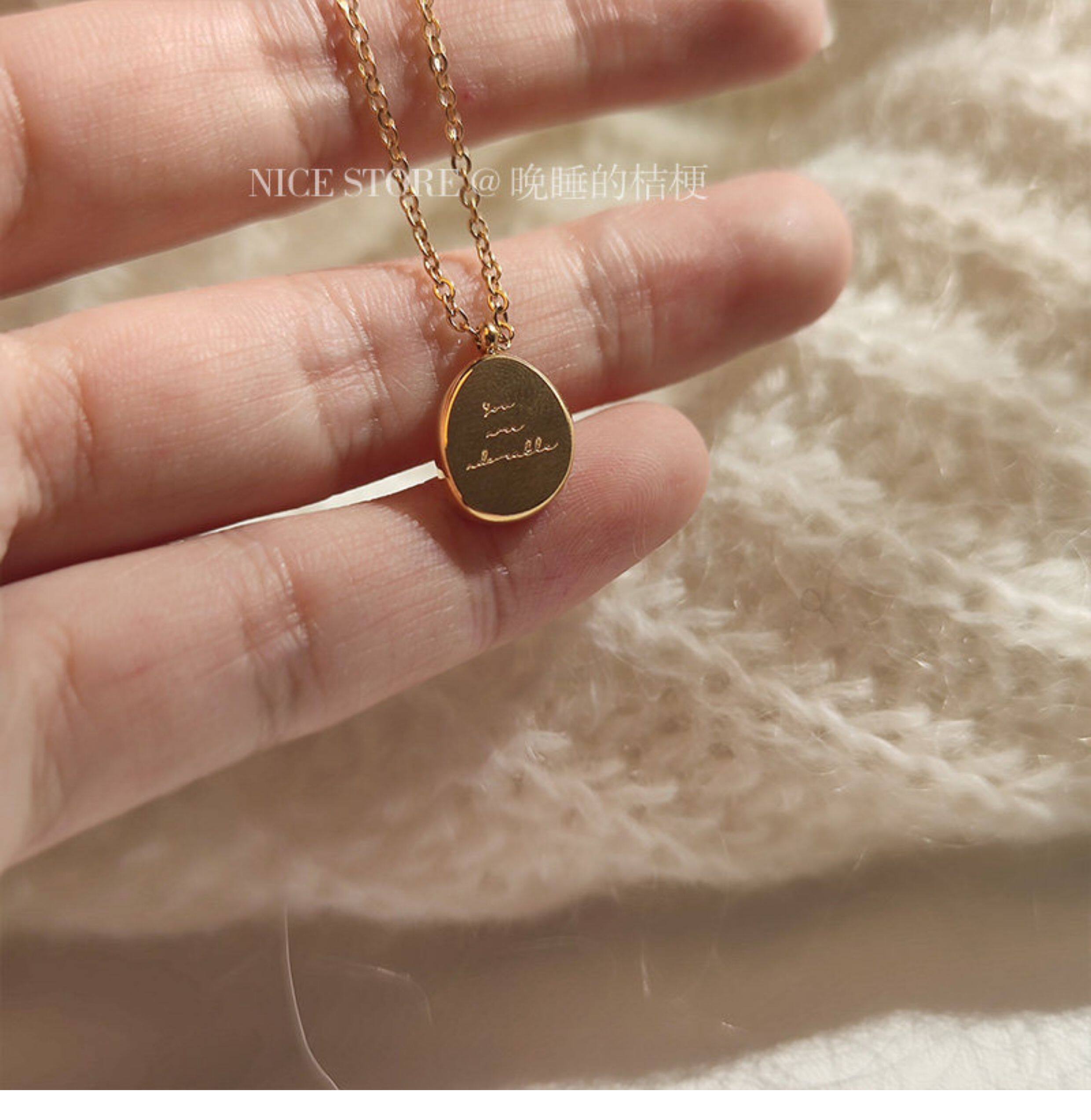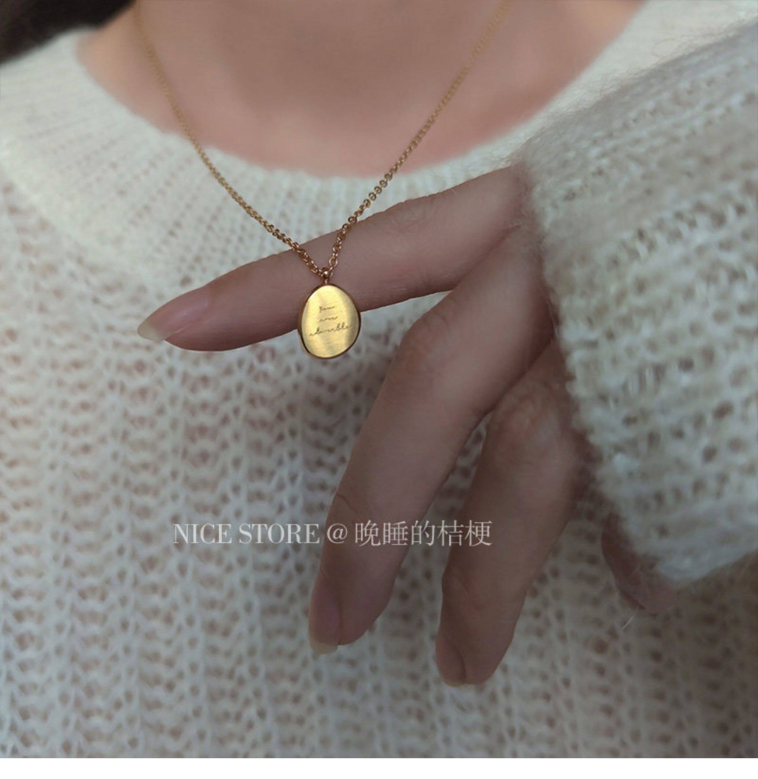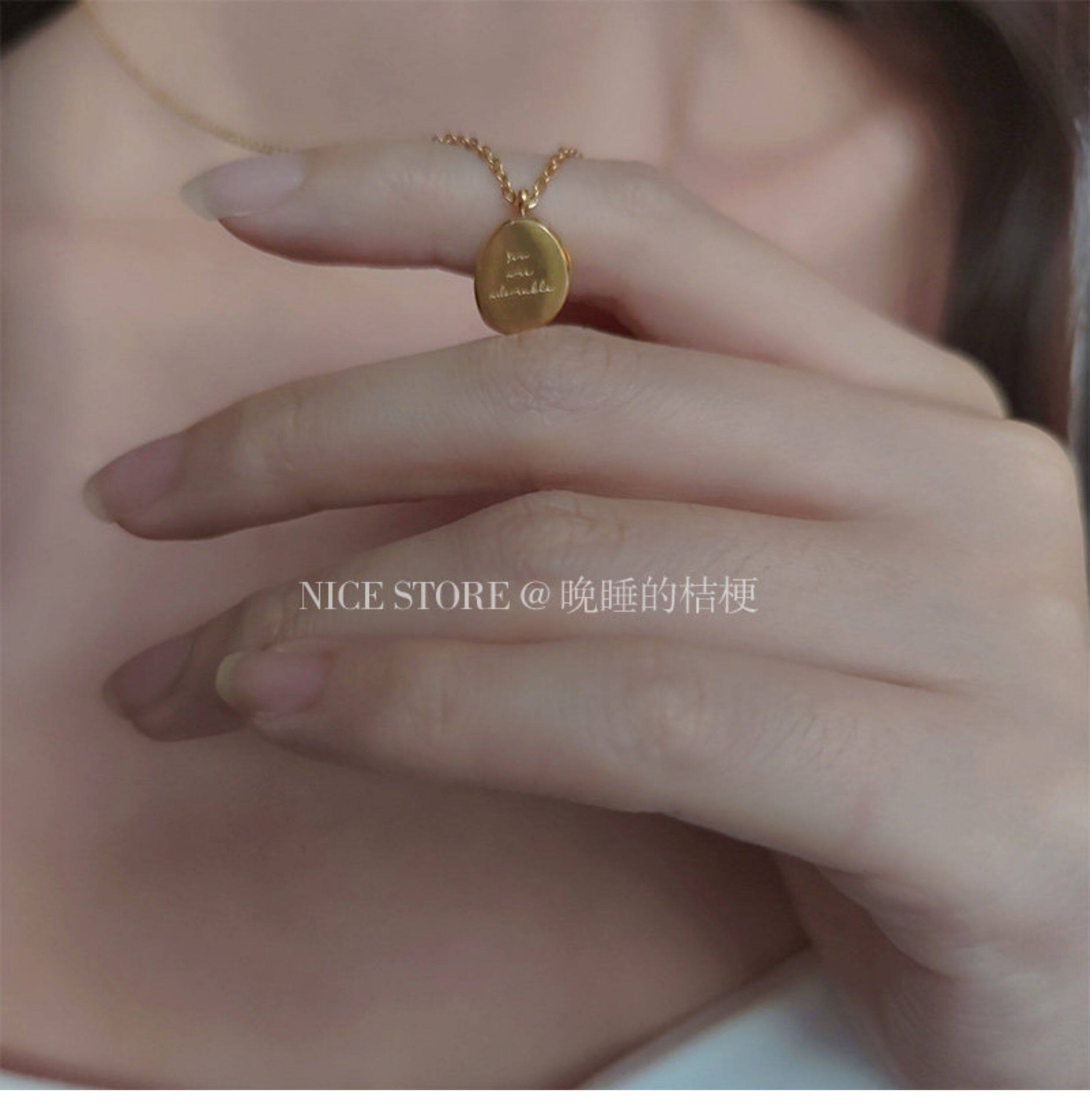 晚睡的桔梗|韓系鈦鋼字母不規則圓牌毛衣鏈簡約氣質吊墜鎖骨項鍊