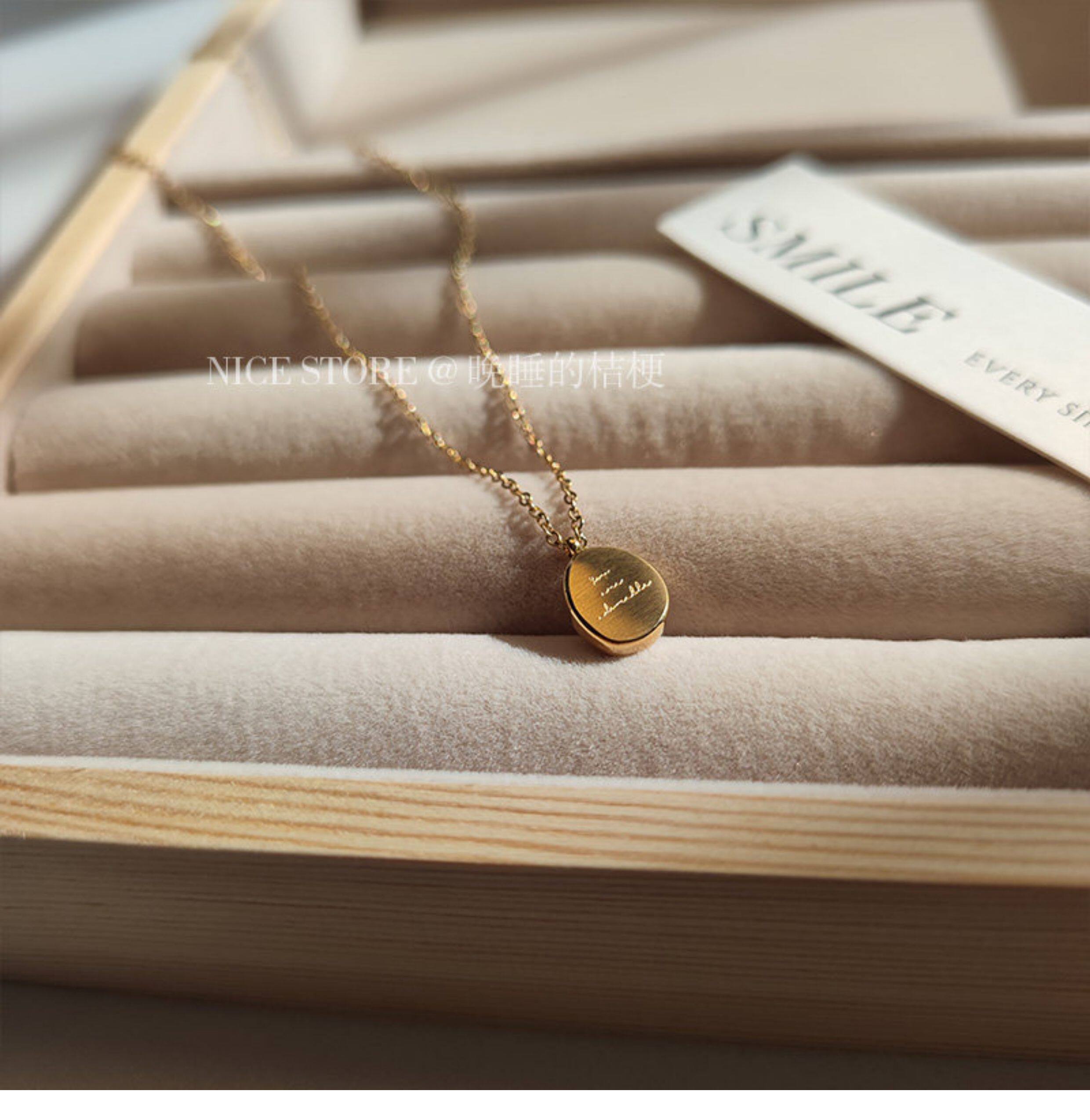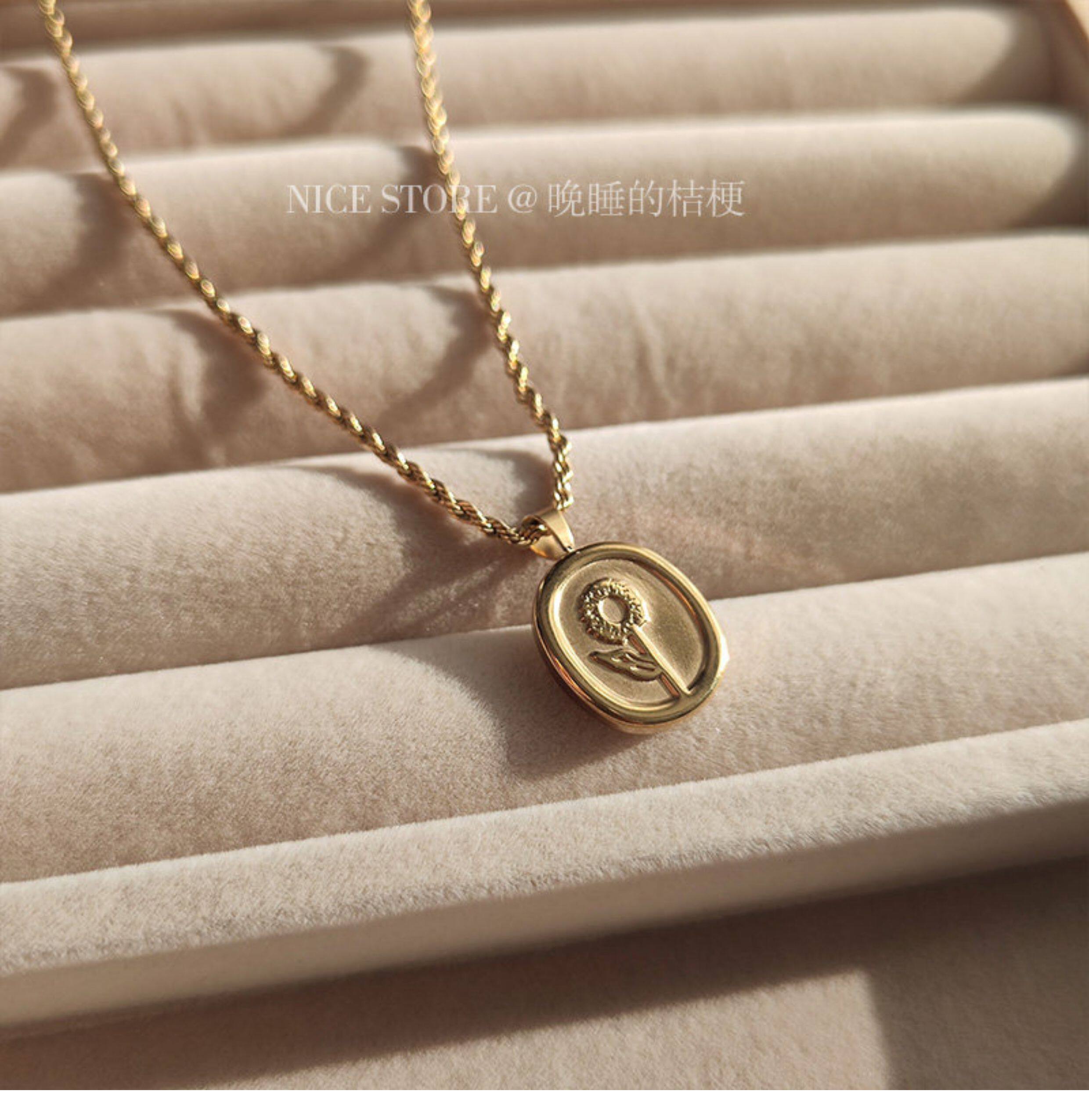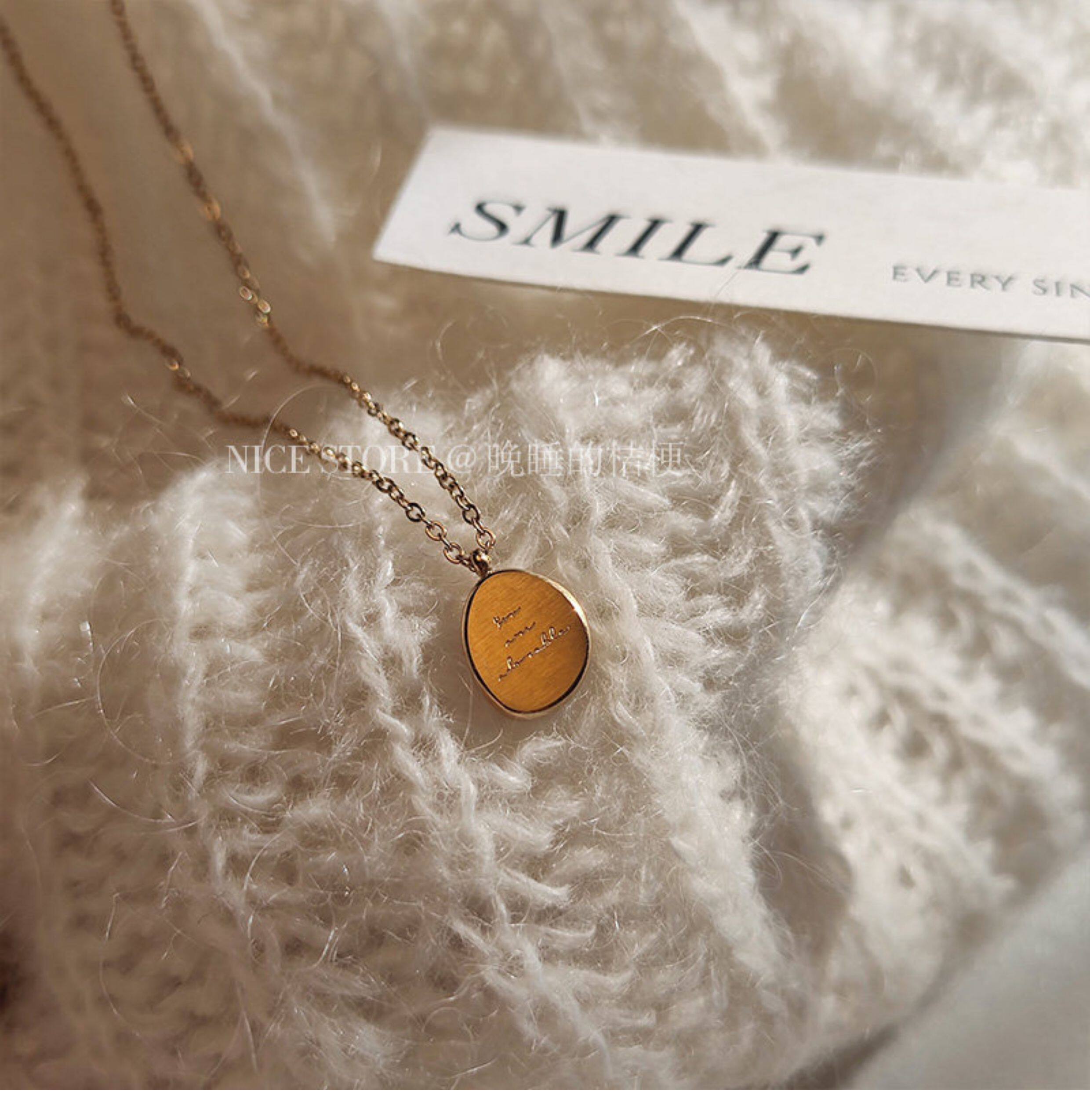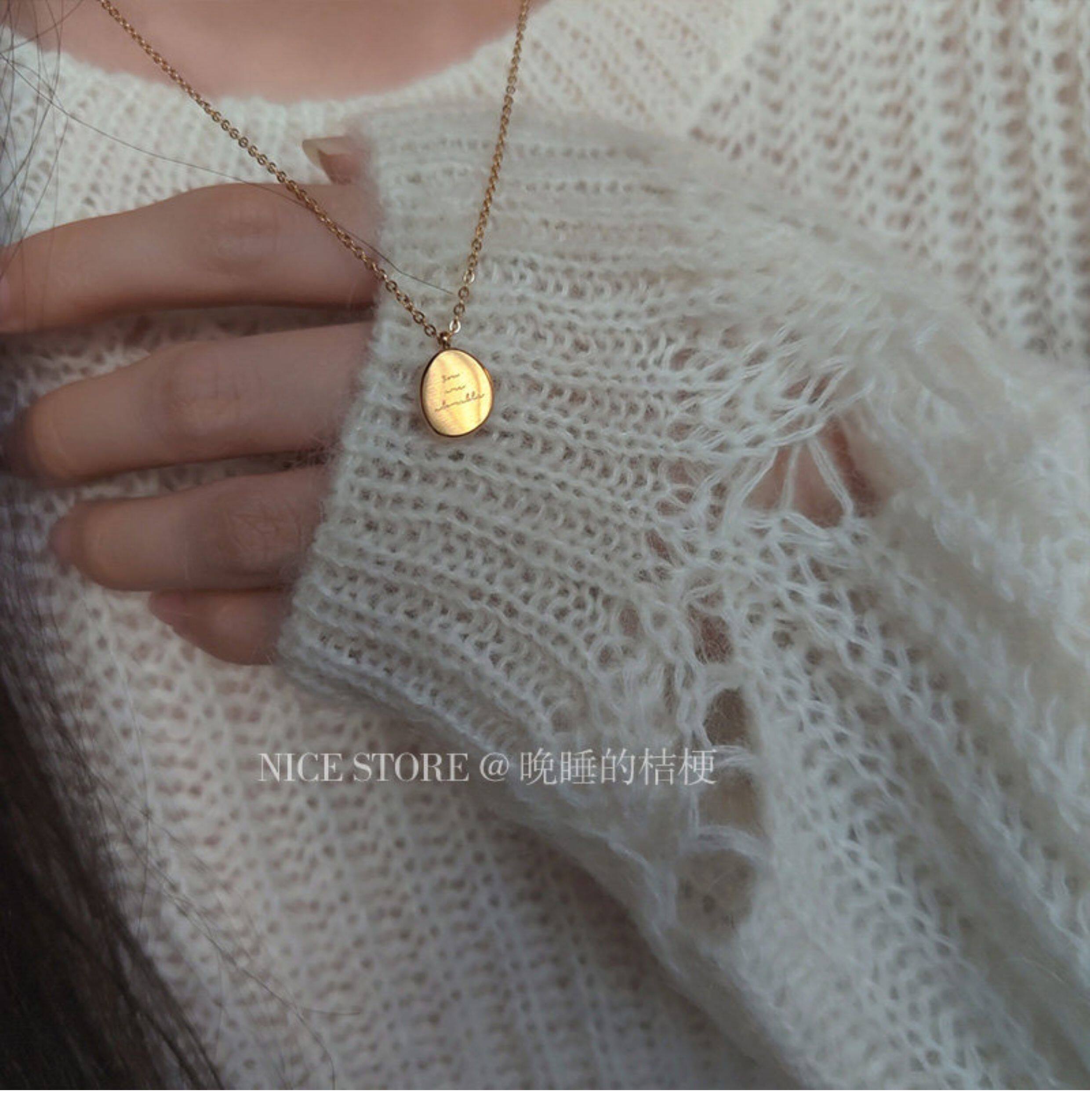 晚睡的桔梗|韓系鈦鋼字母不規則圓牌毛衣鏈簡約氣質吊墜鎖骨項鍊