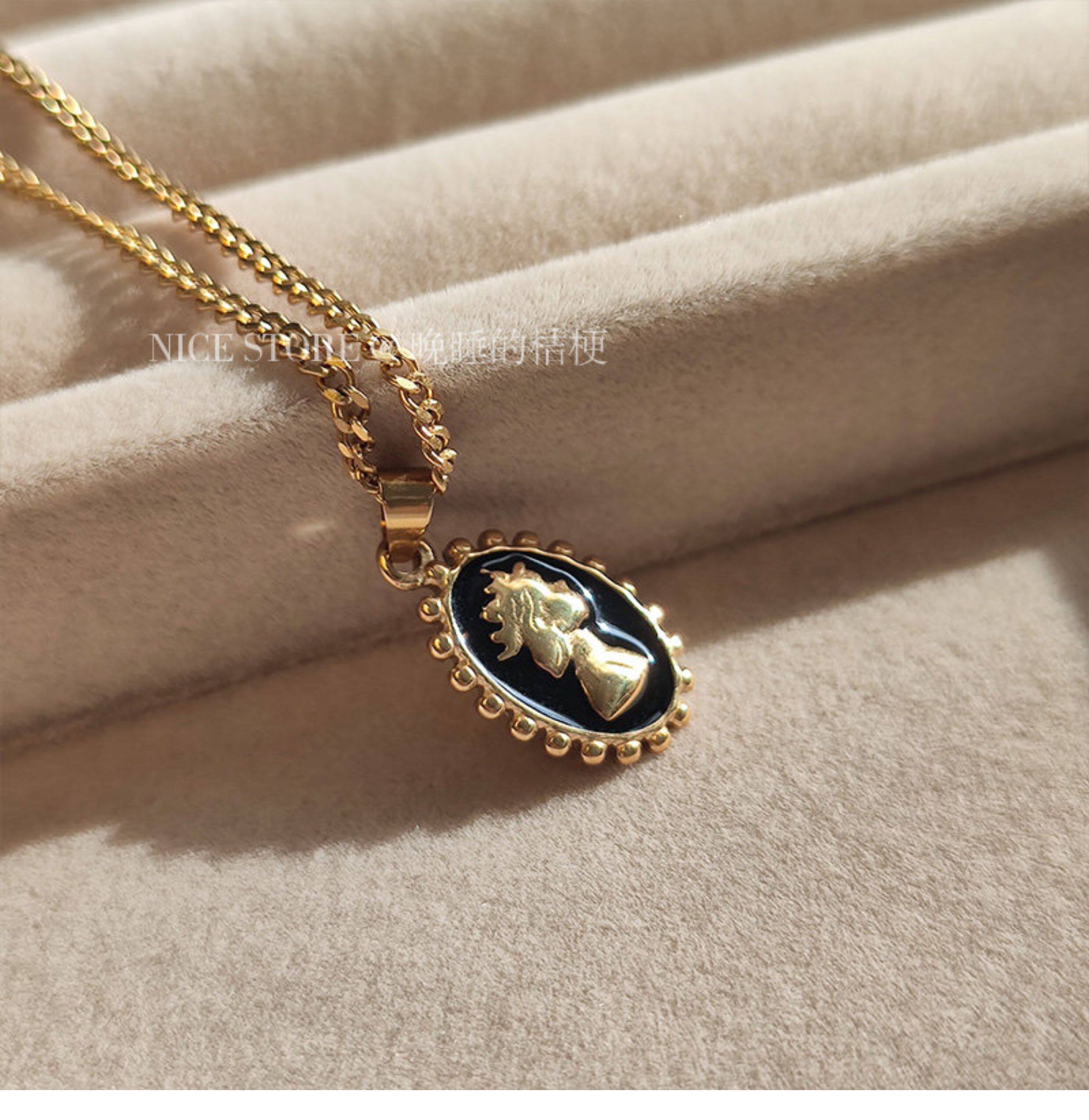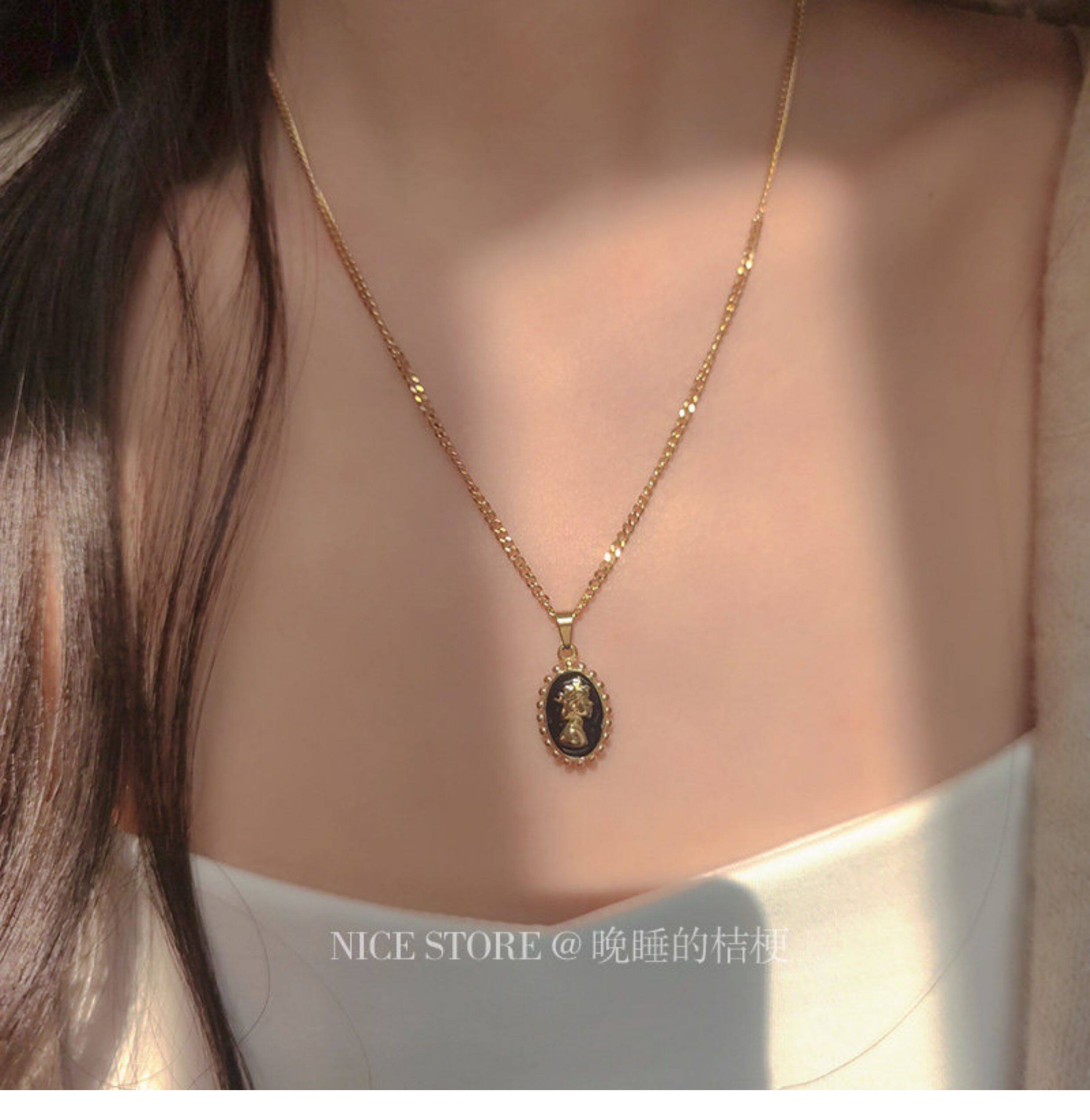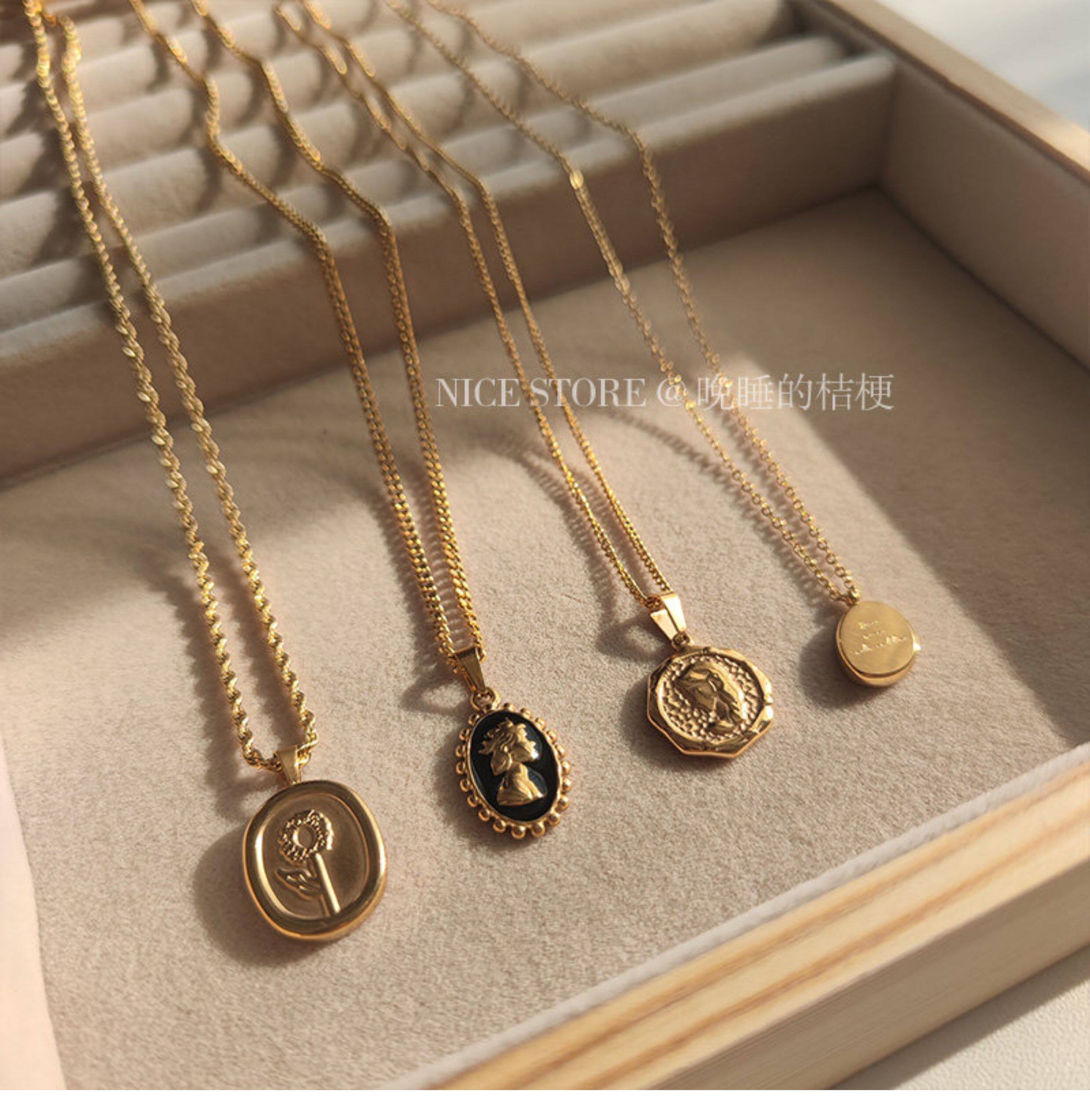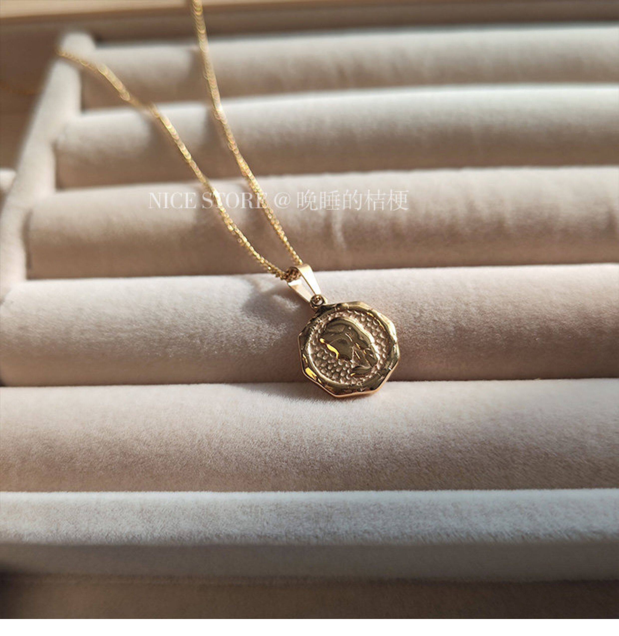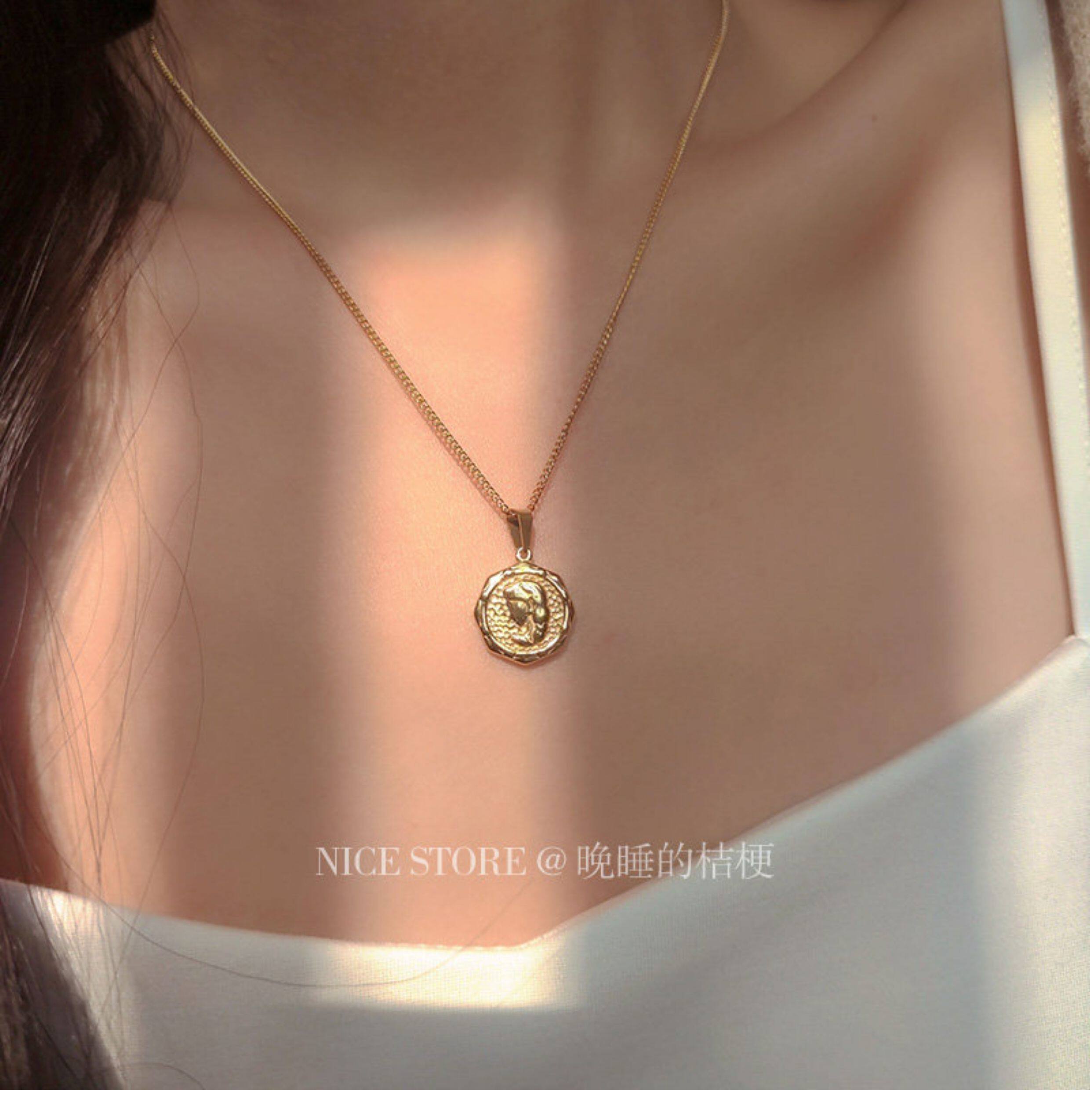 晚睡的桔梗|韓系鈦鋼字母不規則圓牌毛衣鏈簡約氣質吊墜鎖骨項鍊