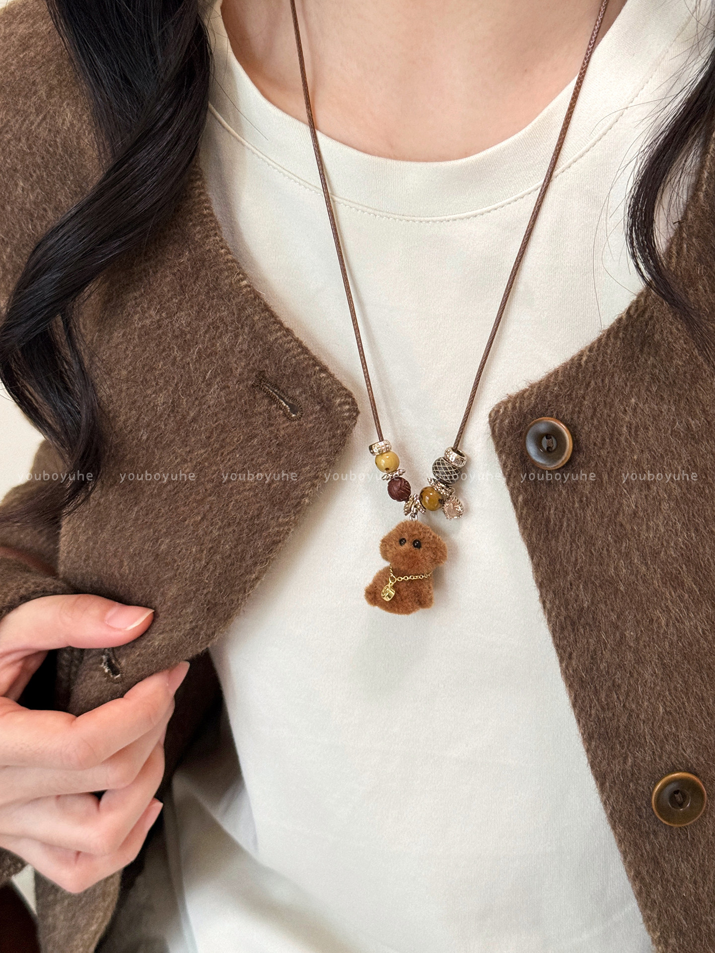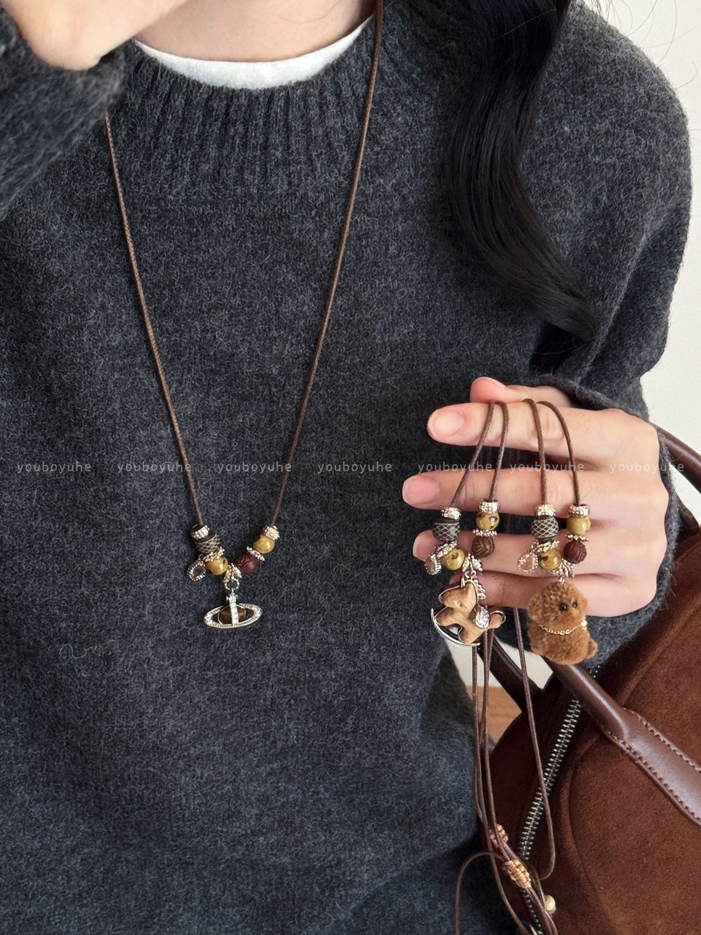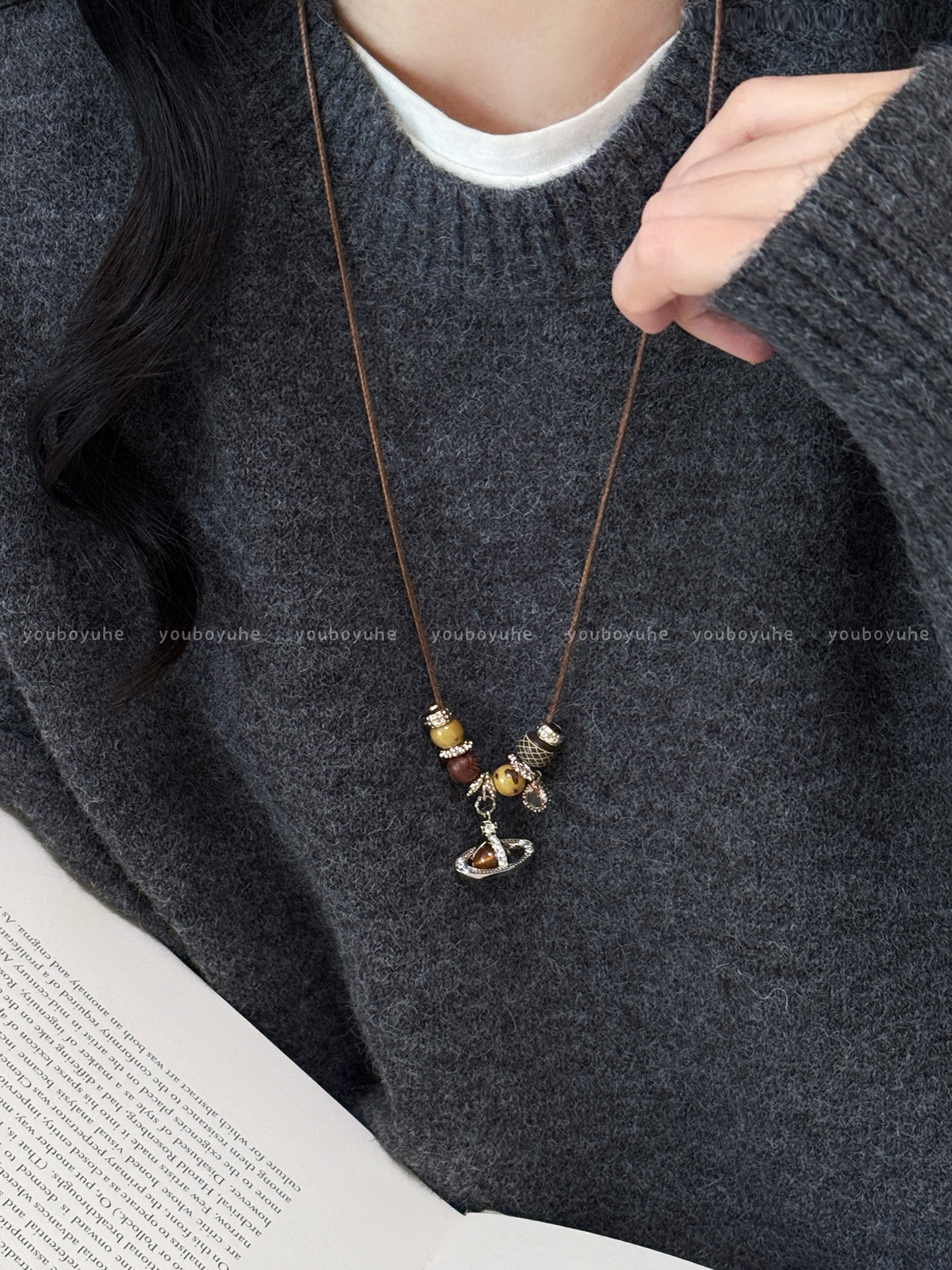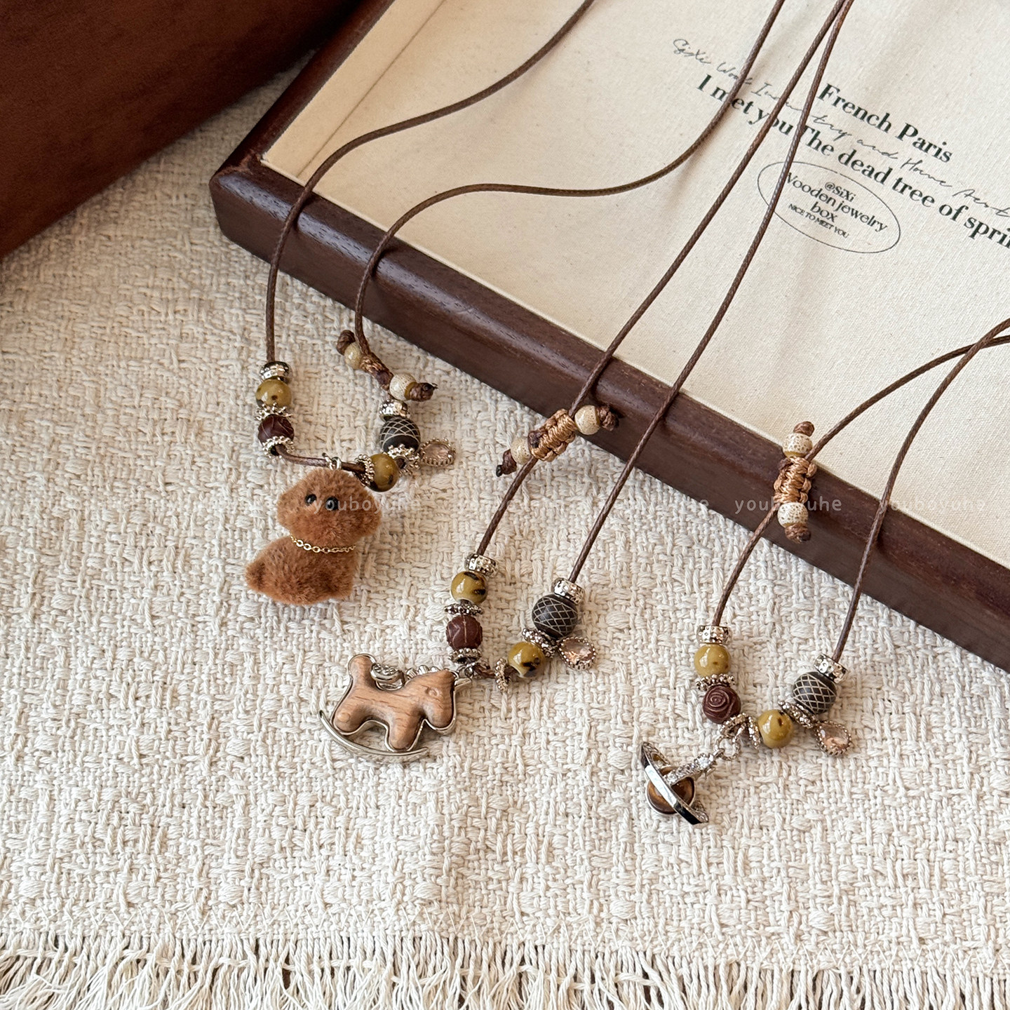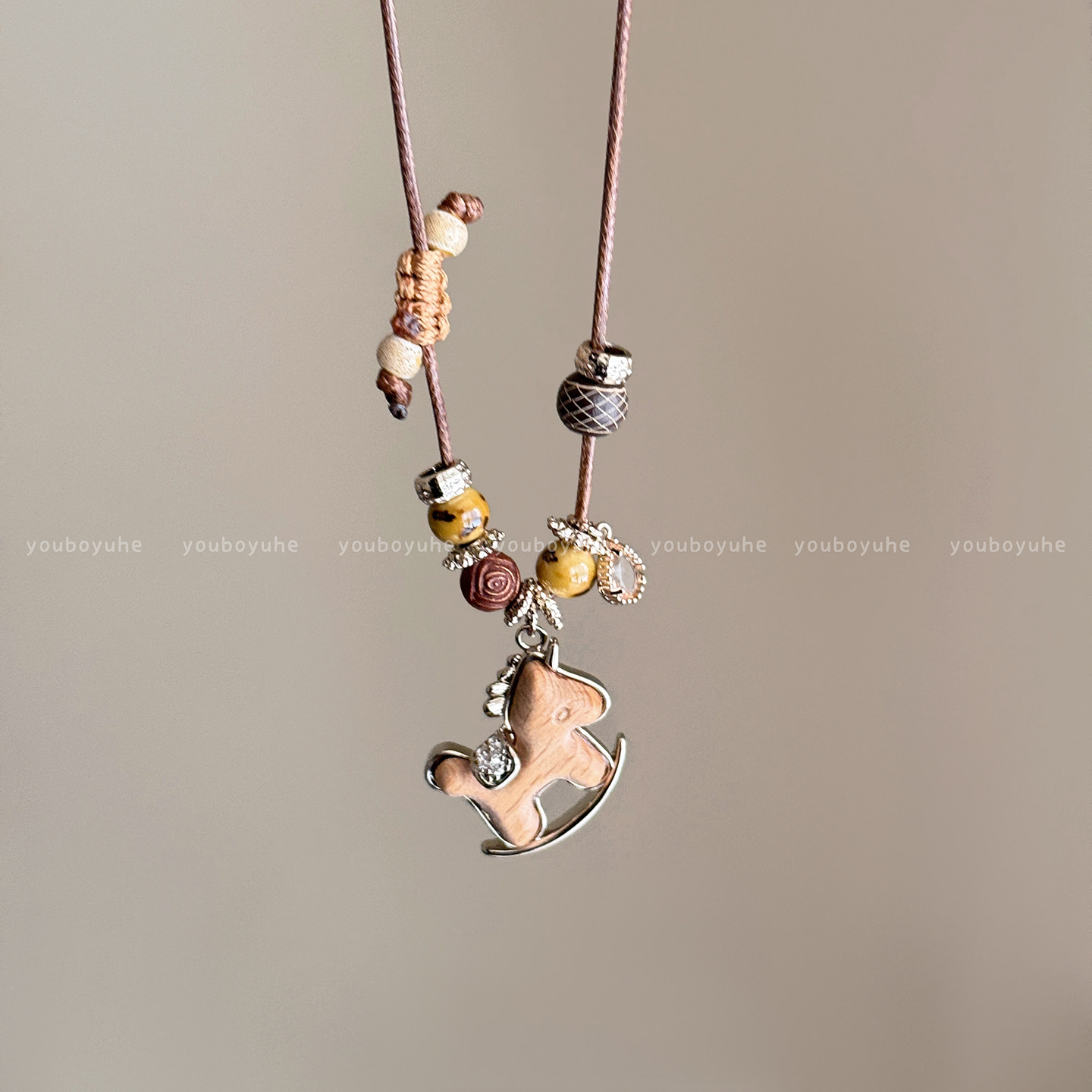 復古木質小馬星球串珠吊墜項鍊女輕奢小衆精緻毛衣鏈冬日氣質配飾