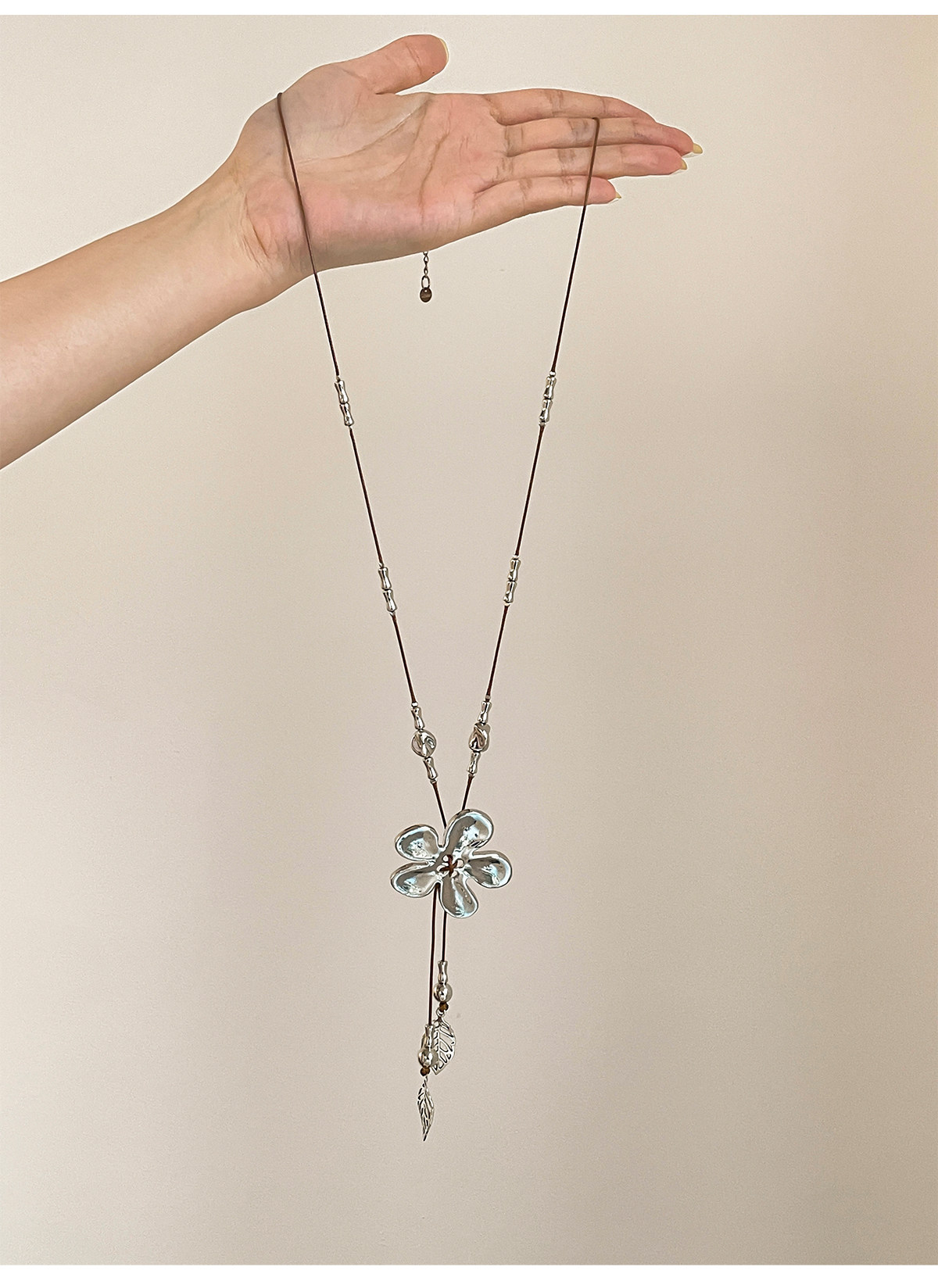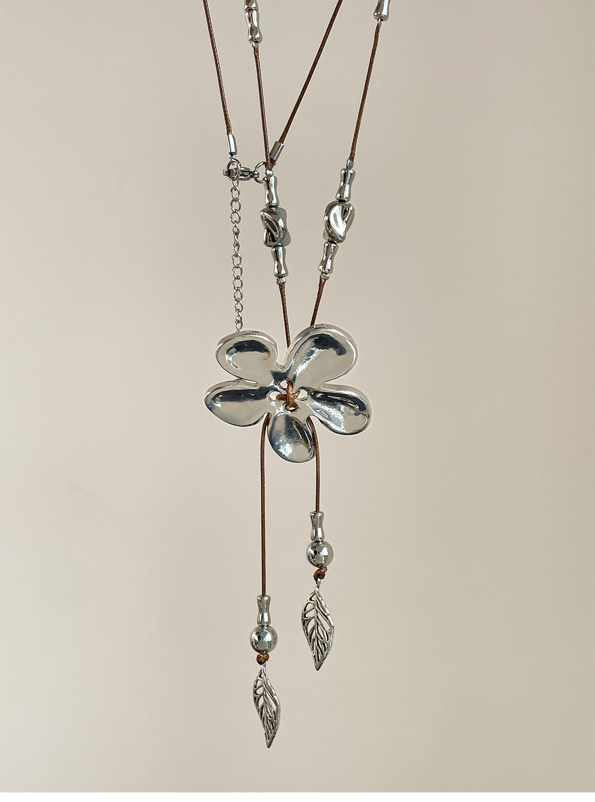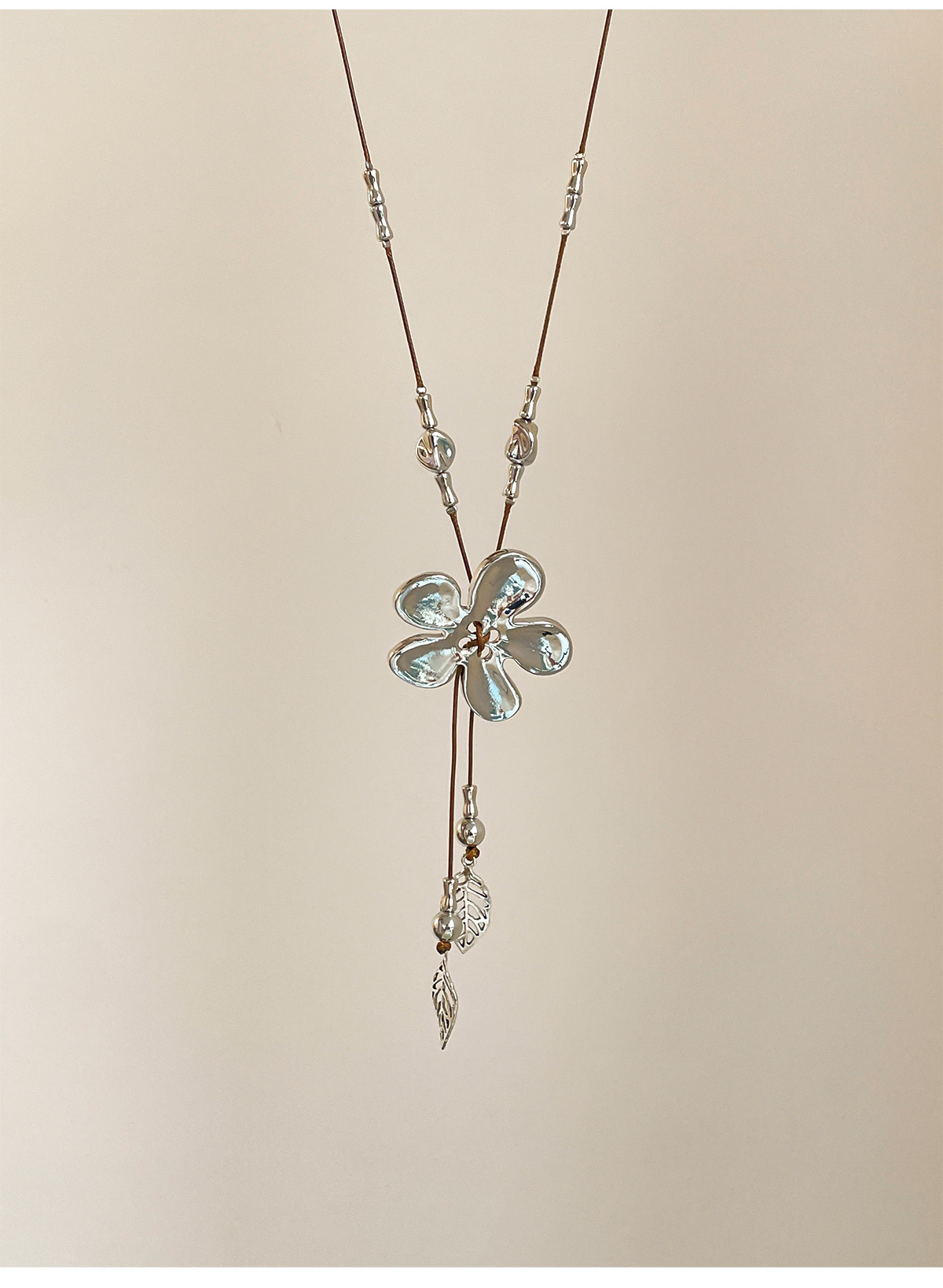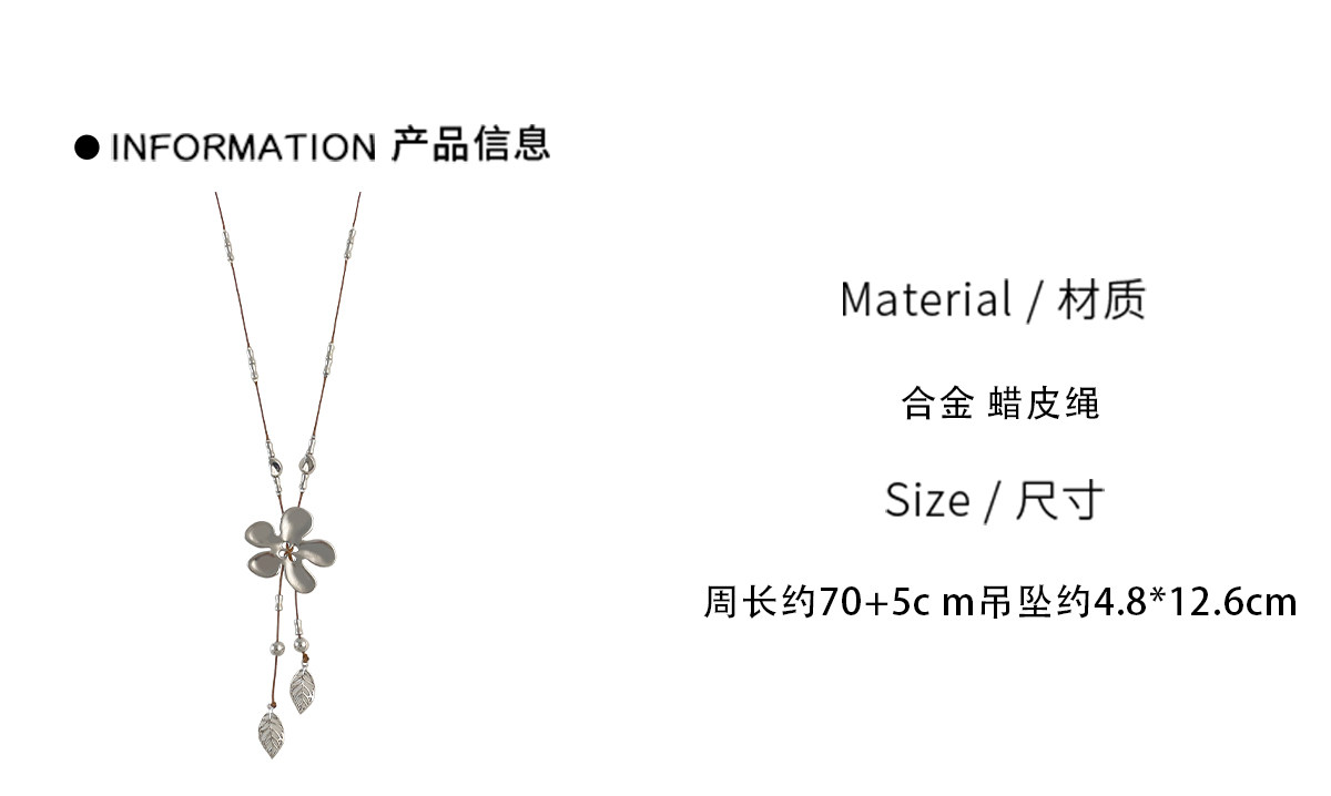 工業風~復古做舊編繩銀色花朵流蘇項鍊小衆設計毛衣鏈甜酷風配飾