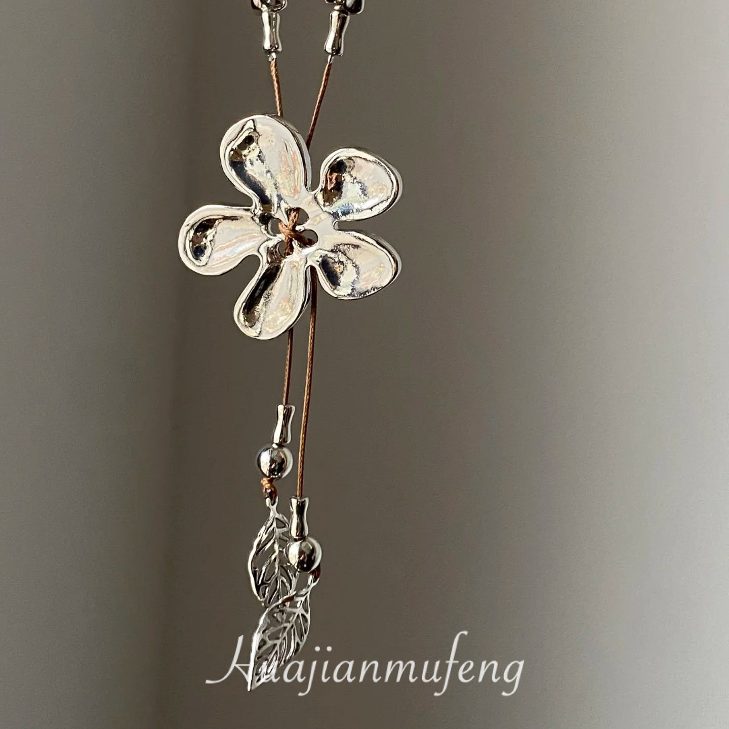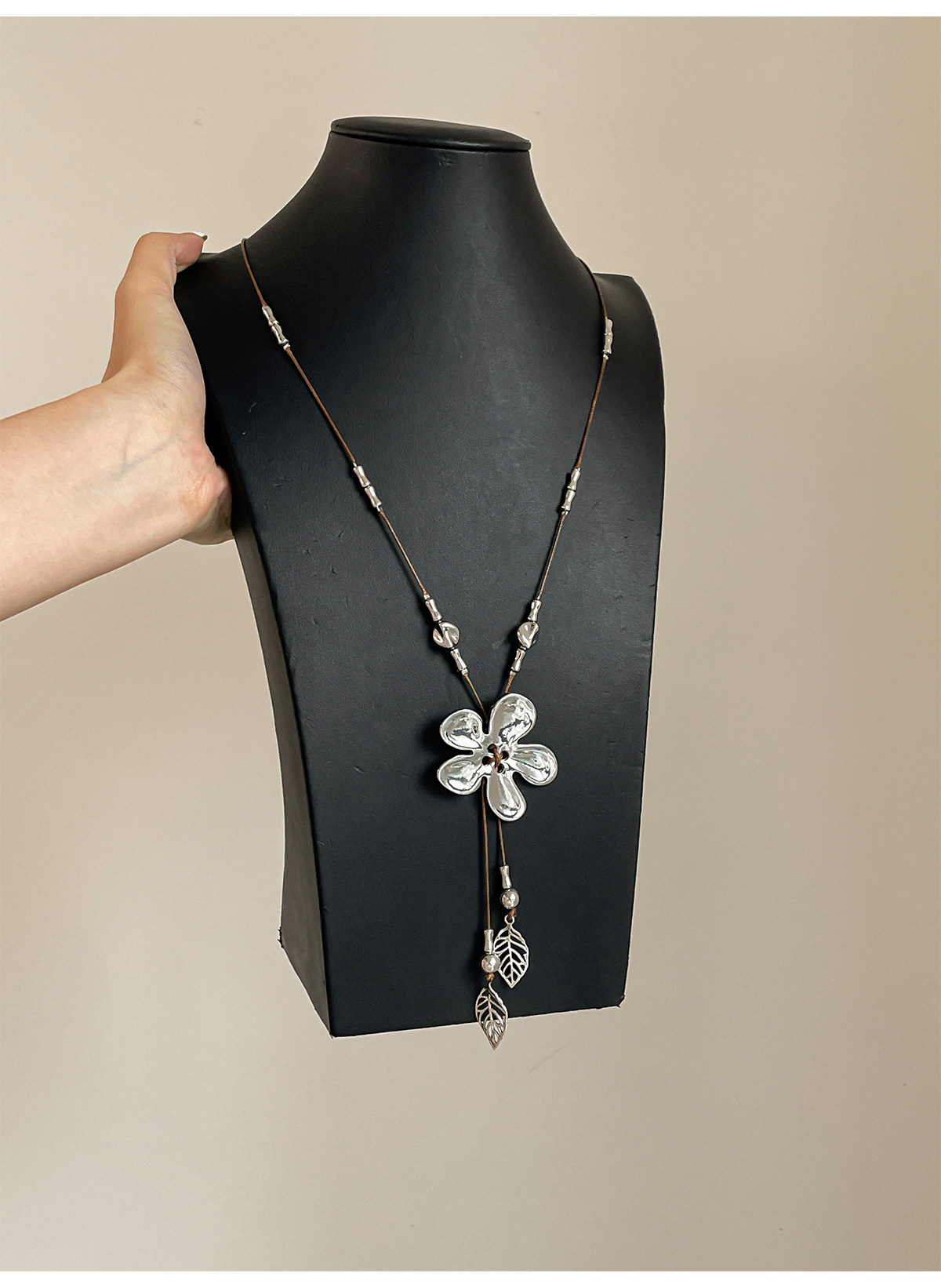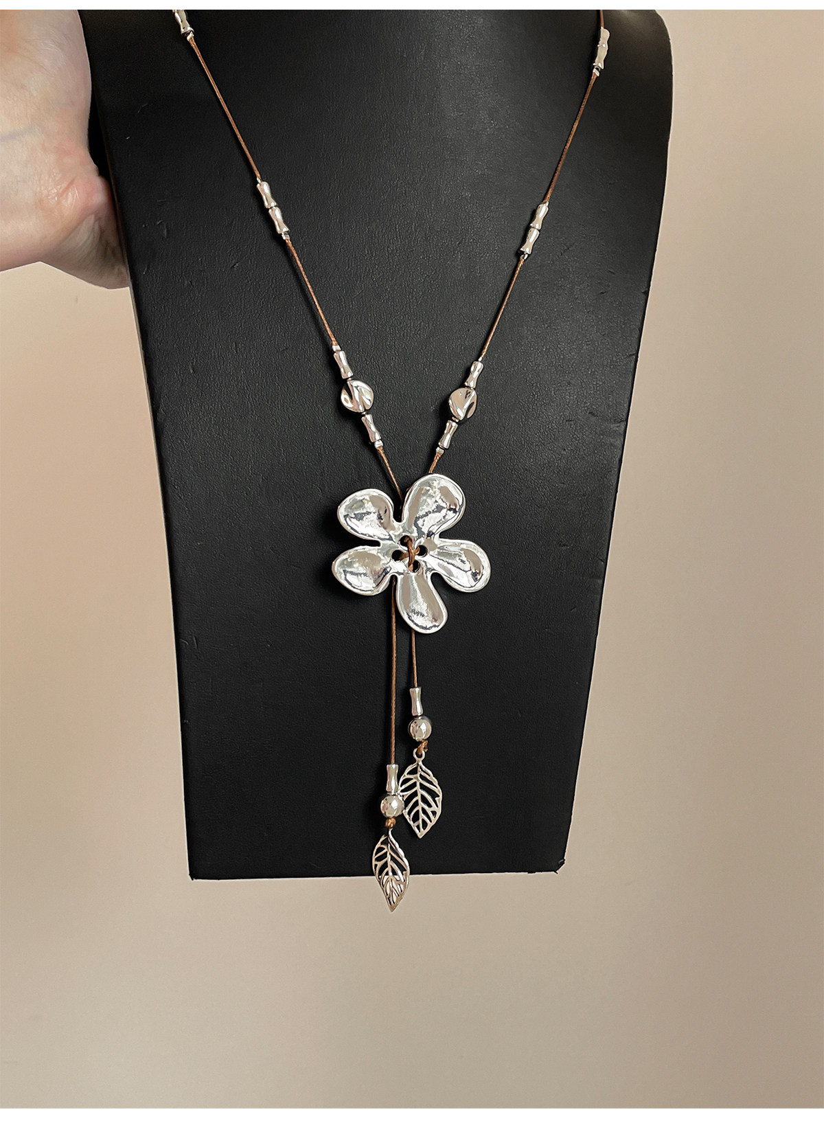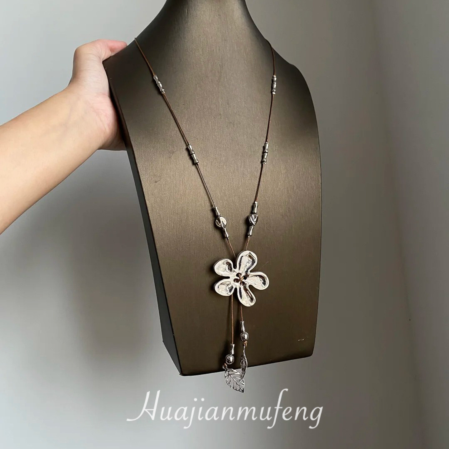 工業風~復古做舊編繩銀色花朵流蘇項鍊小衆設計毛衣鏈甜酷風配飾