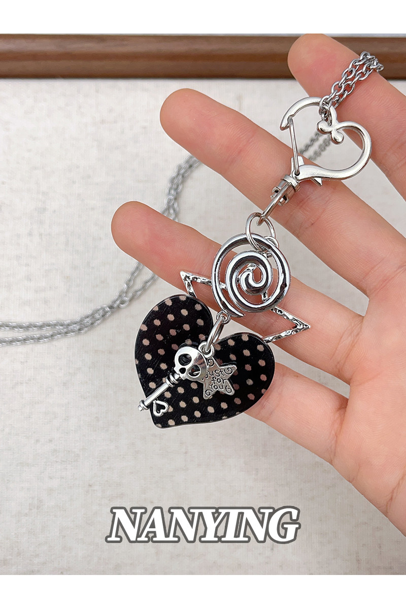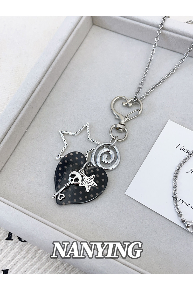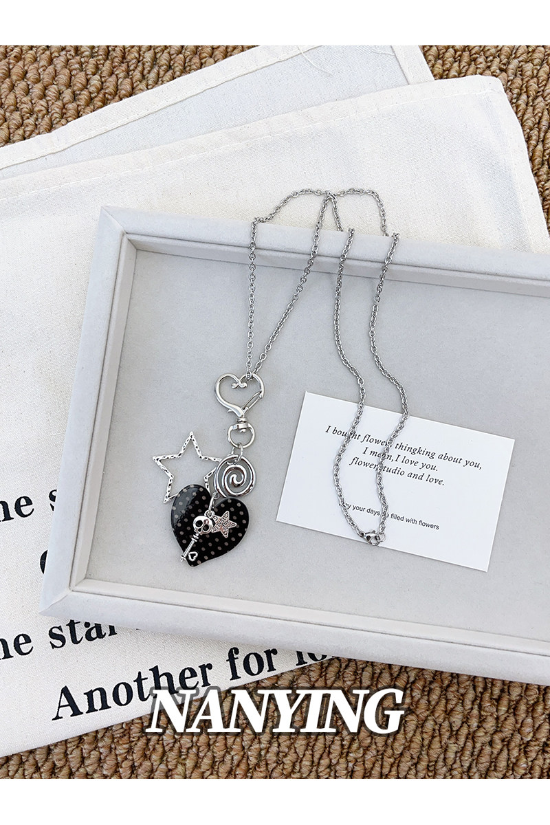 NANYING甜酷風黑色波點愛心音符項鍊甜美Y2k吊墜辣妹亞文化衛衣鏈