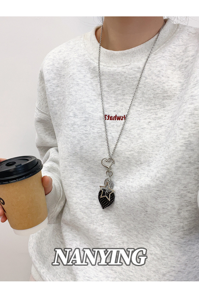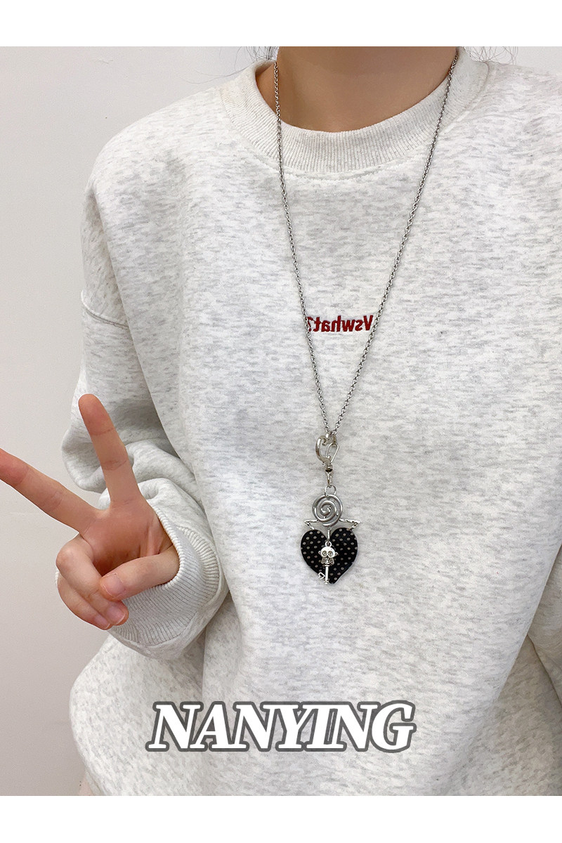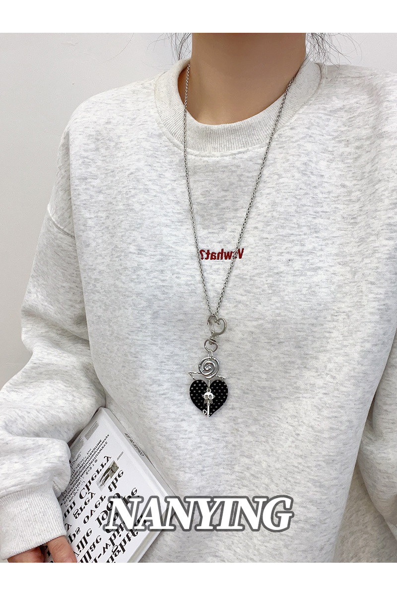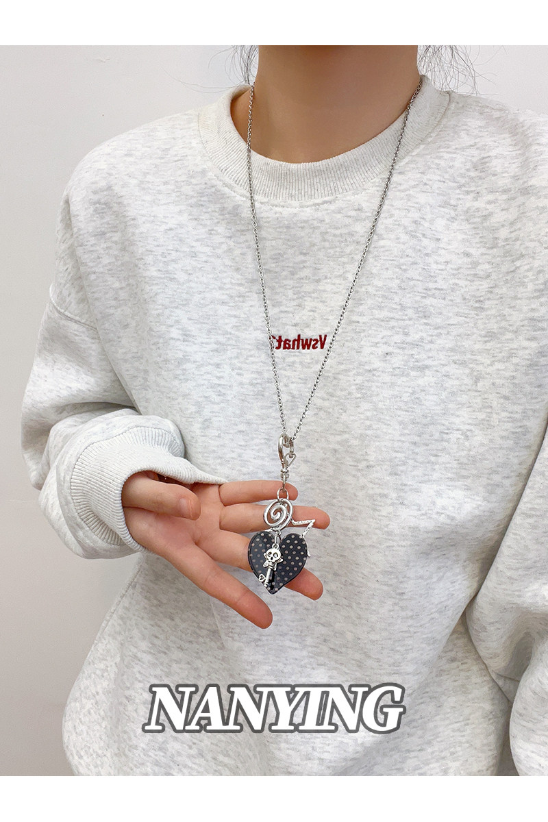 NANYING甜酷風黑色波點愛心音符項鍊甜美Y2k吊墜辣妹亞文化衛衣鏈