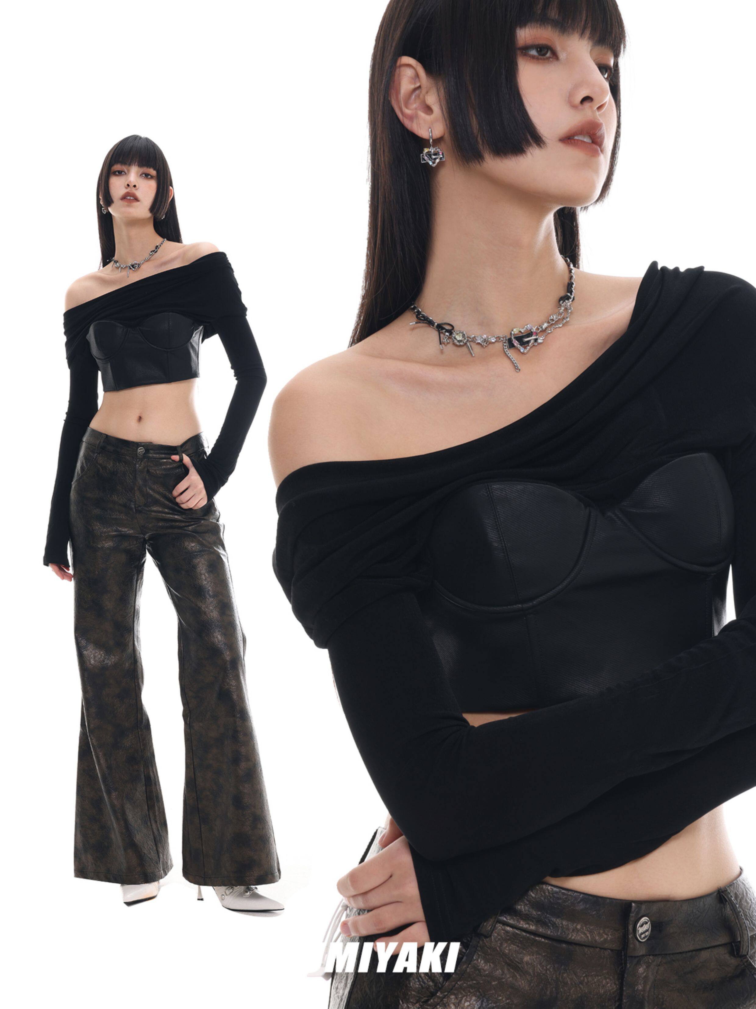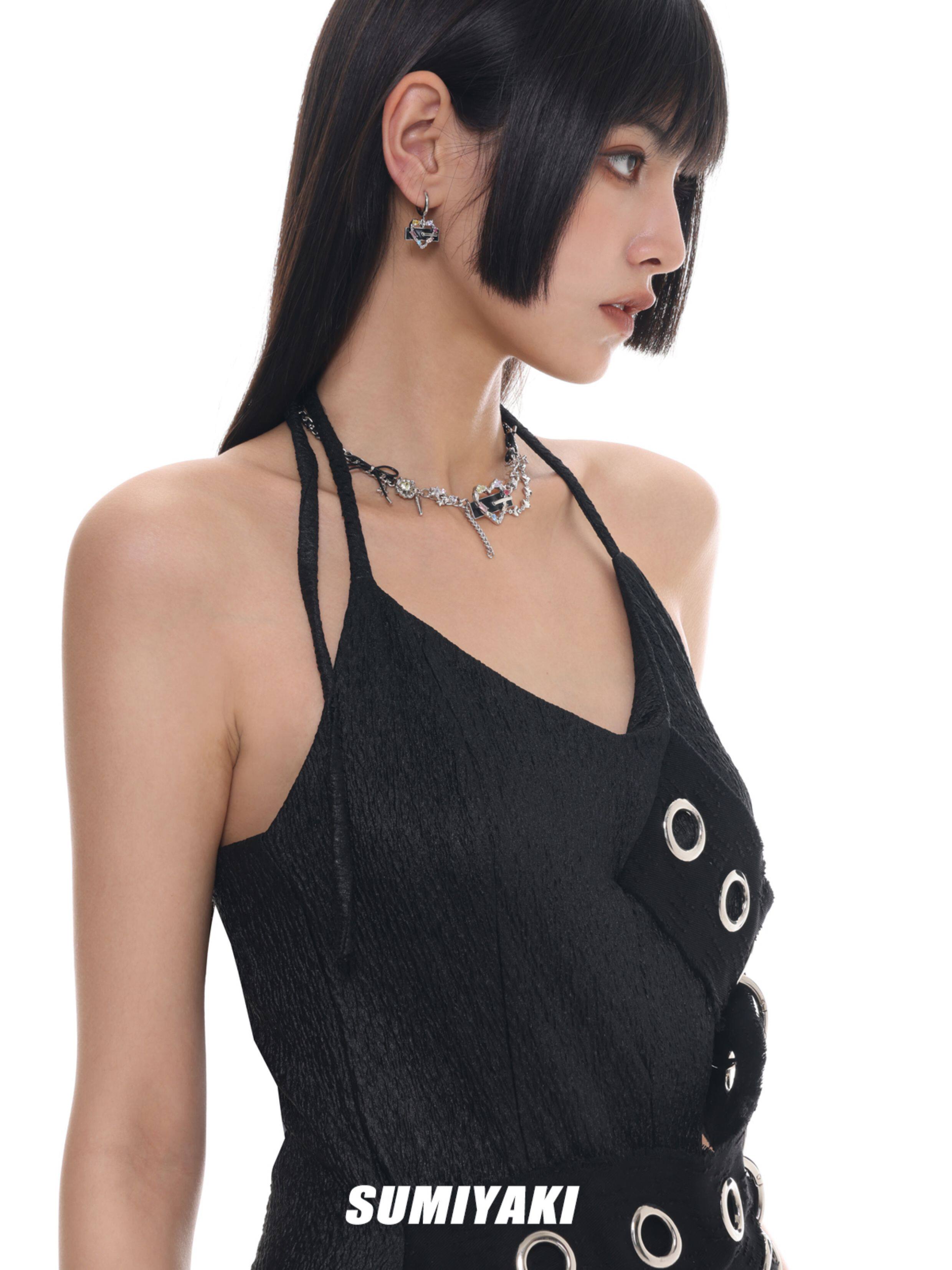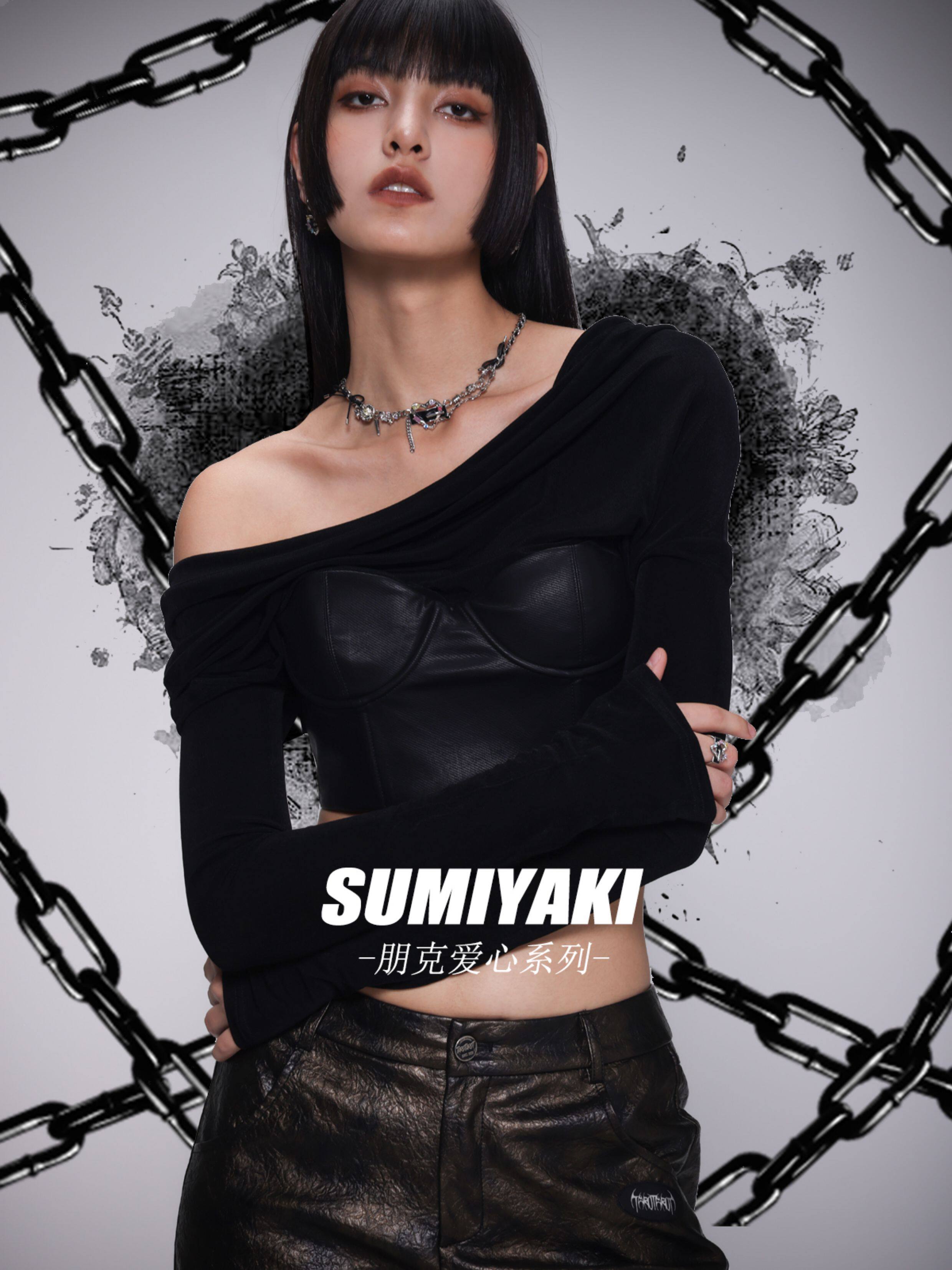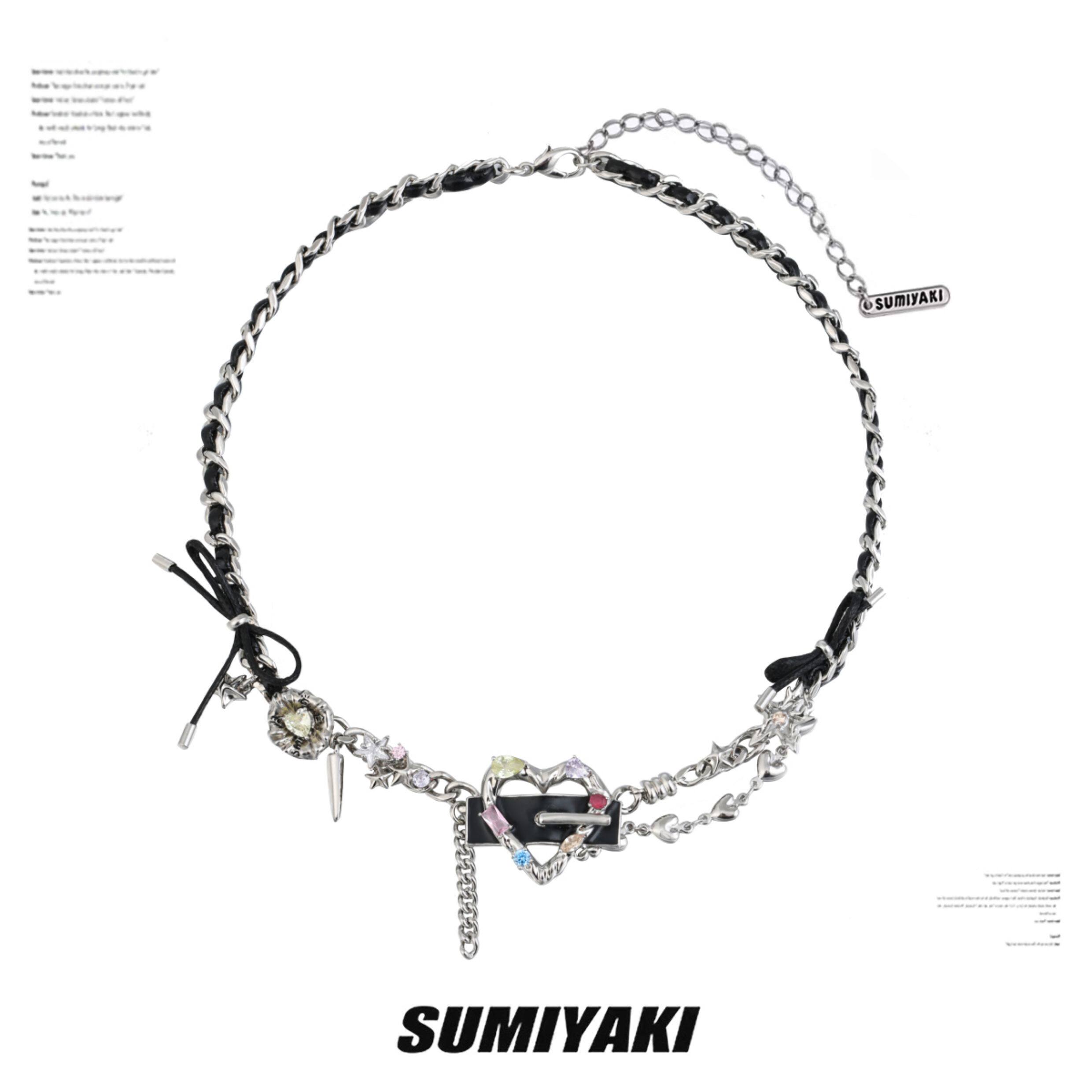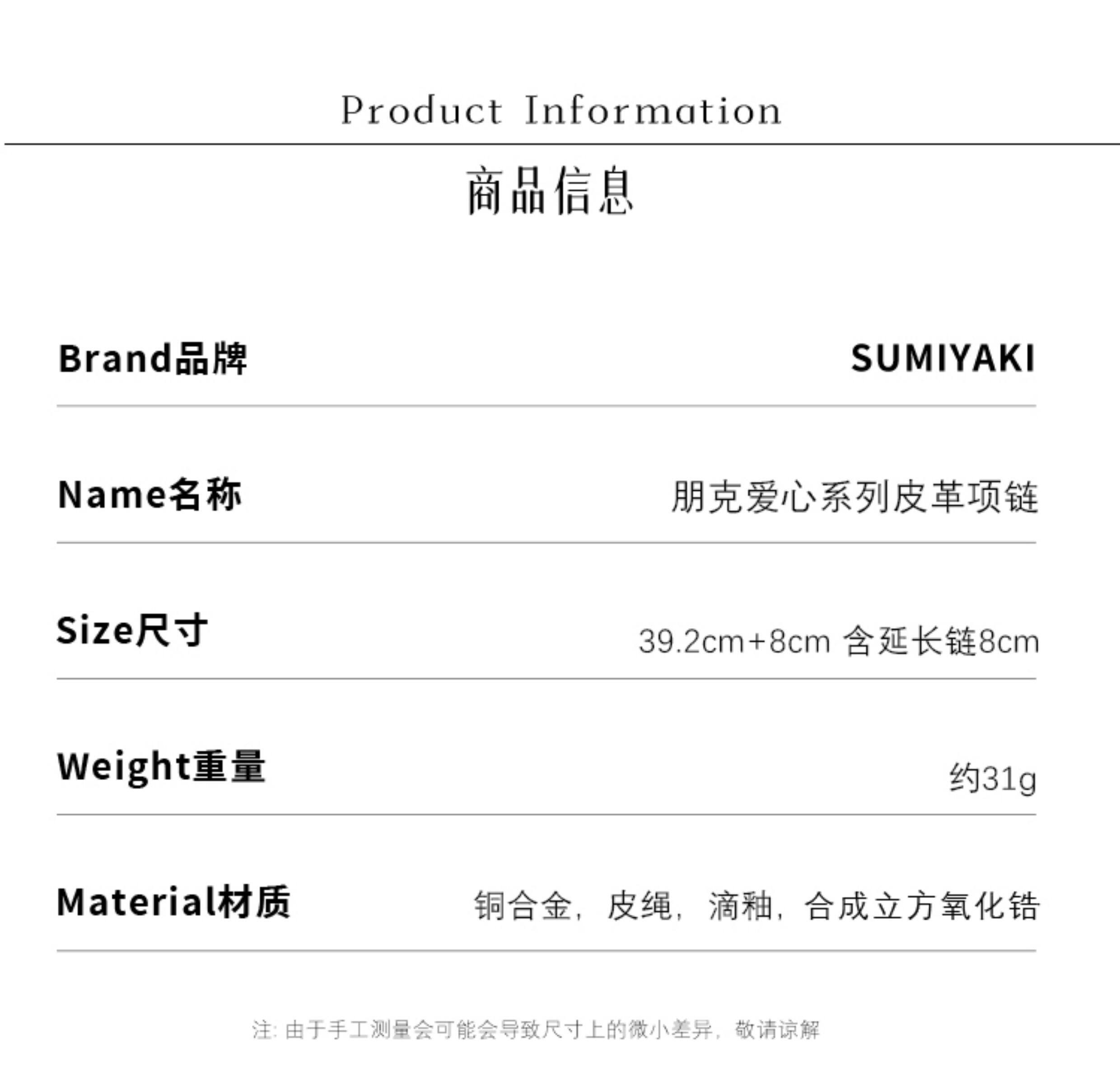 SUMIYAKI 龐克愛心繫列皮革項鍊 甜酷辣妹鎖骨鍊暗黑龐克小衆頸鏈
