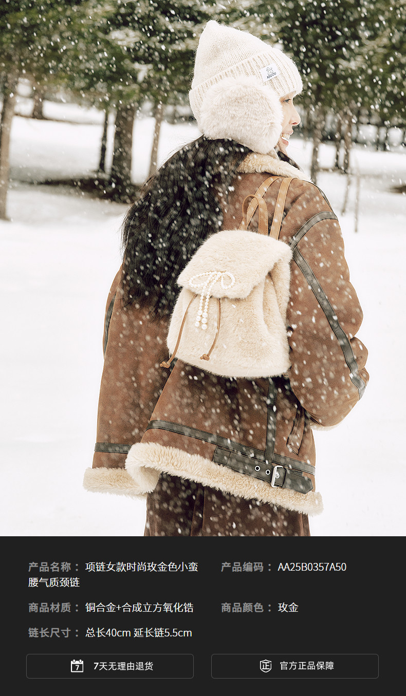 AJIDOU阿吉豆項鍊女款玫金色小蠻腰百搭通勤簡約氣質短頸鏈鎖骨鍊