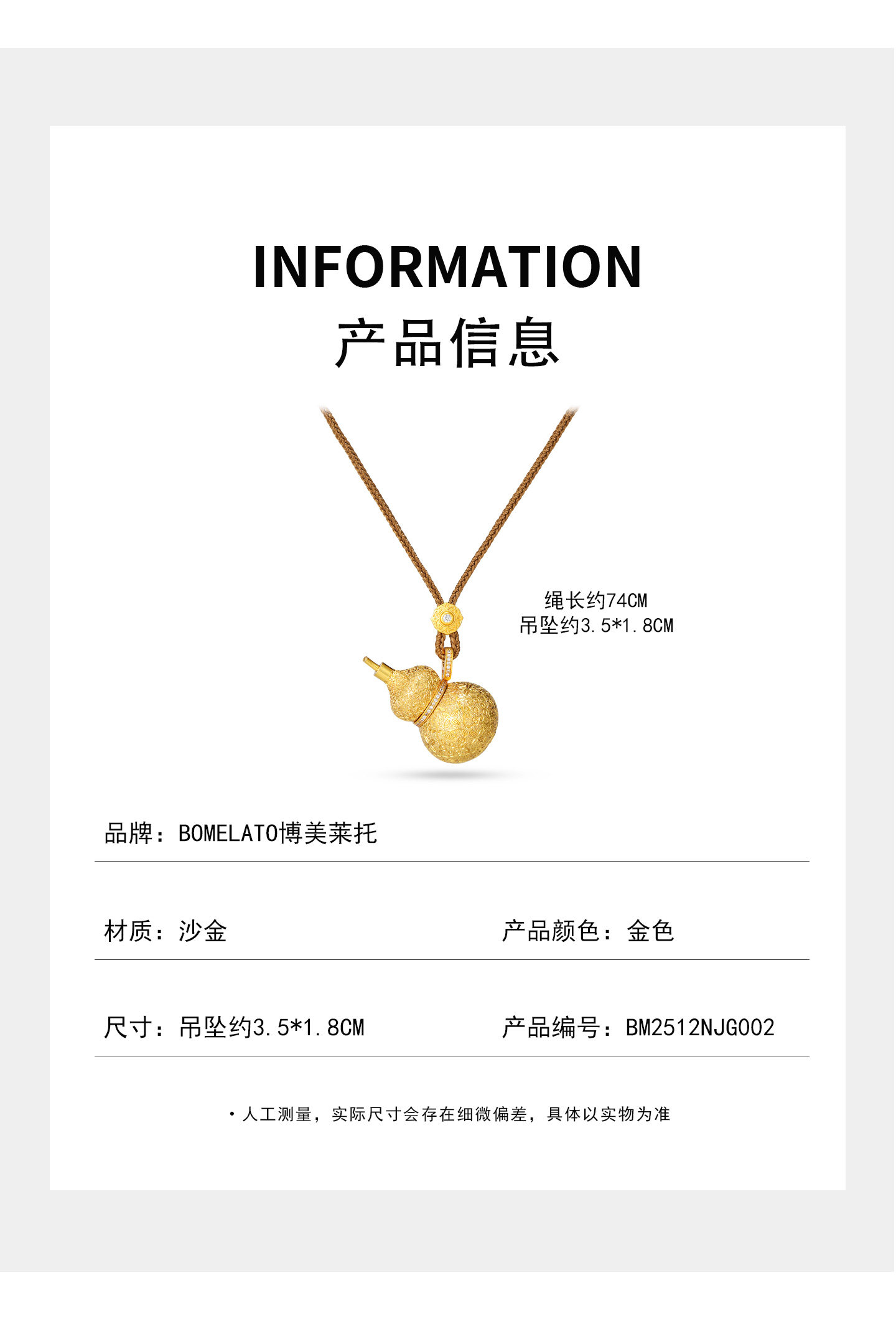 招財納福葫蘆吊墜新中式國潮項鍊女沙金輕奢福祿雙全毛衣掛鏈配飾