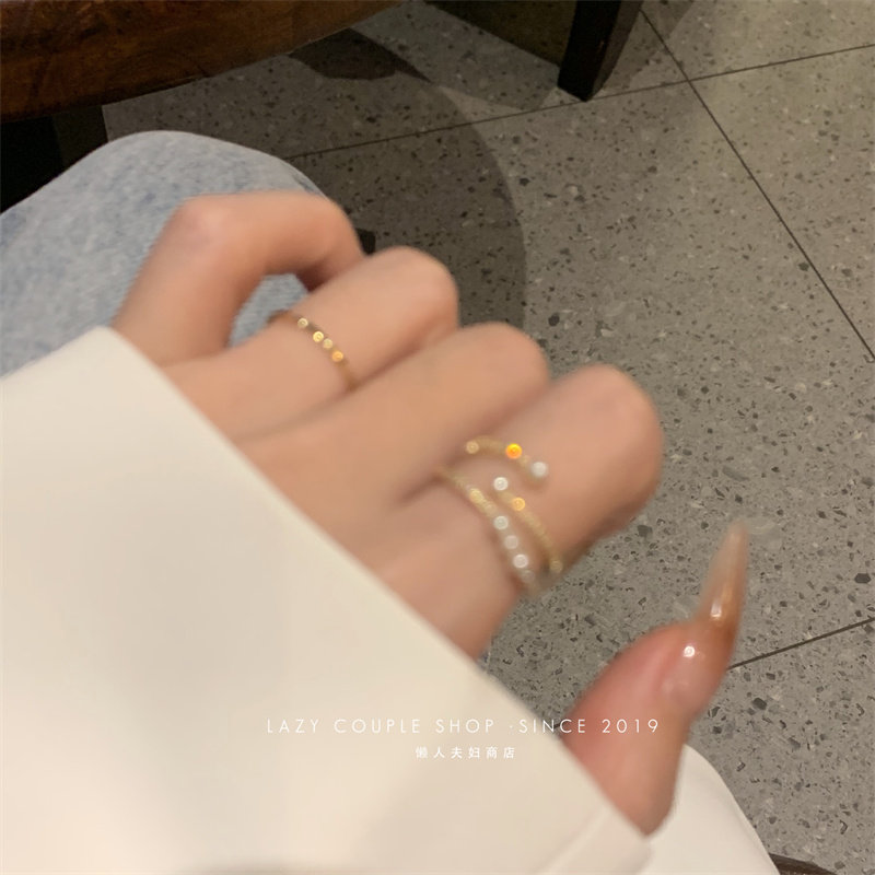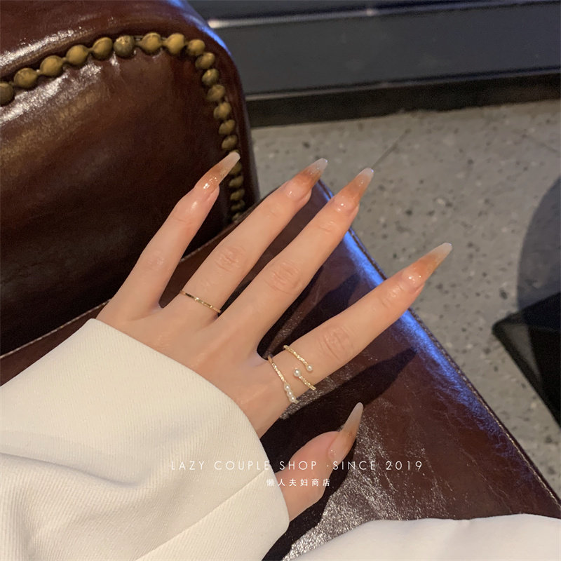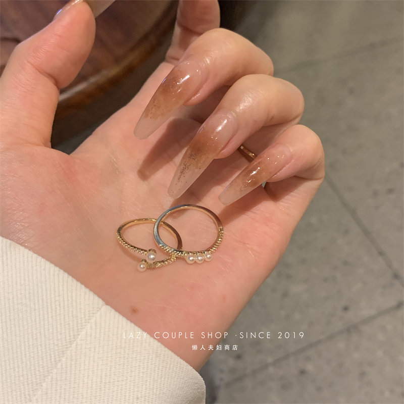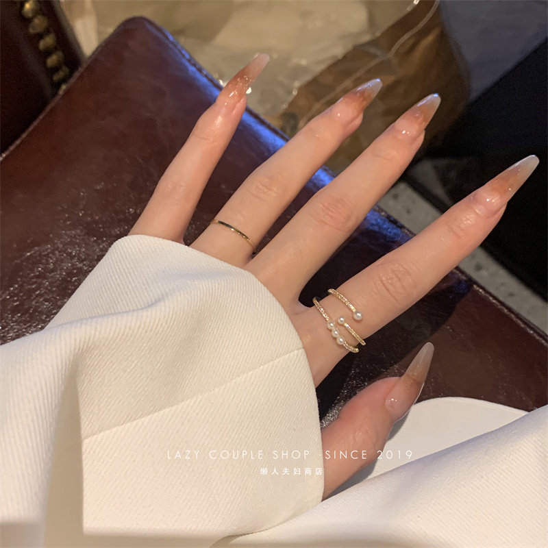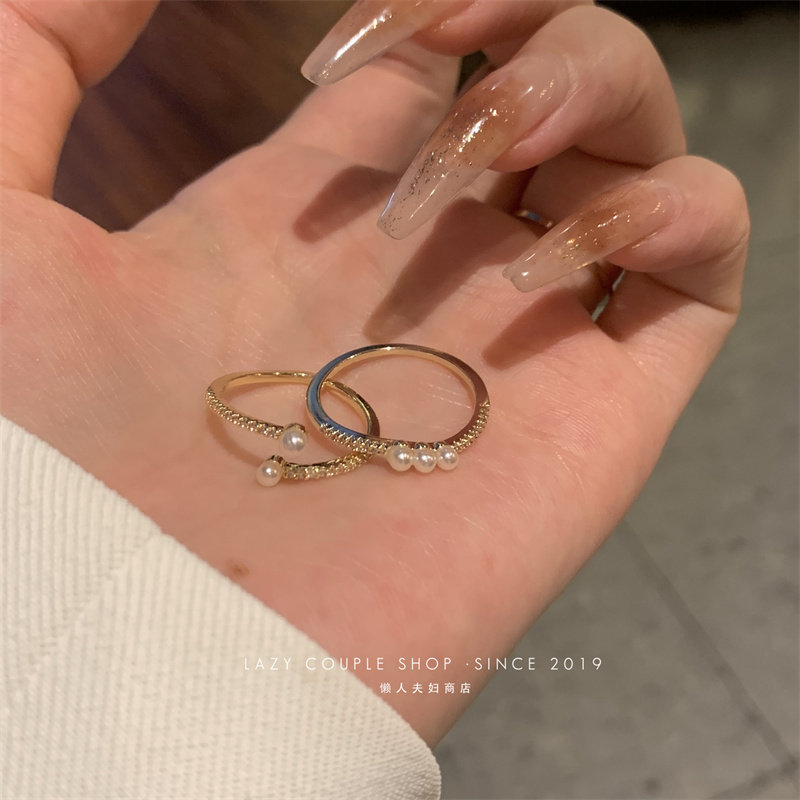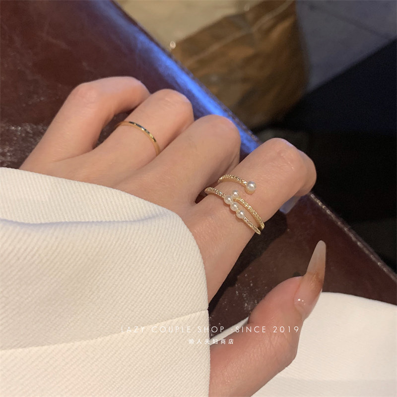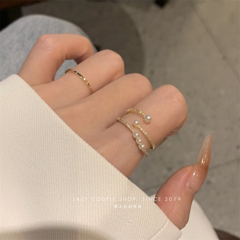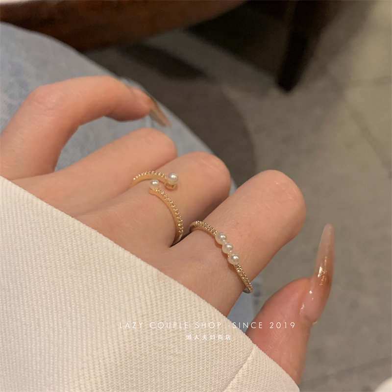 珍珠戒指女時尚個性ins小衆設計輕奢簡約精緻兩件套指環開口氣質