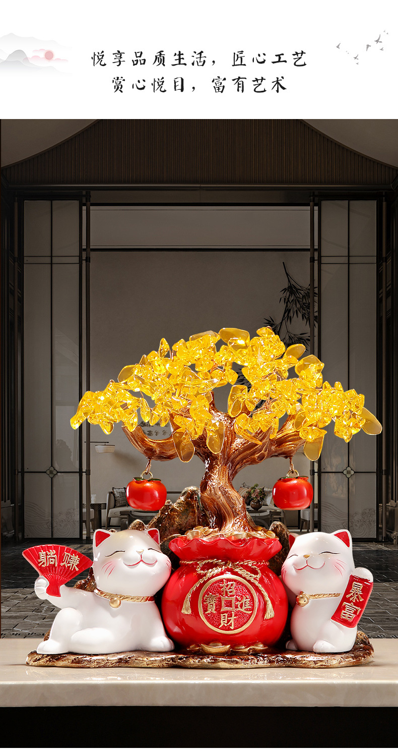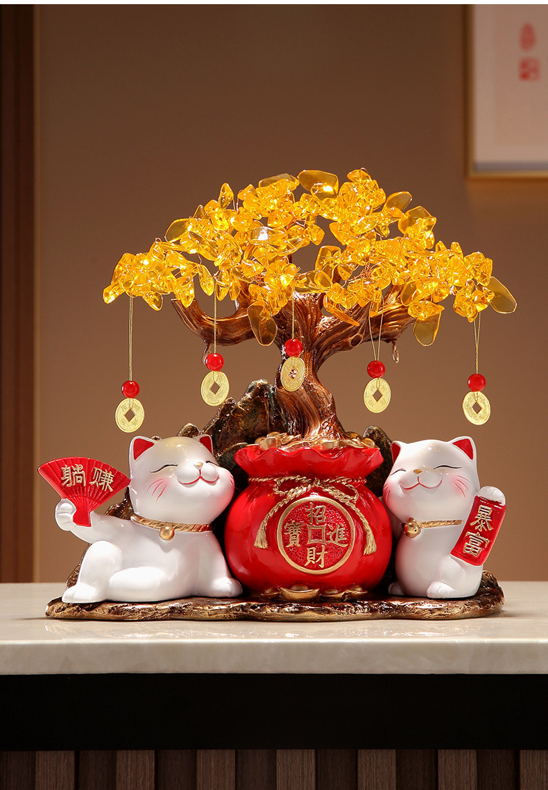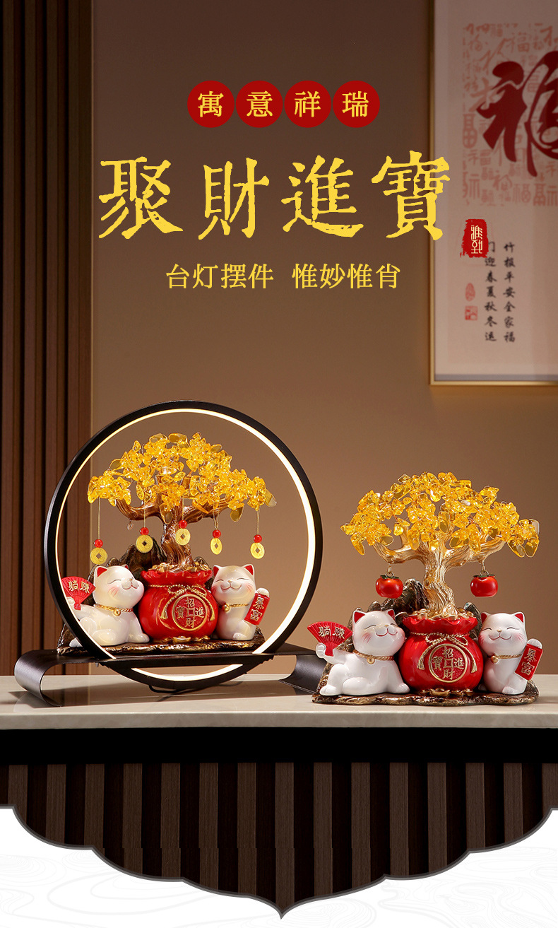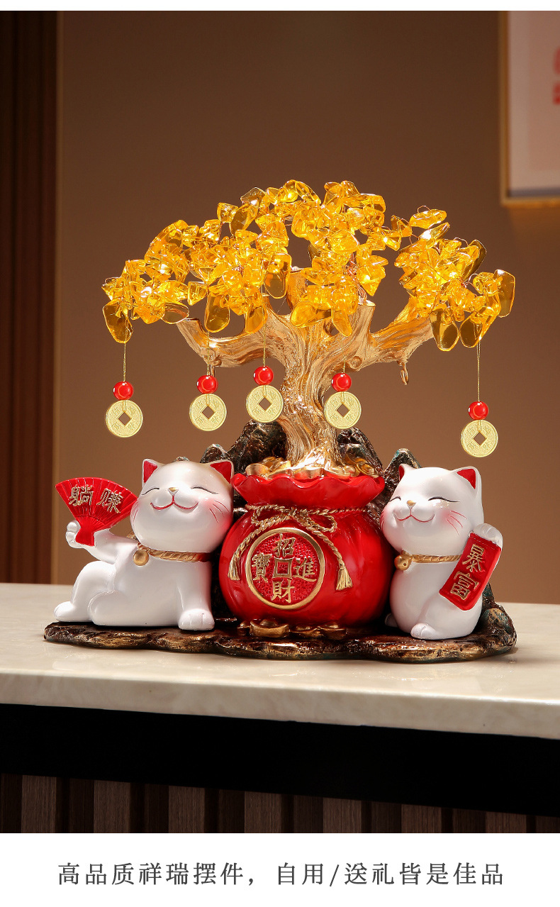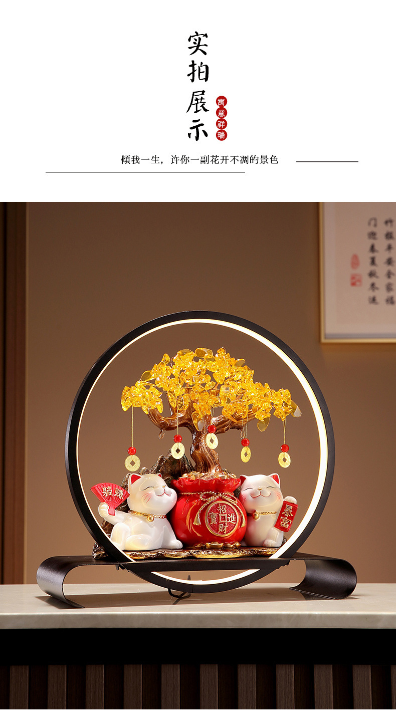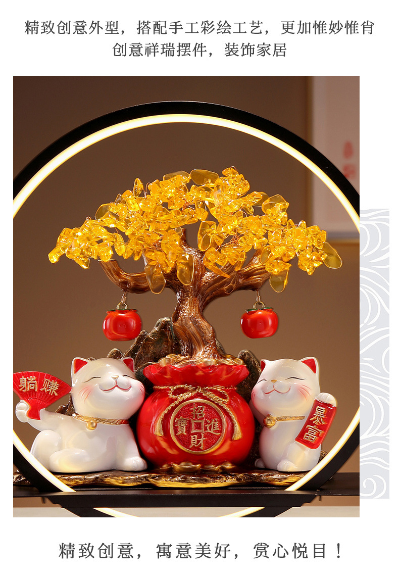 招財貓燈圈黃水晶發財搖錢樹擺件客廳店鋪收銀台裝飾喬遷開業禮物