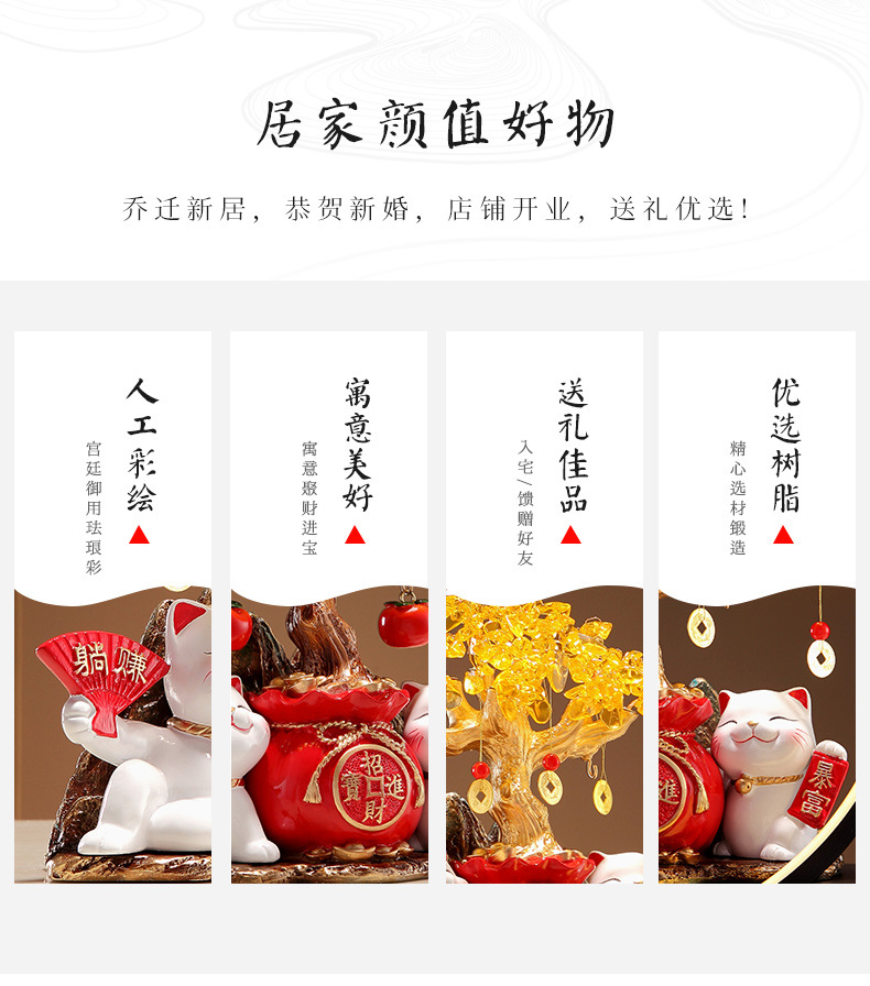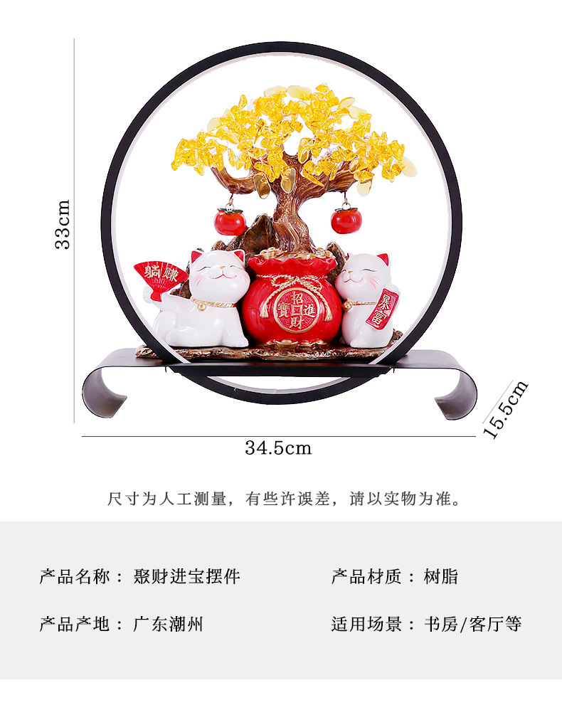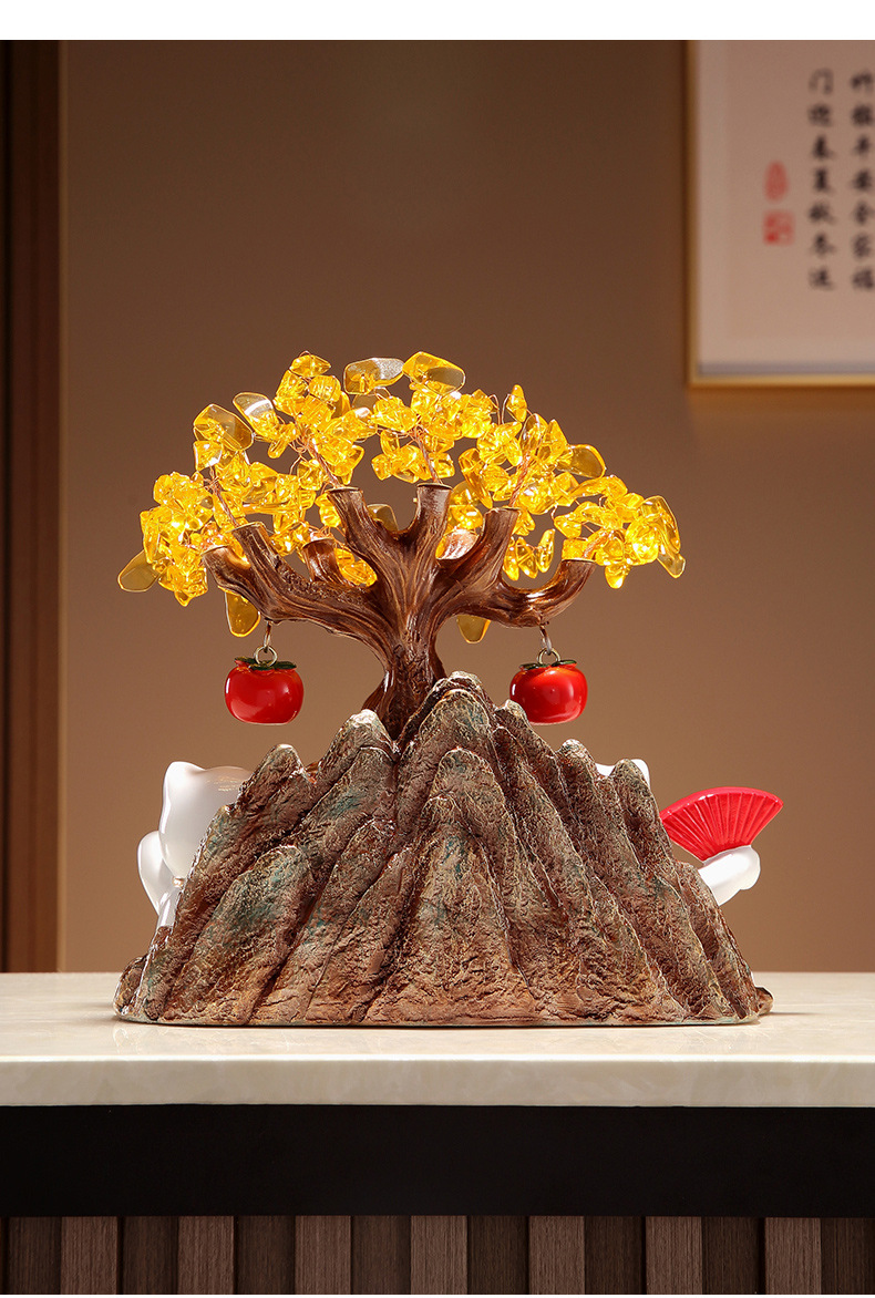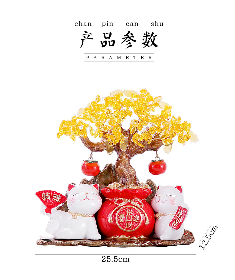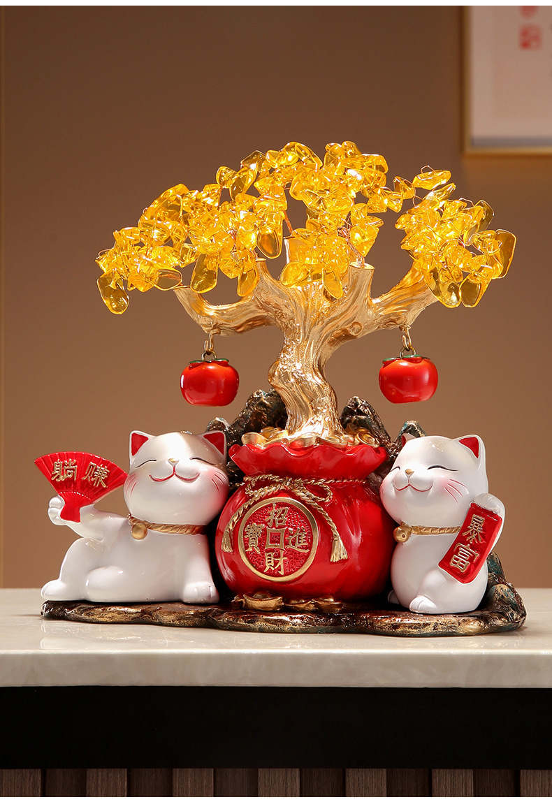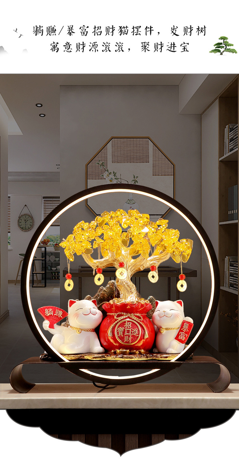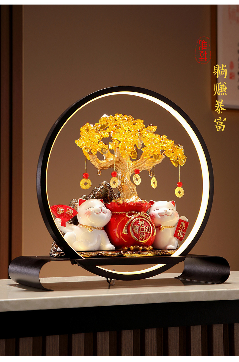 招財貓燈圈黃水晶發財搖錢樹擺件客廳店鋪收銀台裝飾喬遷開業禮物