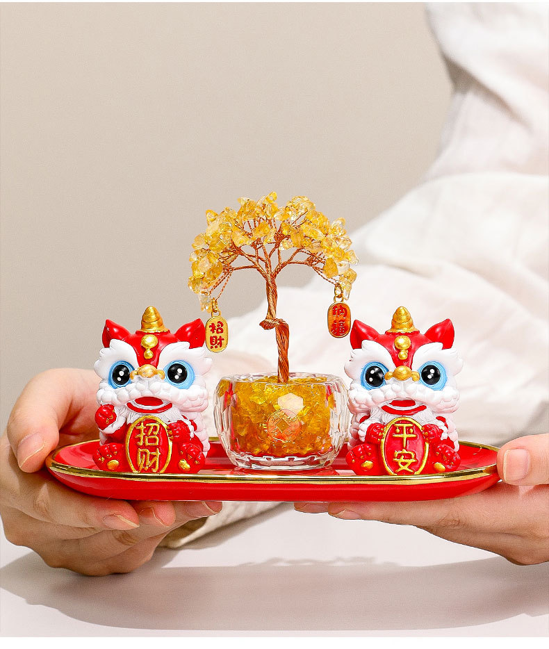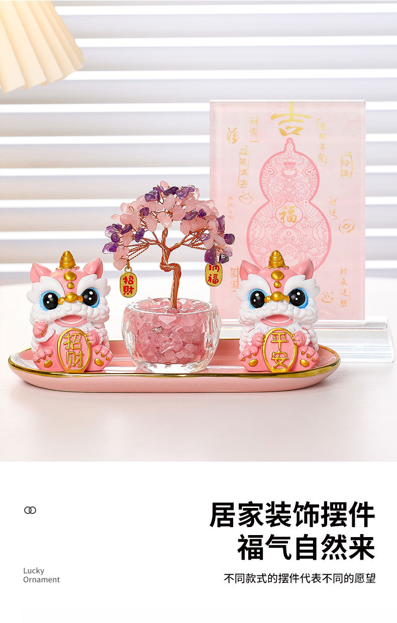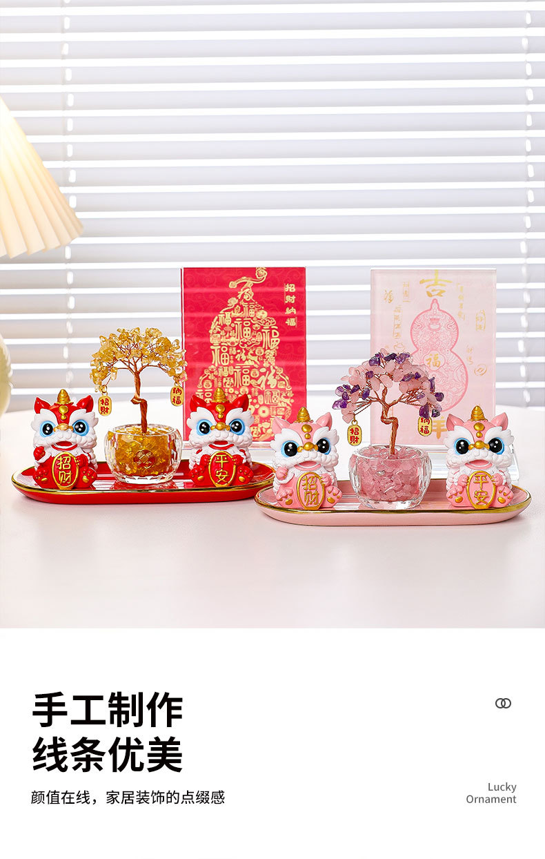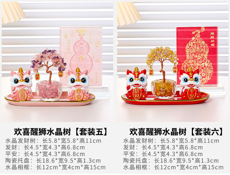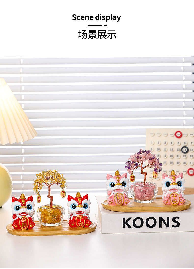 卡通歡喜醒獅水晶發財樹家居客廳辦公室裝飾擺件創意喬遷新居禮品