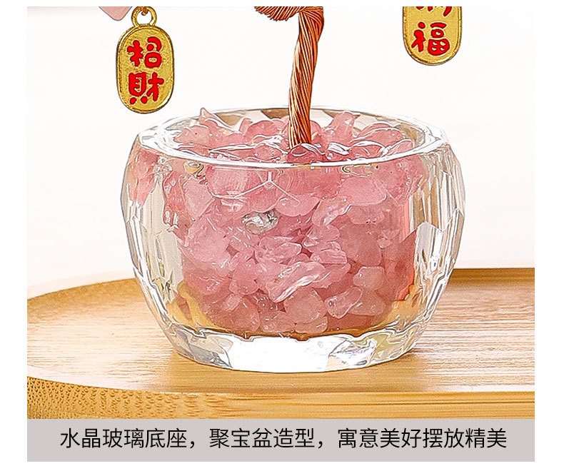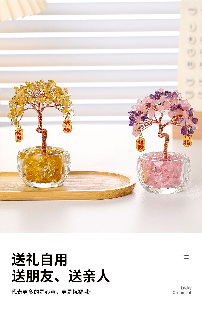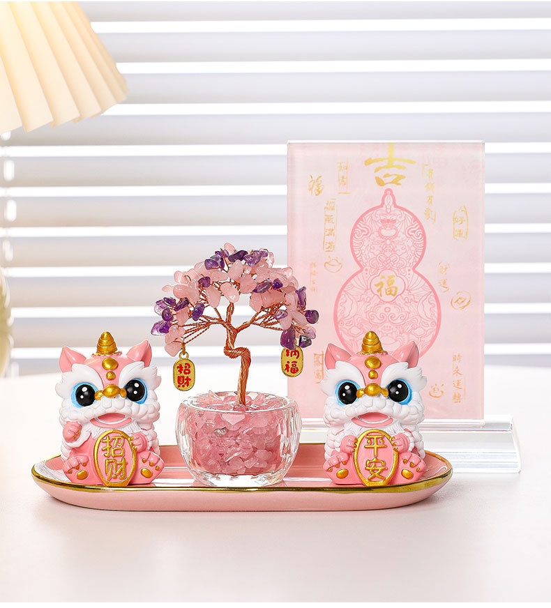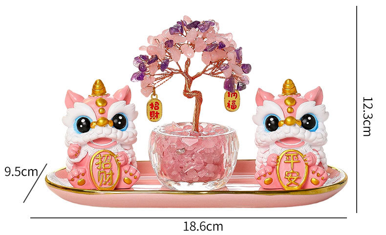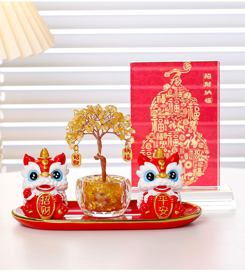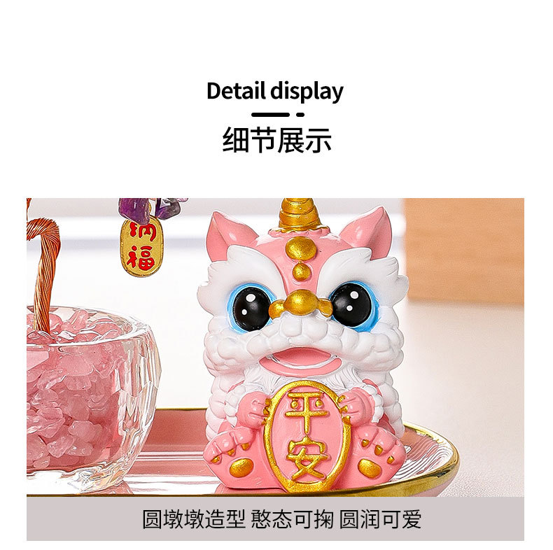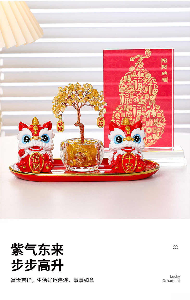 卡通歡喜醒獅水晶發財樹家居客廳辦公室裝飾擺件創意喬遷新居禮品