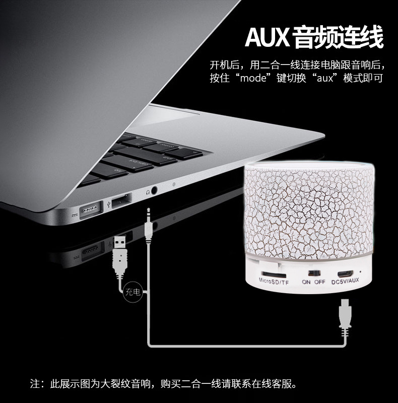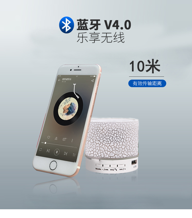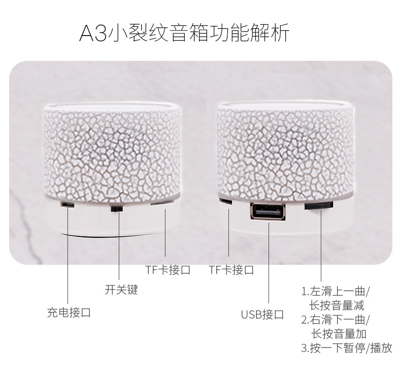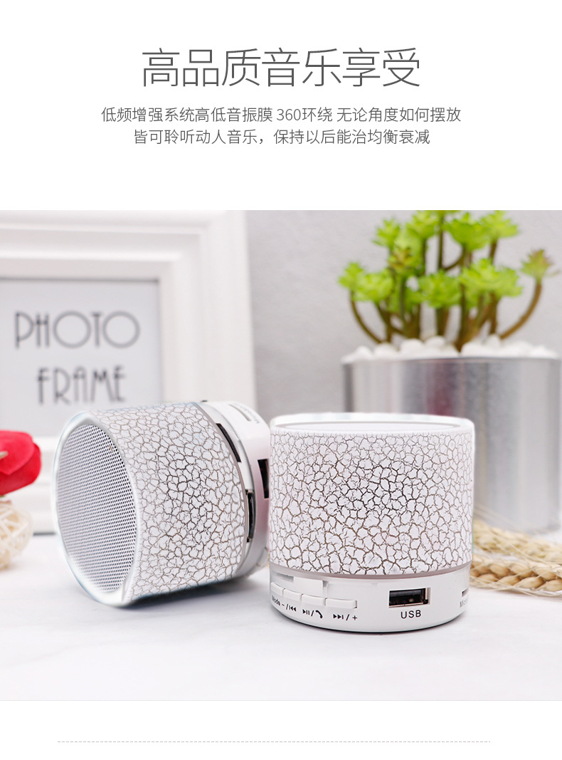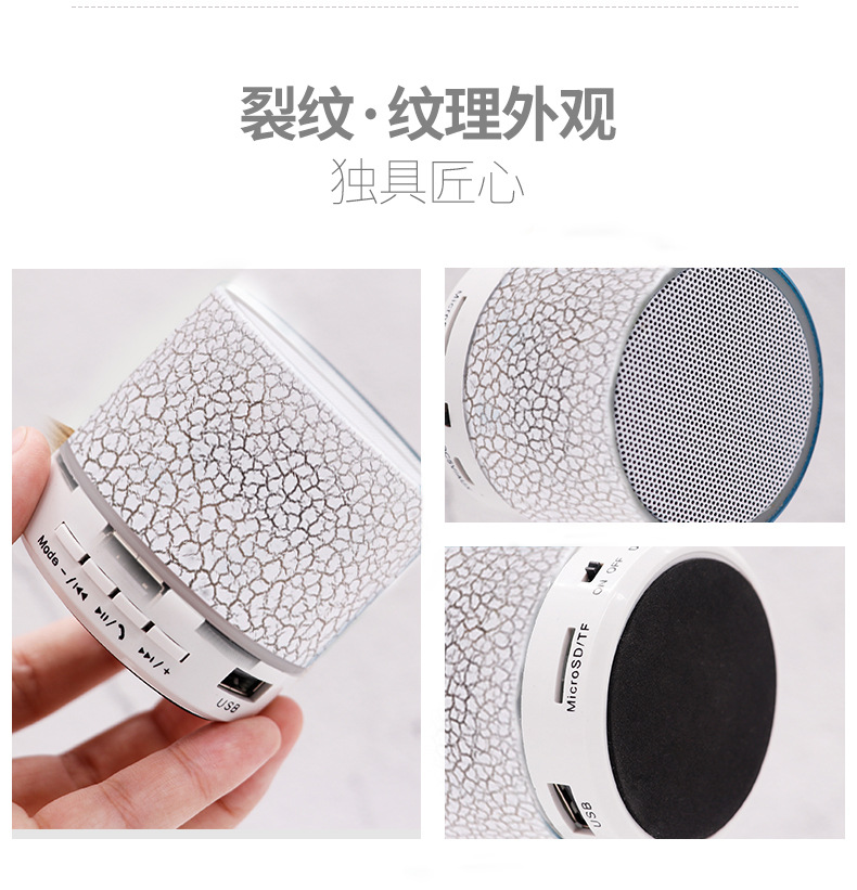 新款迷你裂紋藍牙音響 可攜式插卡低音砲音響led發光無線音箱禮品