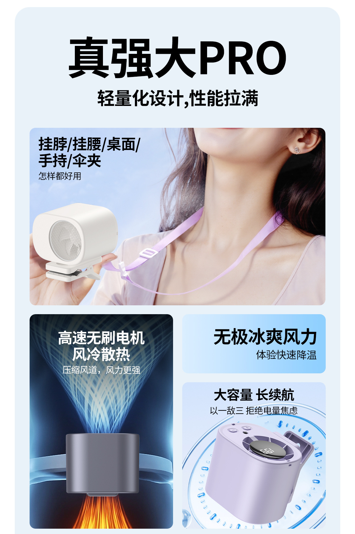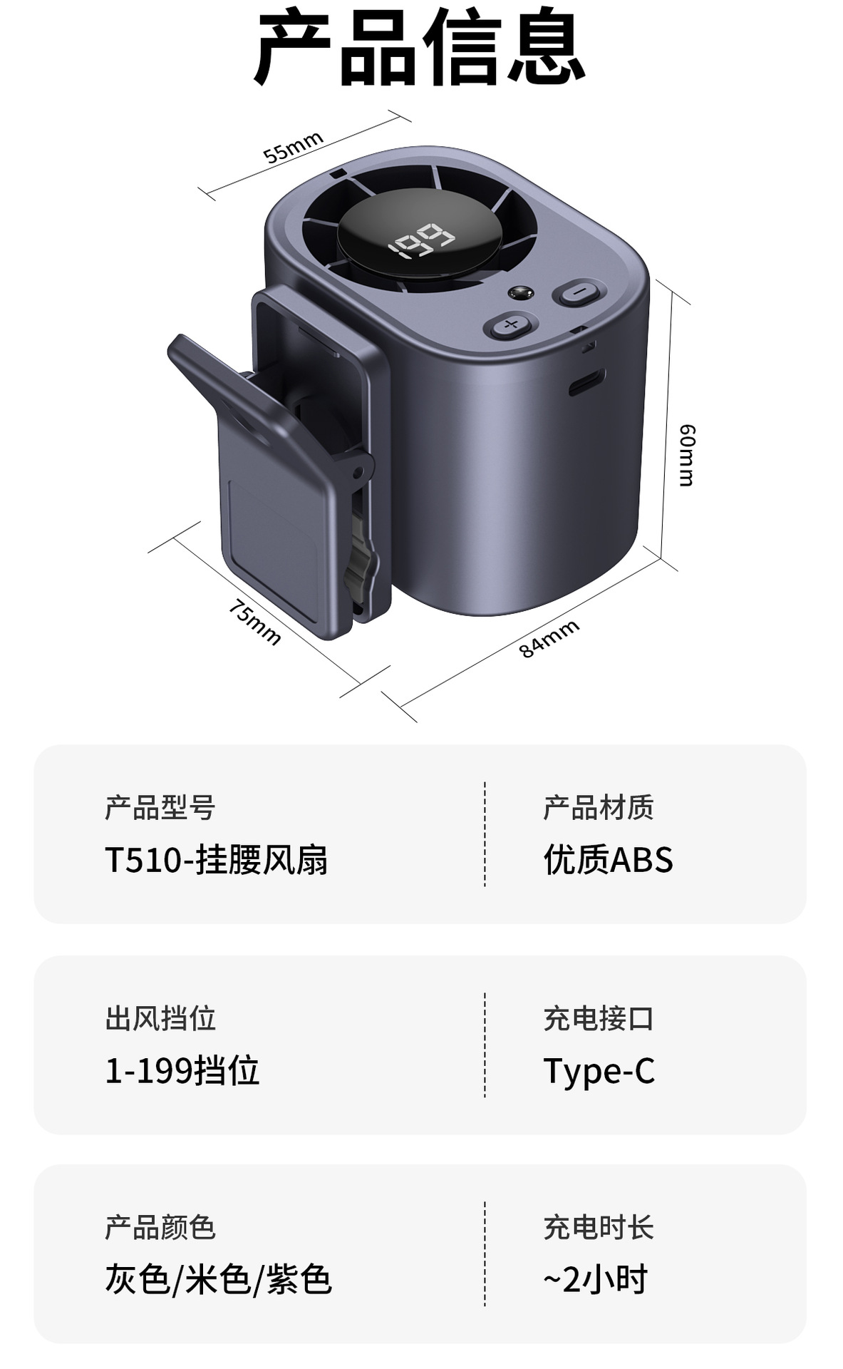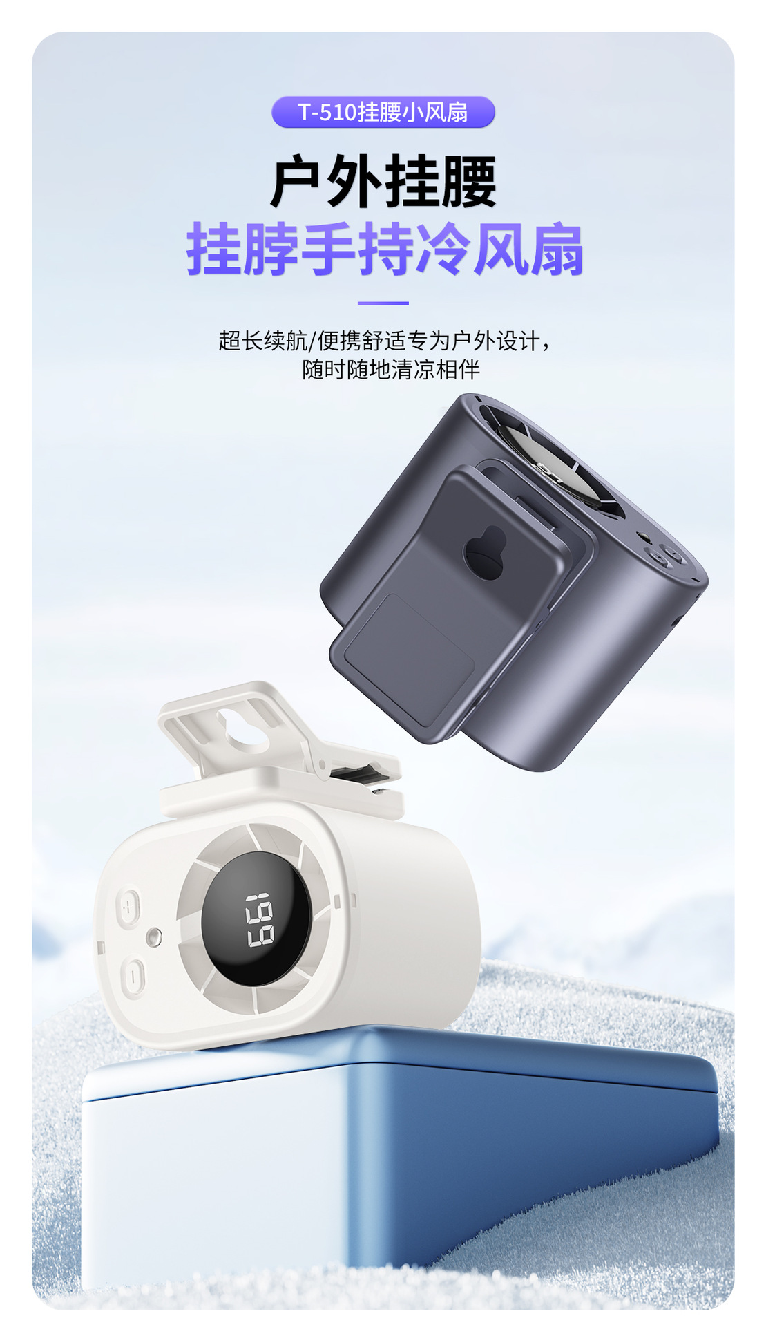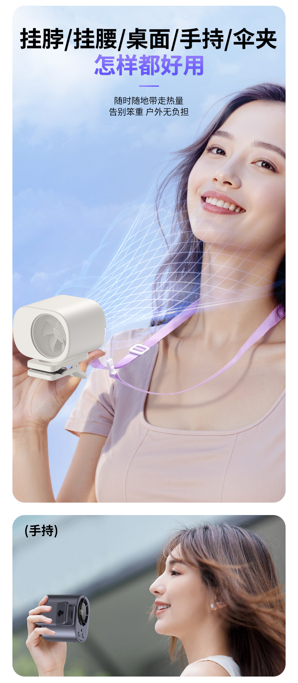 新款掛腰風扇工地戶外隨身夾腰可攜式風扇消暑降溫usb迷你高速風扇