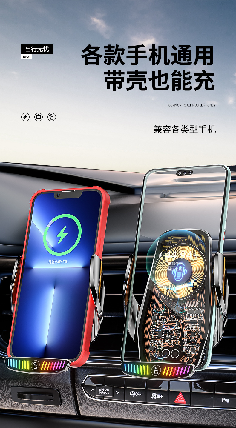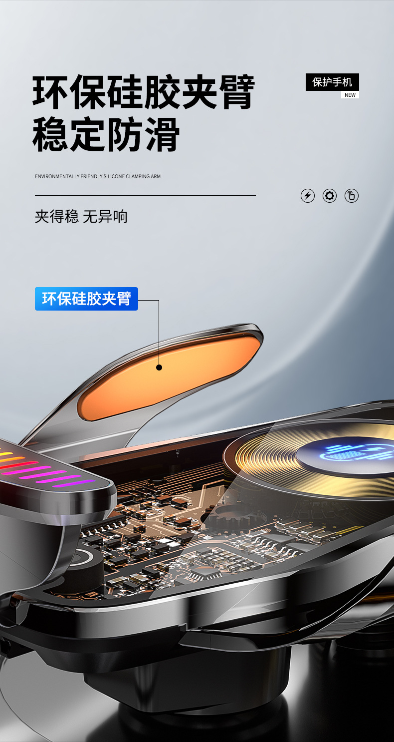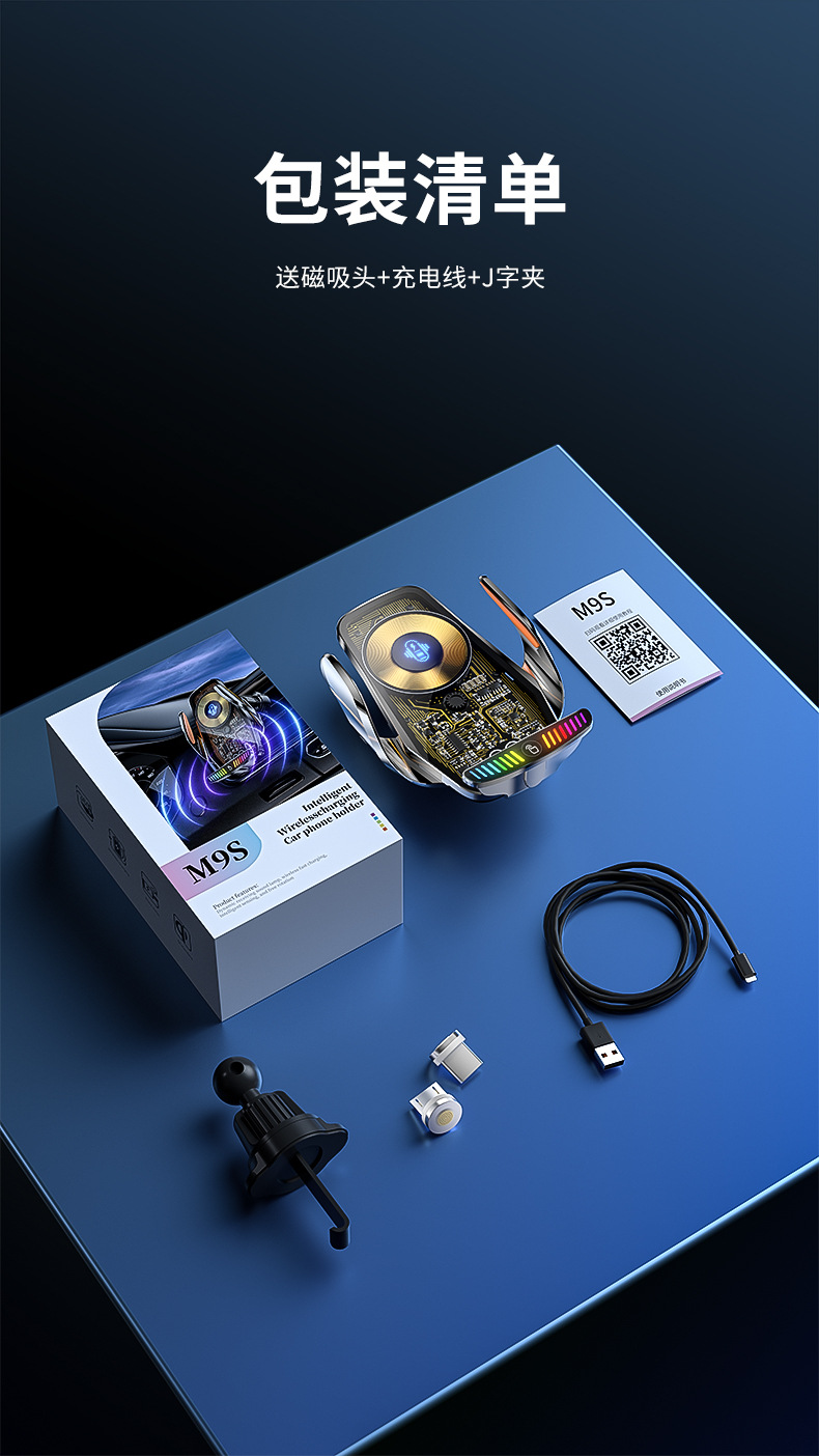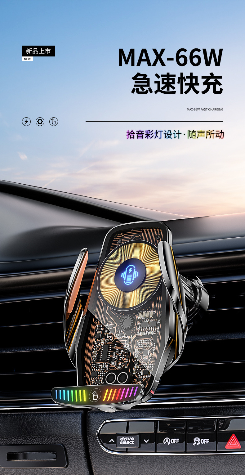 魔夾M9S拾音燈66W快充透明線路設計車用無線充手機支架汽車用品