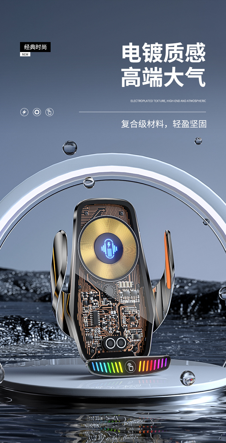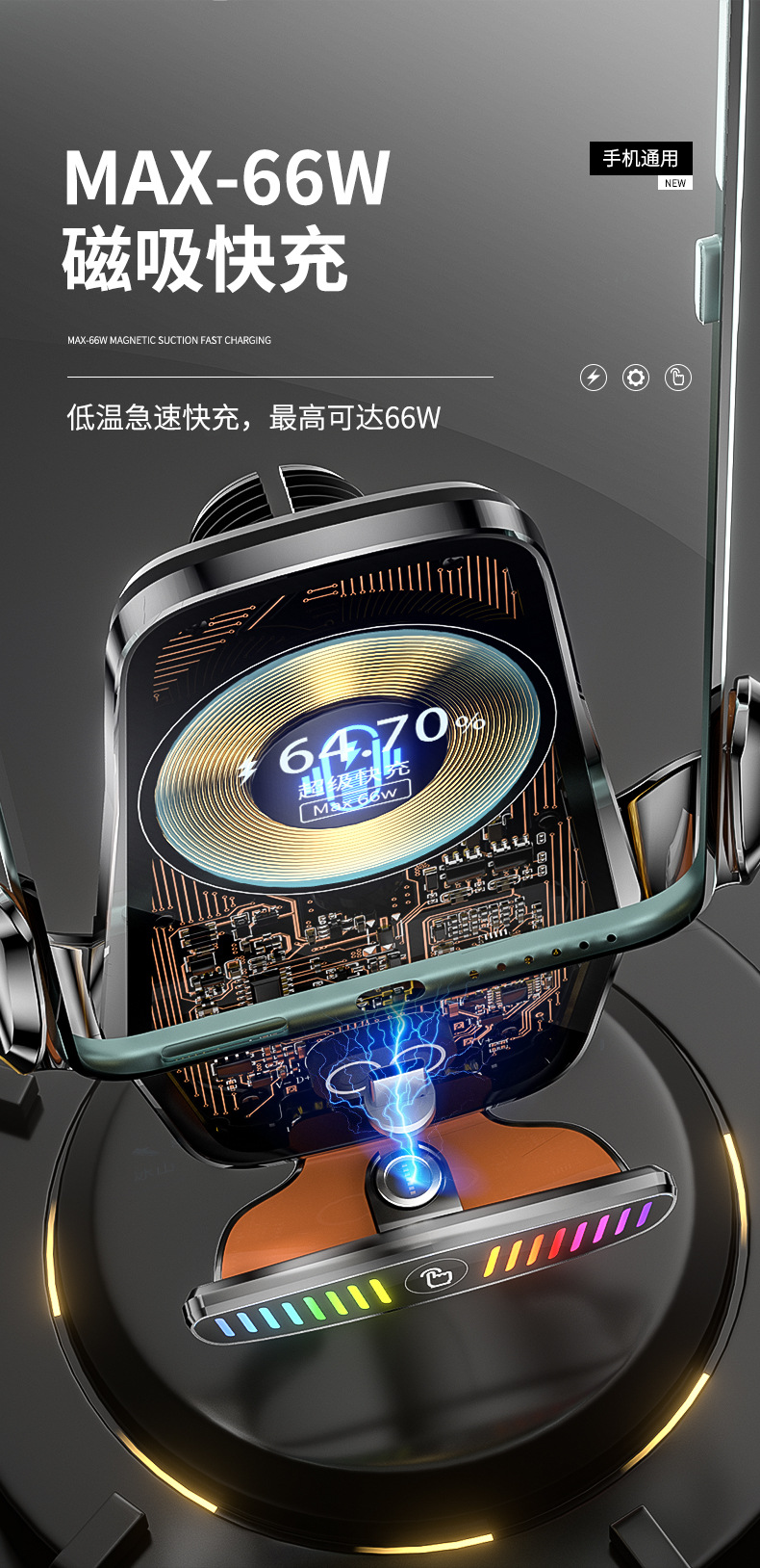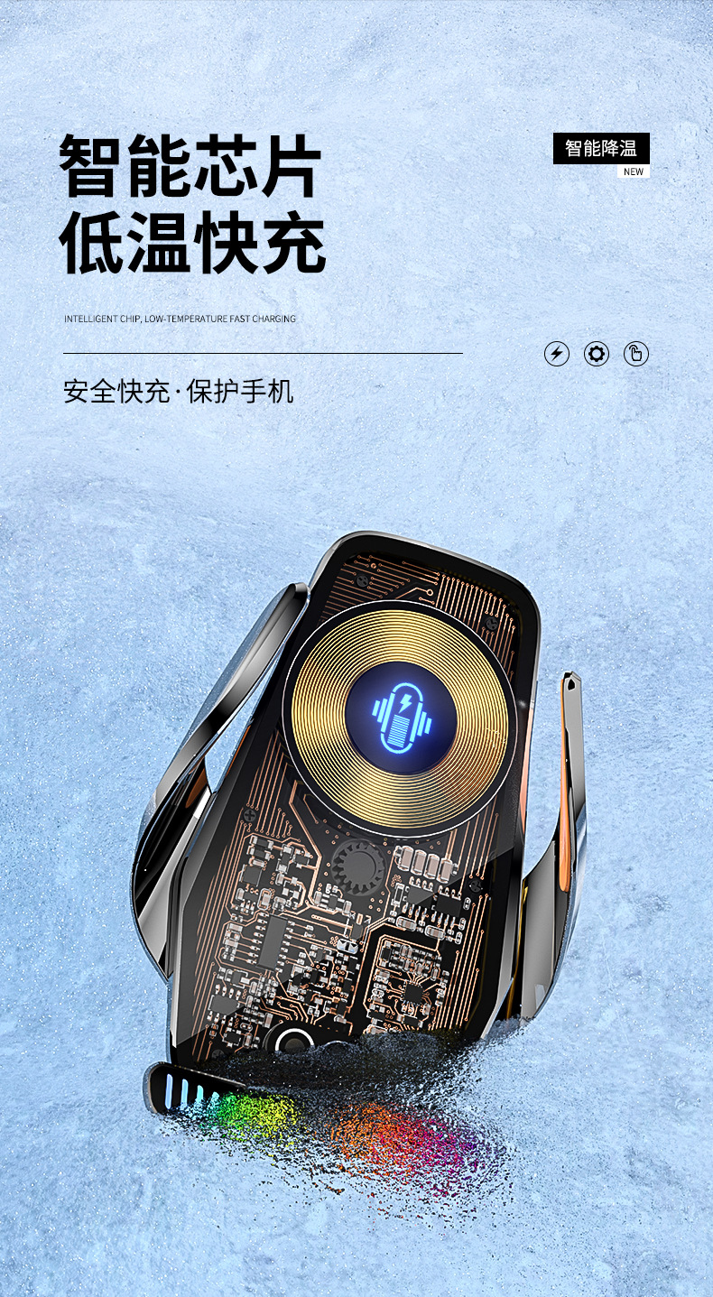 魔夾M9S拾音燈66W快充透明線路設計車用無線充手機支架汽車用品