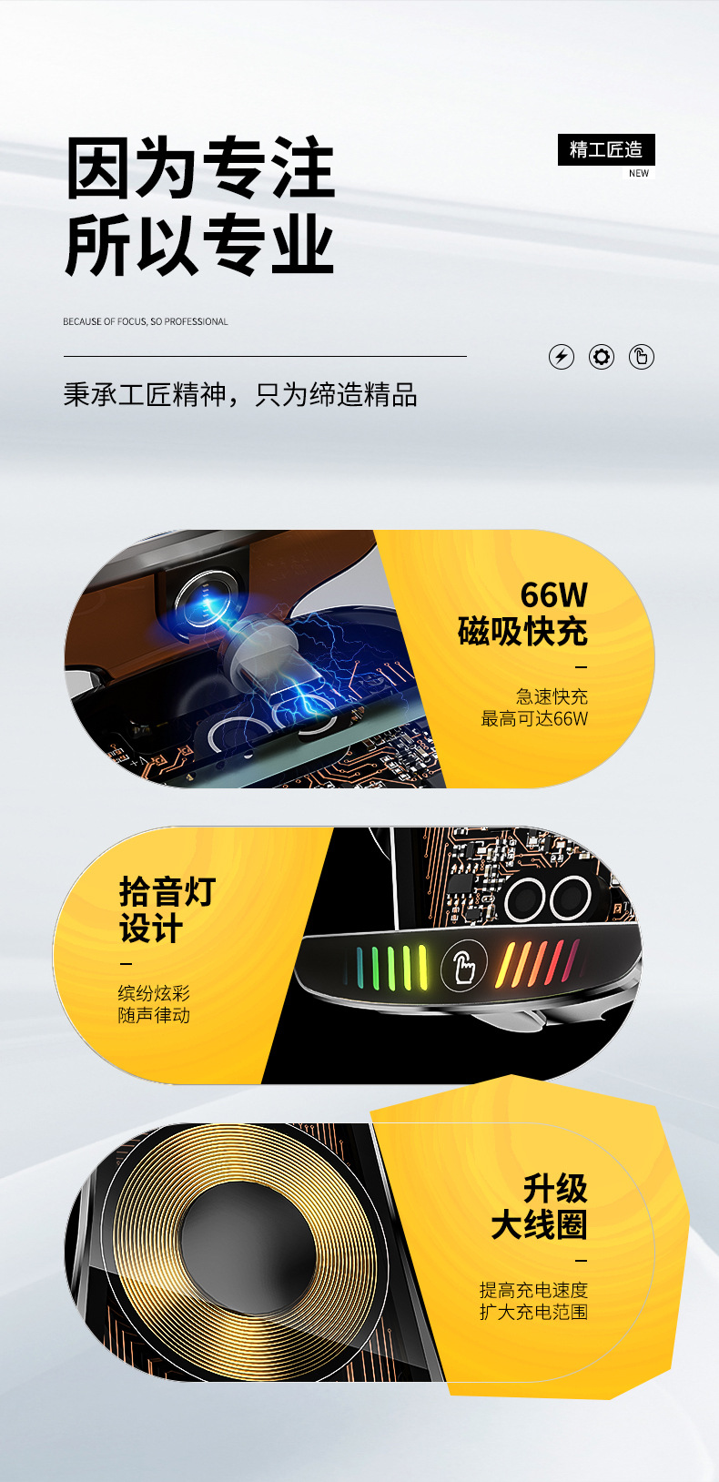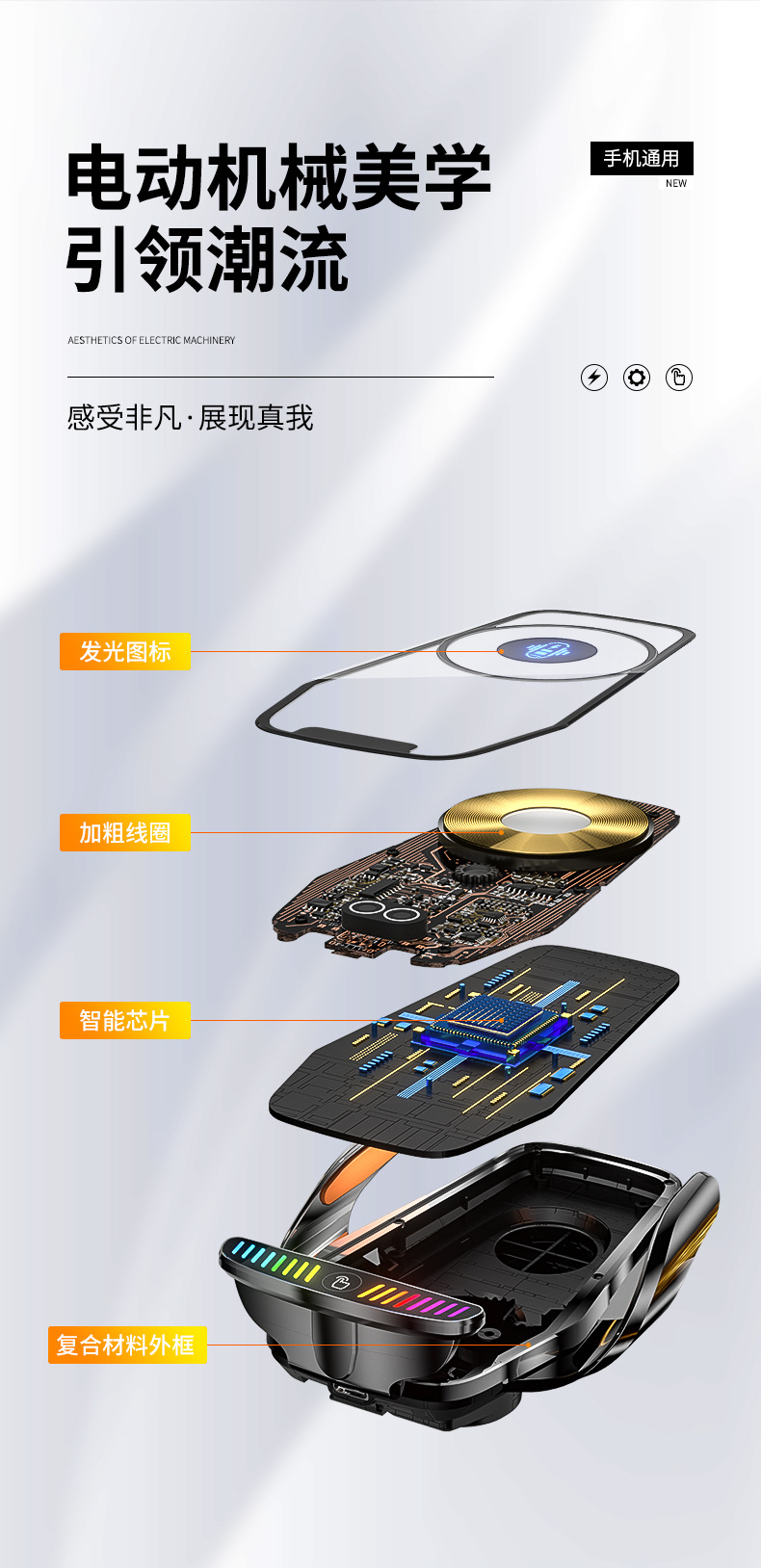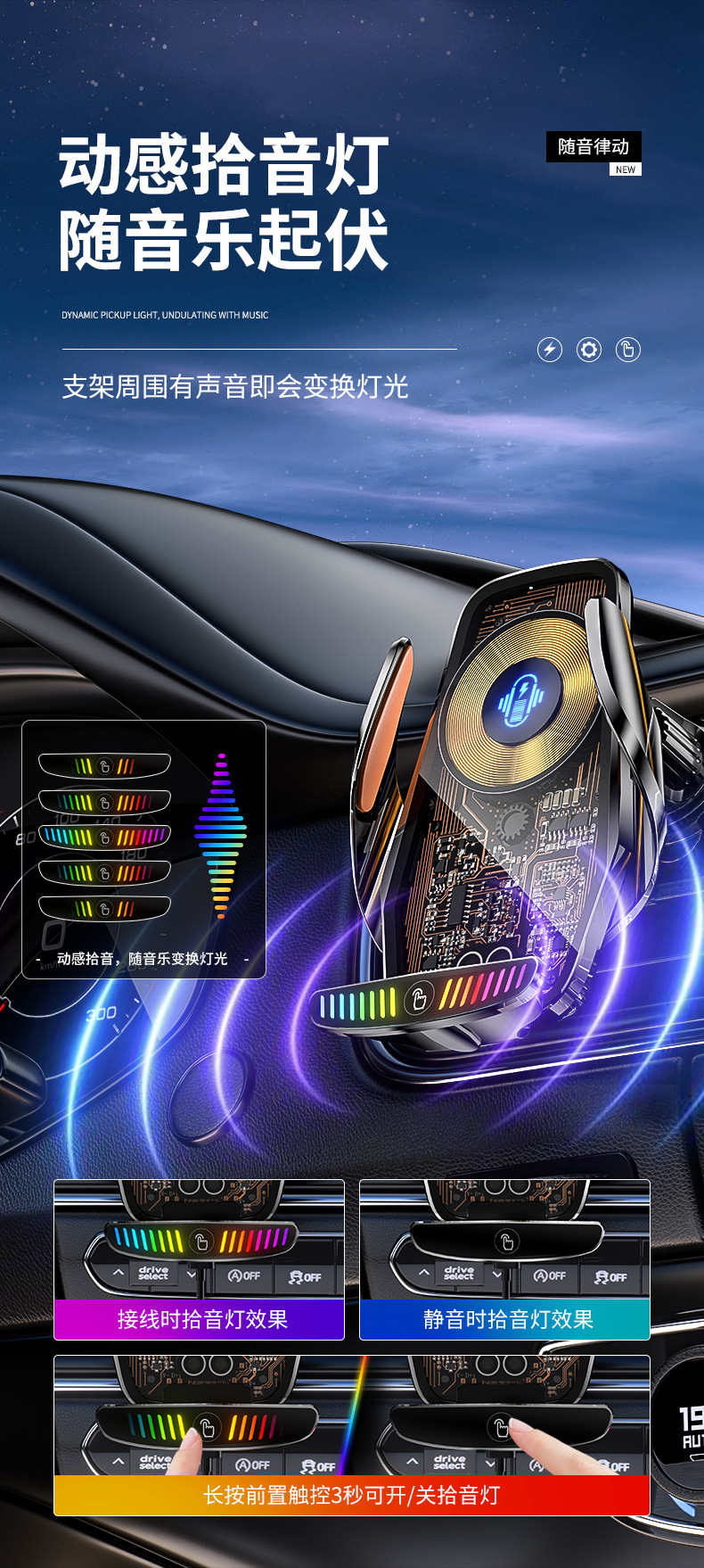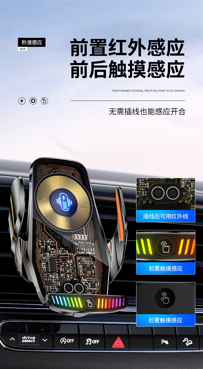 魔夾M9S拾音燈66W快充透明線路設計車用無線充手機支架汽車用品