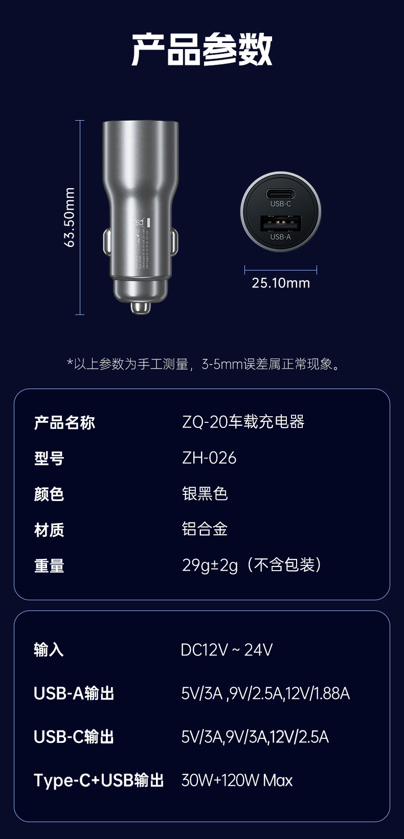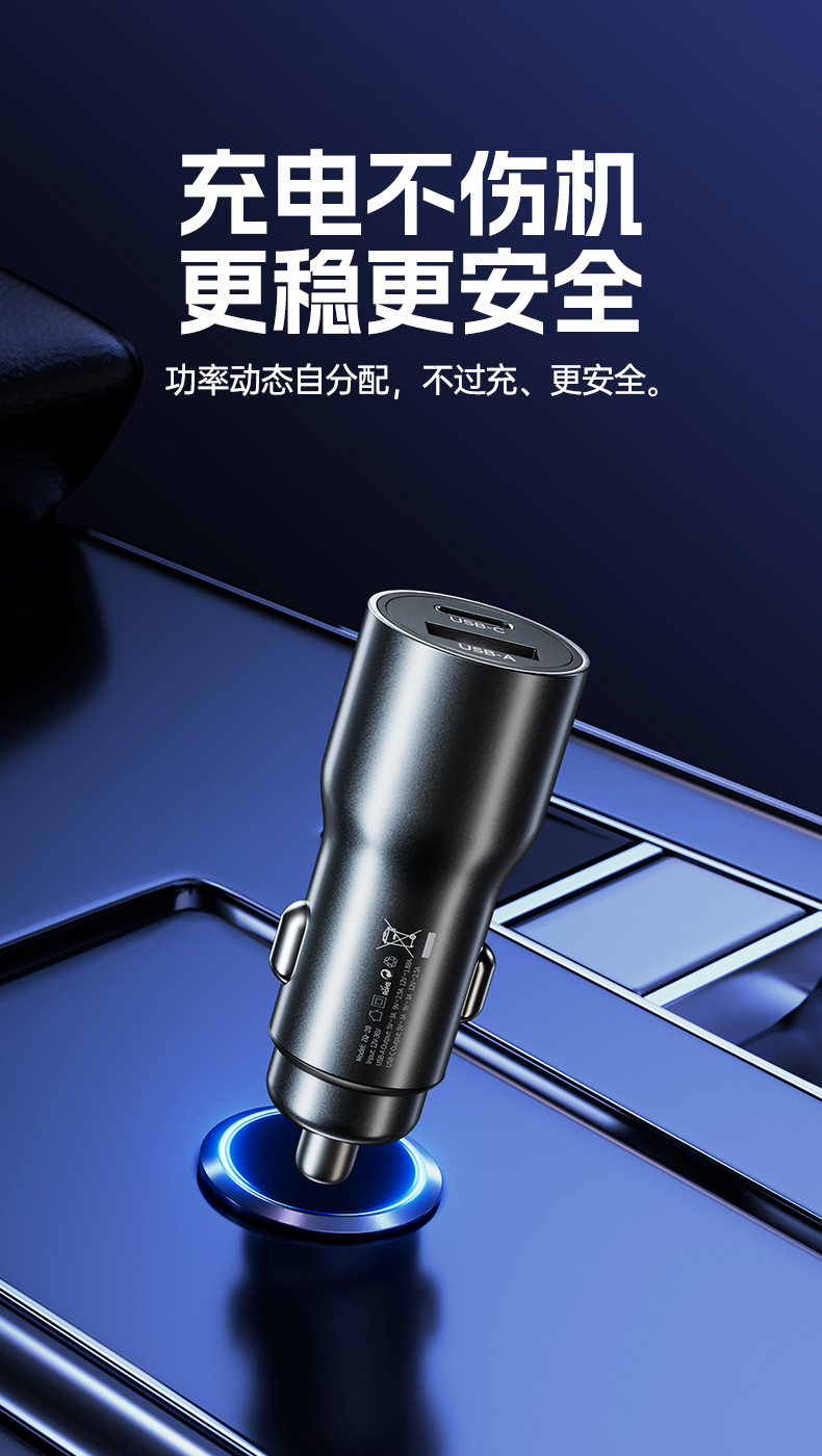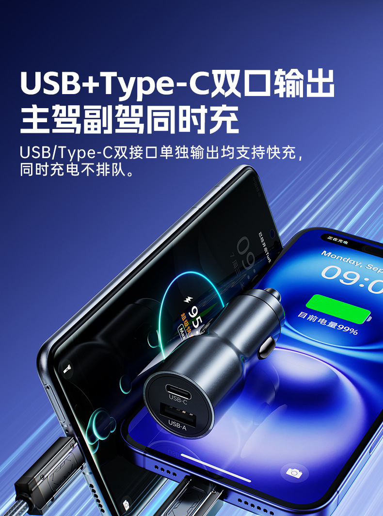 迷你小巧版120W超級雙口快充頭USB車用充電頭車型通用低溫充電PD