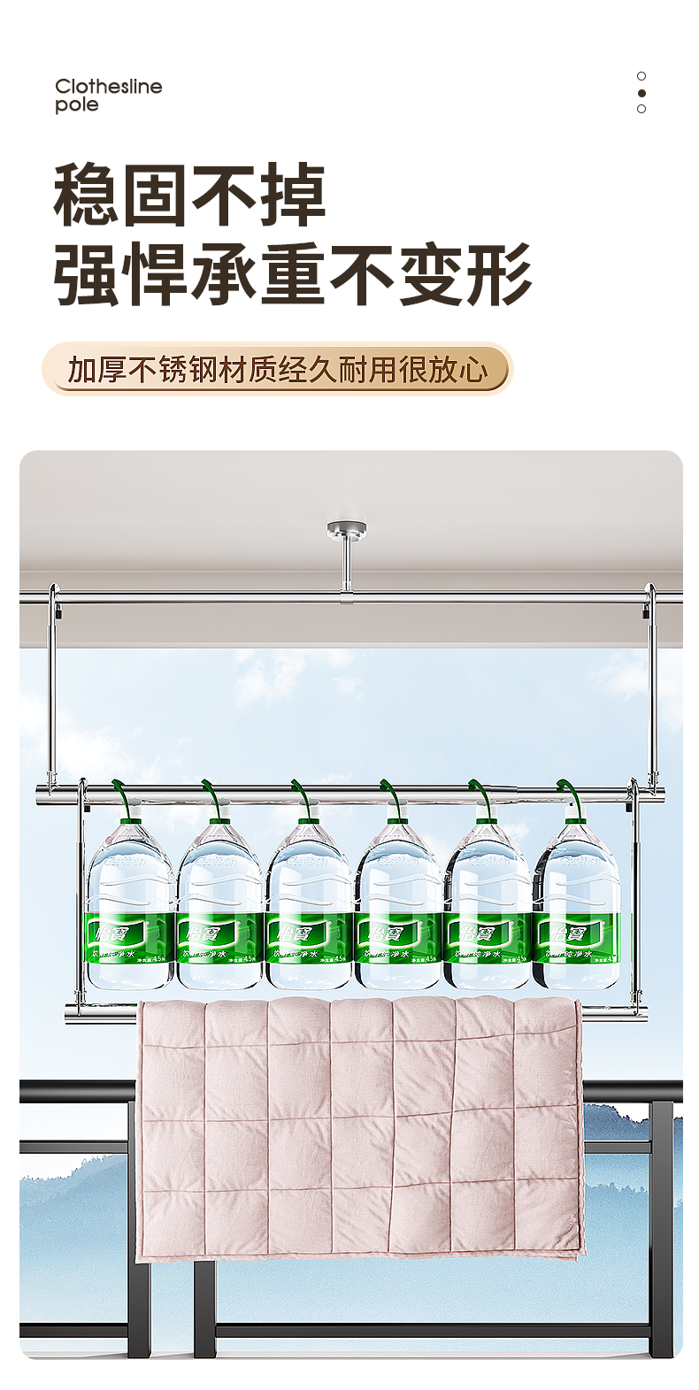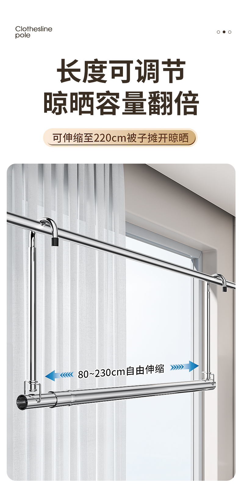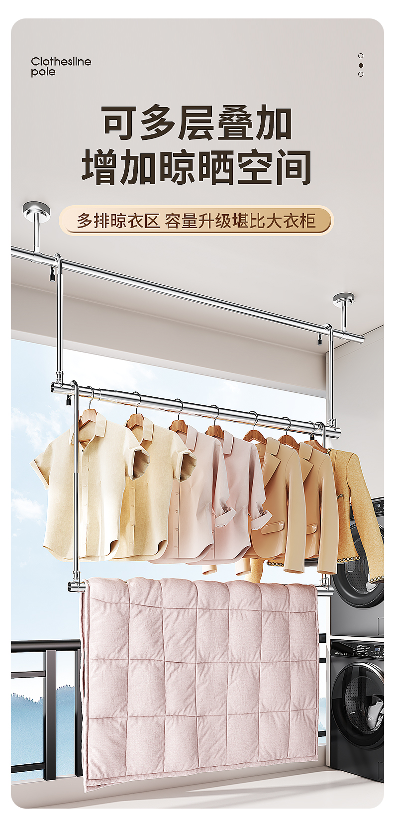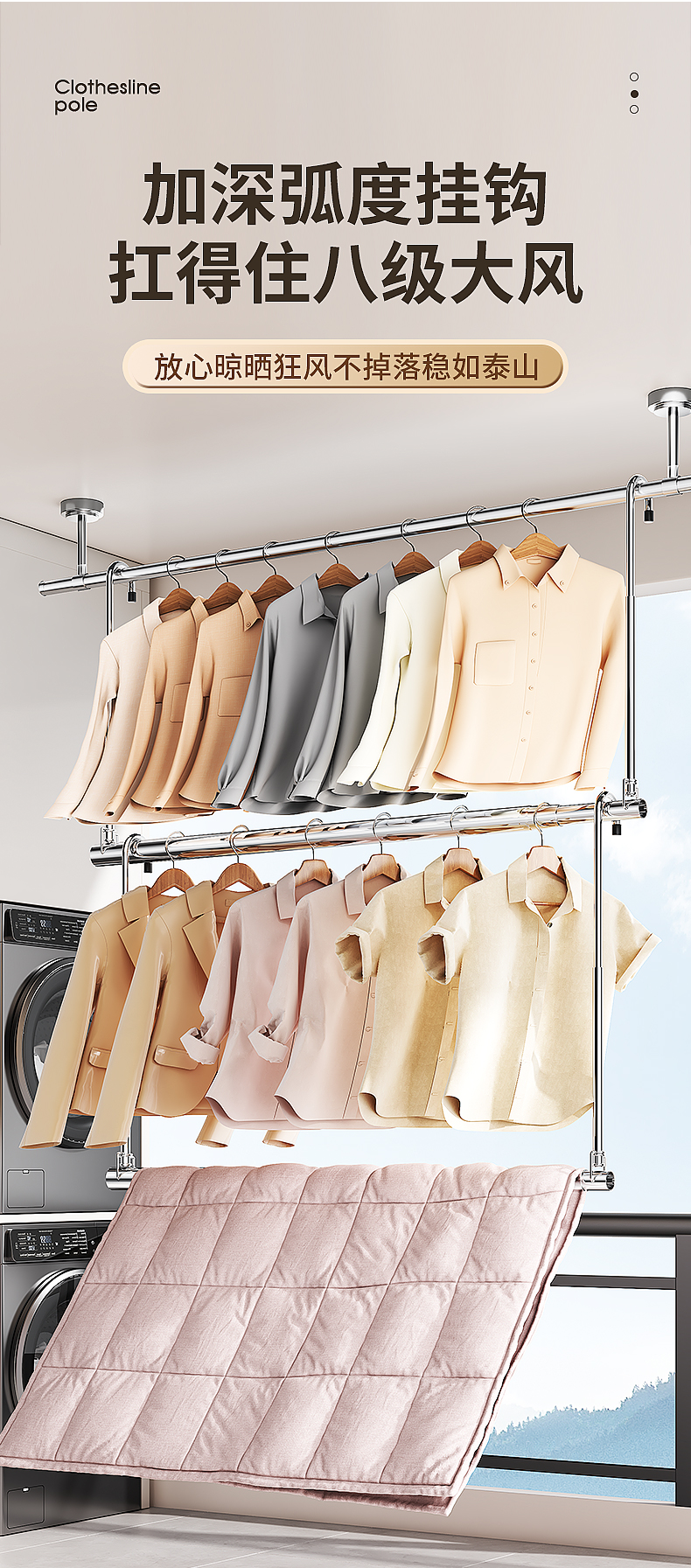 不鏽鋼伸縮晾衣桿室內陽台曬衣服曬被子曬被桿懸掛式可收納晾升降
