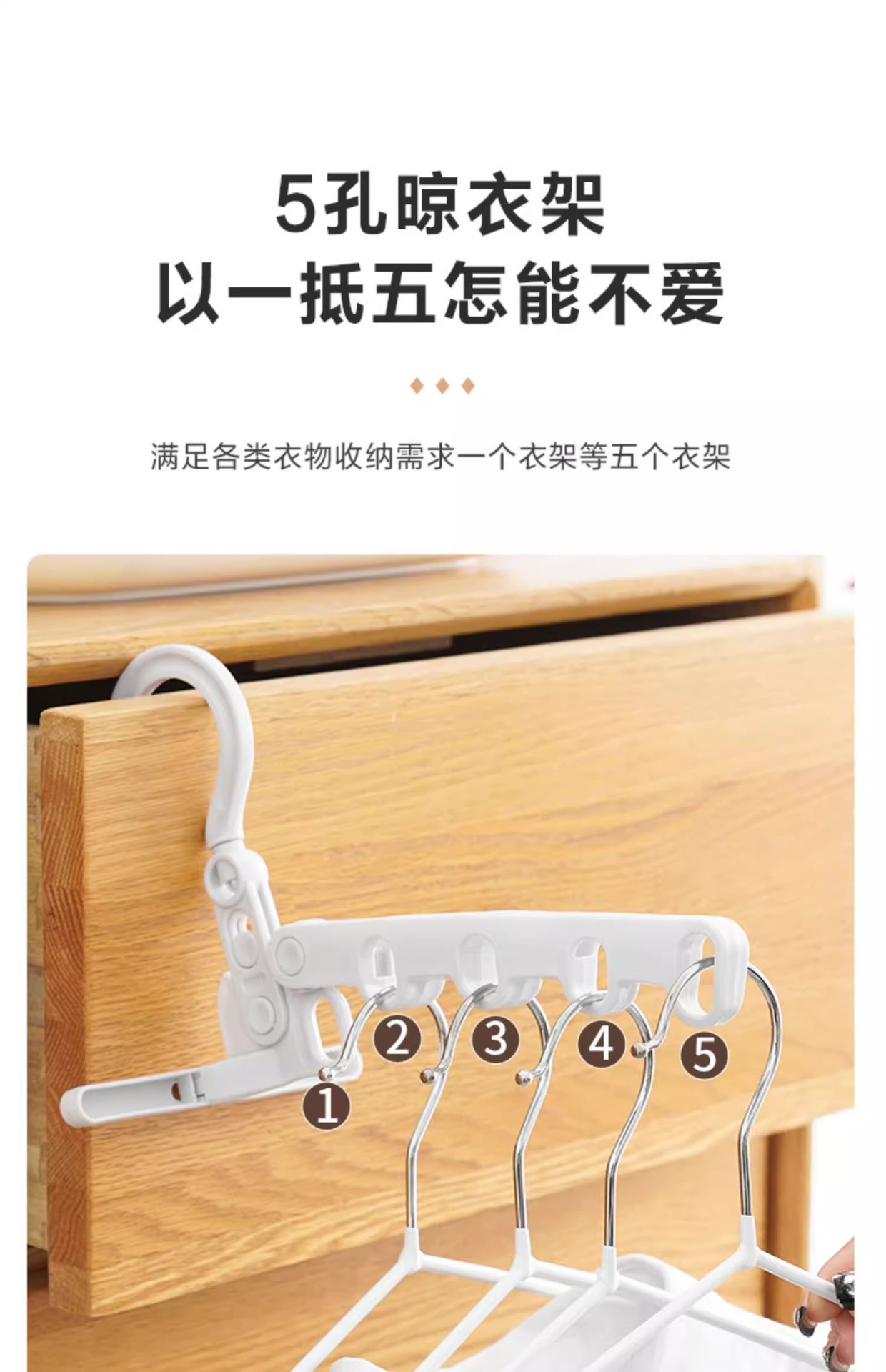 五孔折曡衣架旅行可攜式宿舍掛衣服酒店出差旅遊室內晾衣掛鉤神器