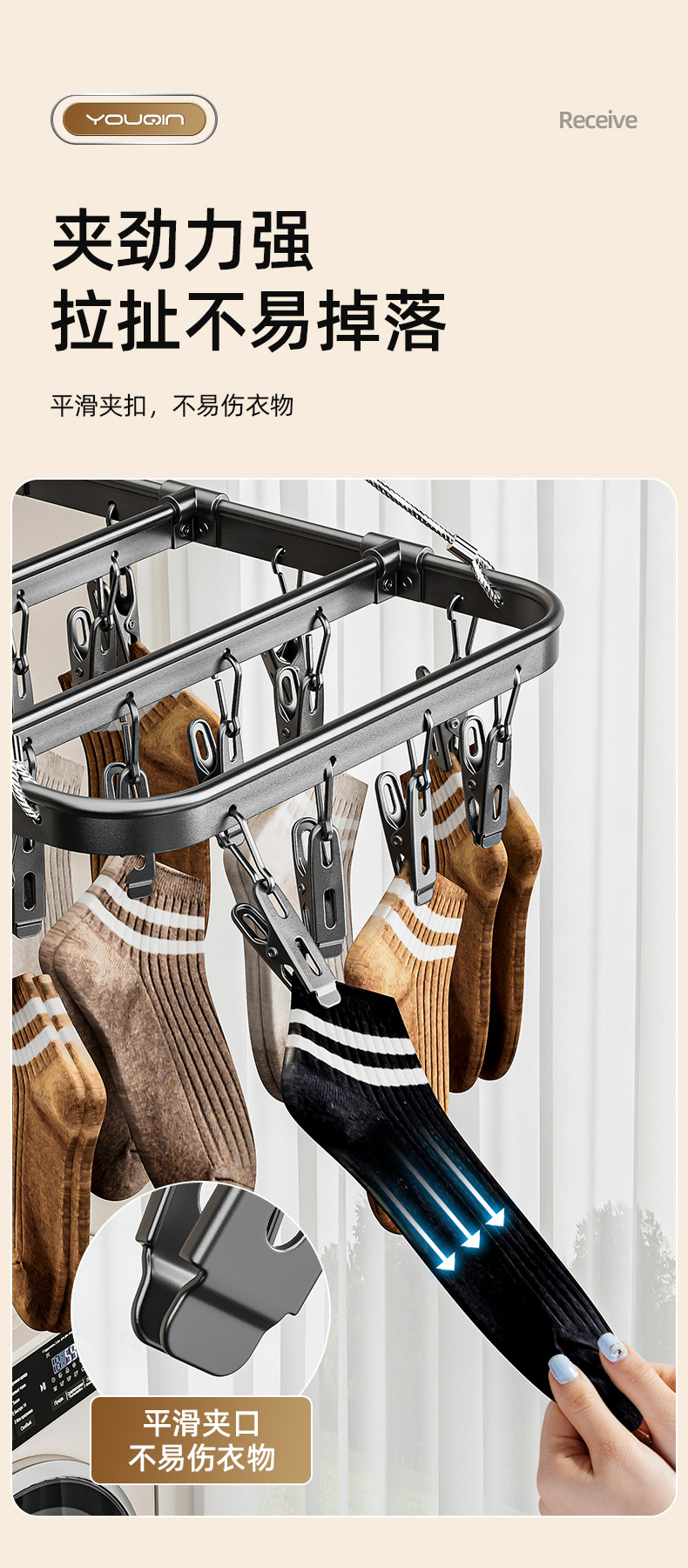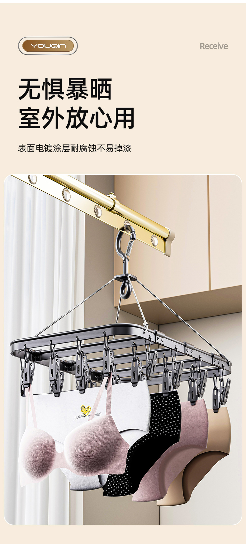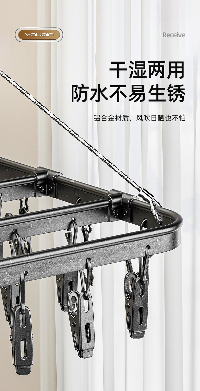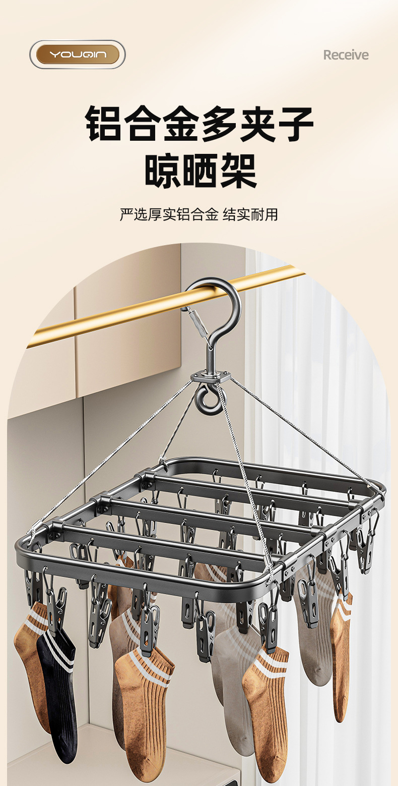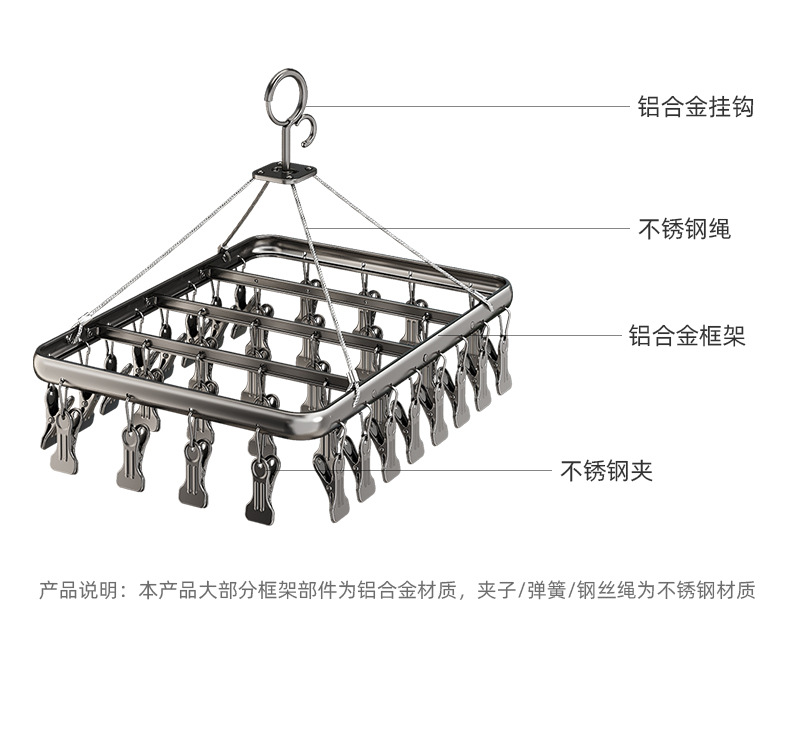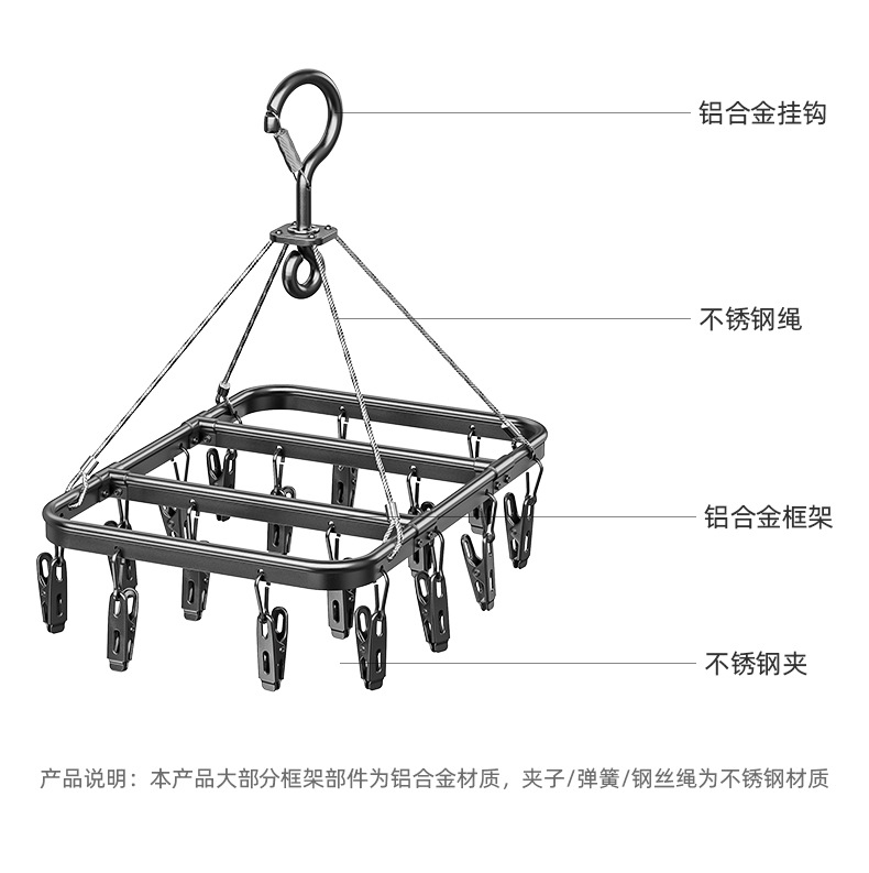 不鏽鋼鋁合金晾襪子嬰兒晾曬衣架多夾子內衣內褲掛鉤神器家用陽台