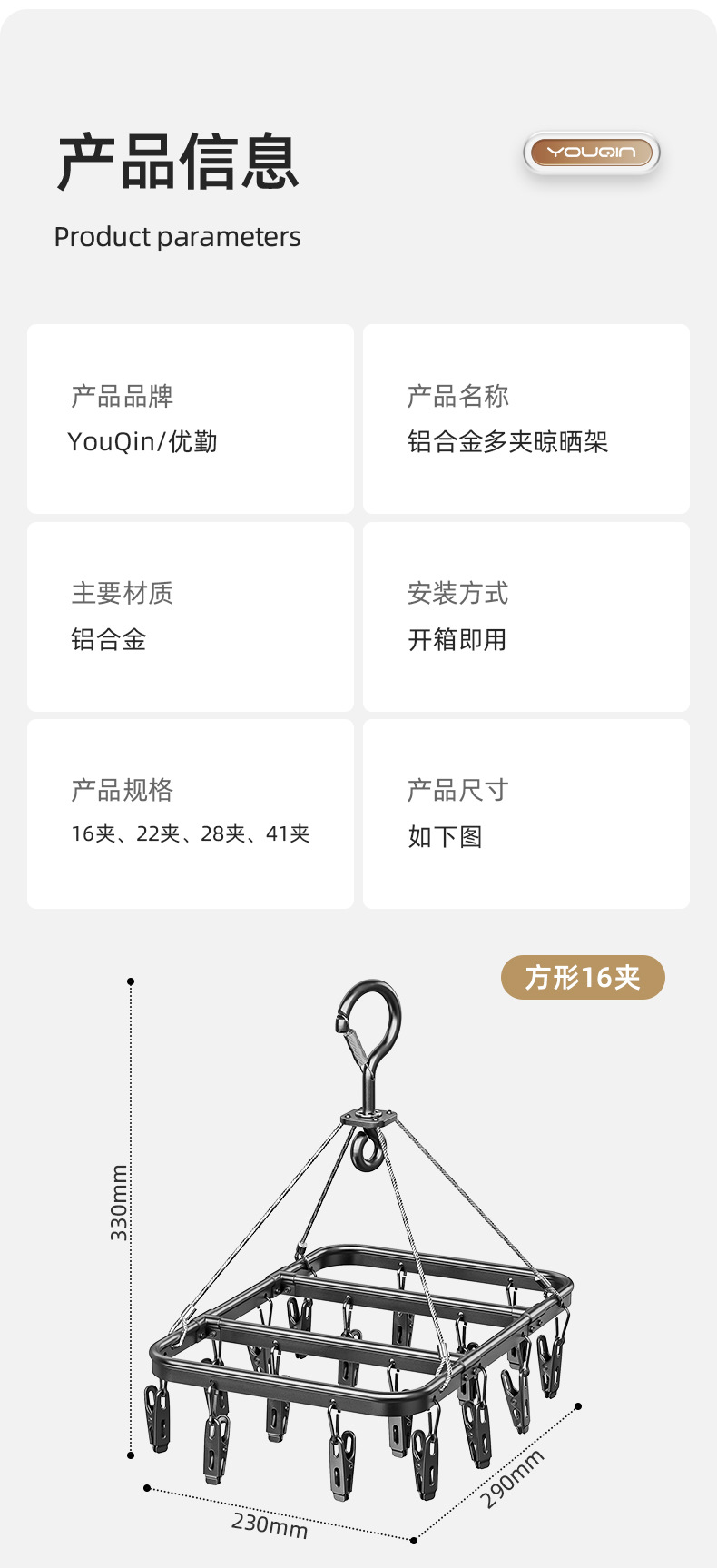 | 顔色 | 槍灰【方形41夾+方形16夾】鋁合金不生鏽 |