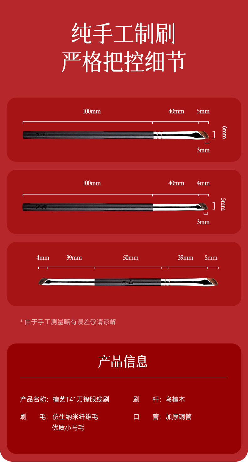 檀藝t41刀鋒眼線刷鐮刀臥蠶刷畫眼瞼下至刷眼線筆刷眼影刷化妝刷