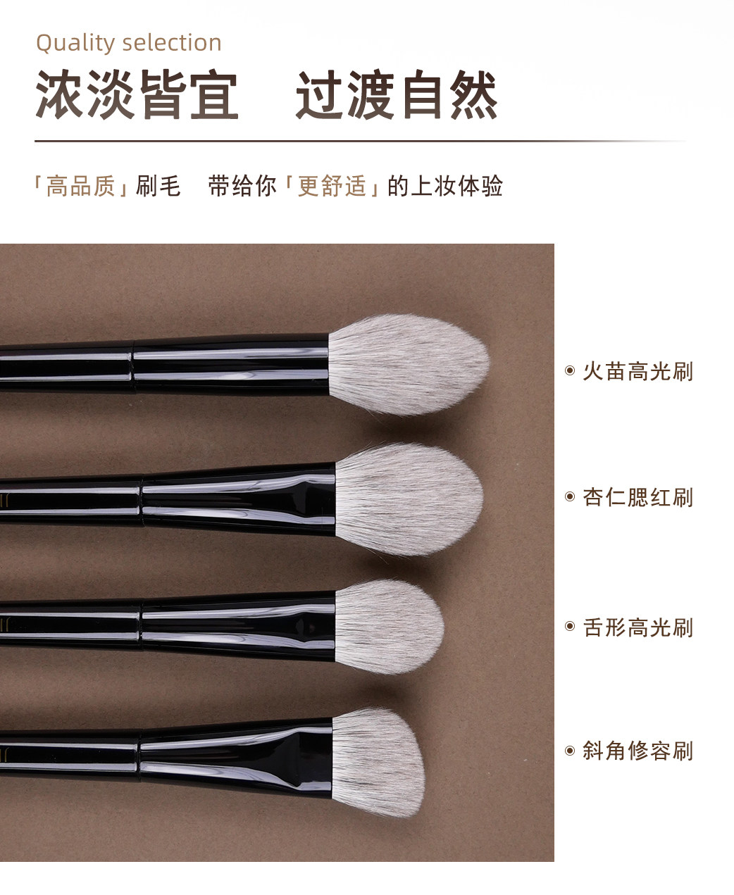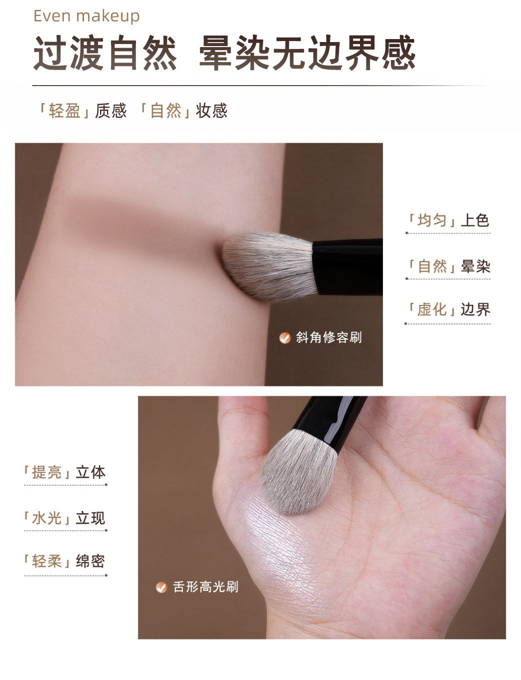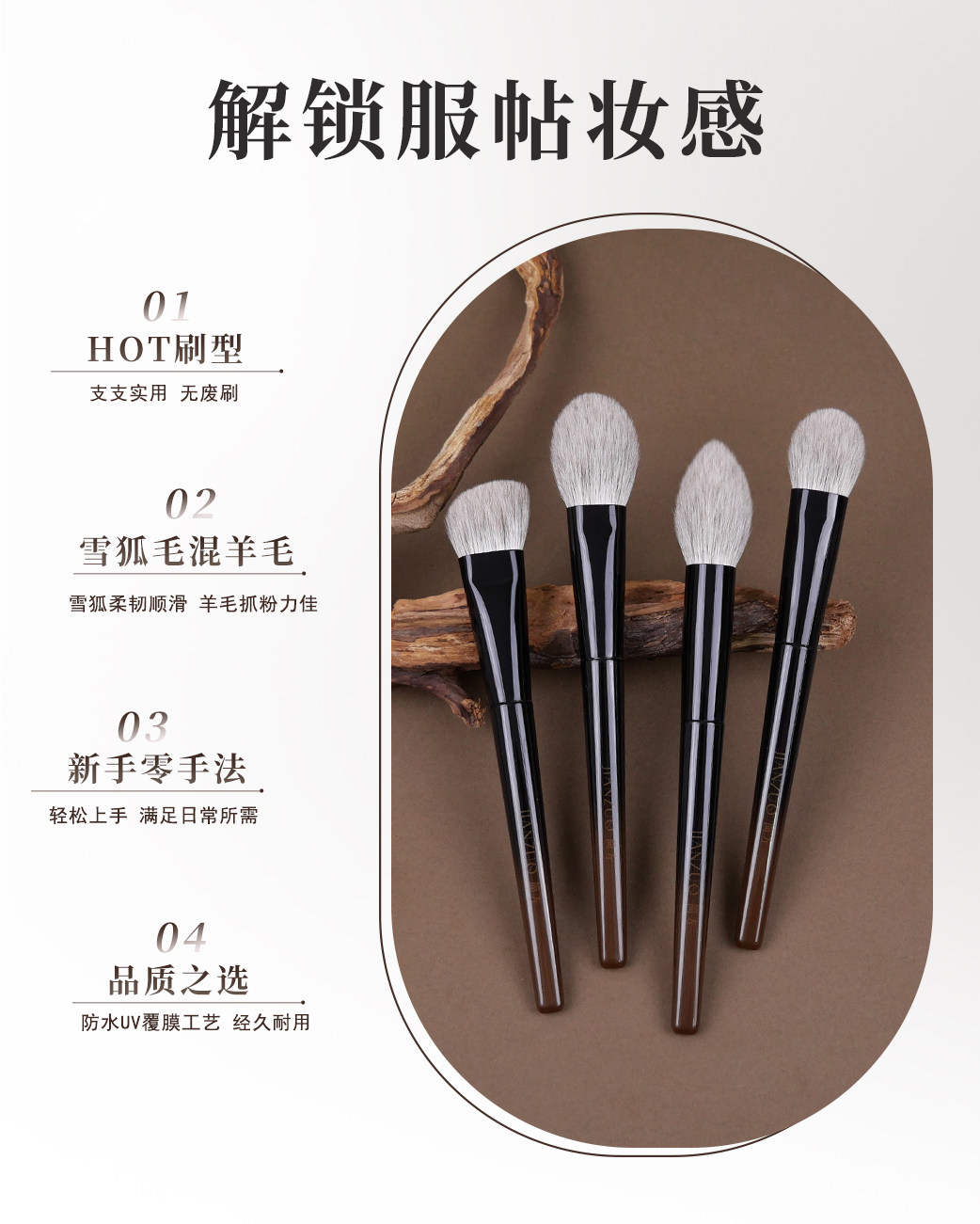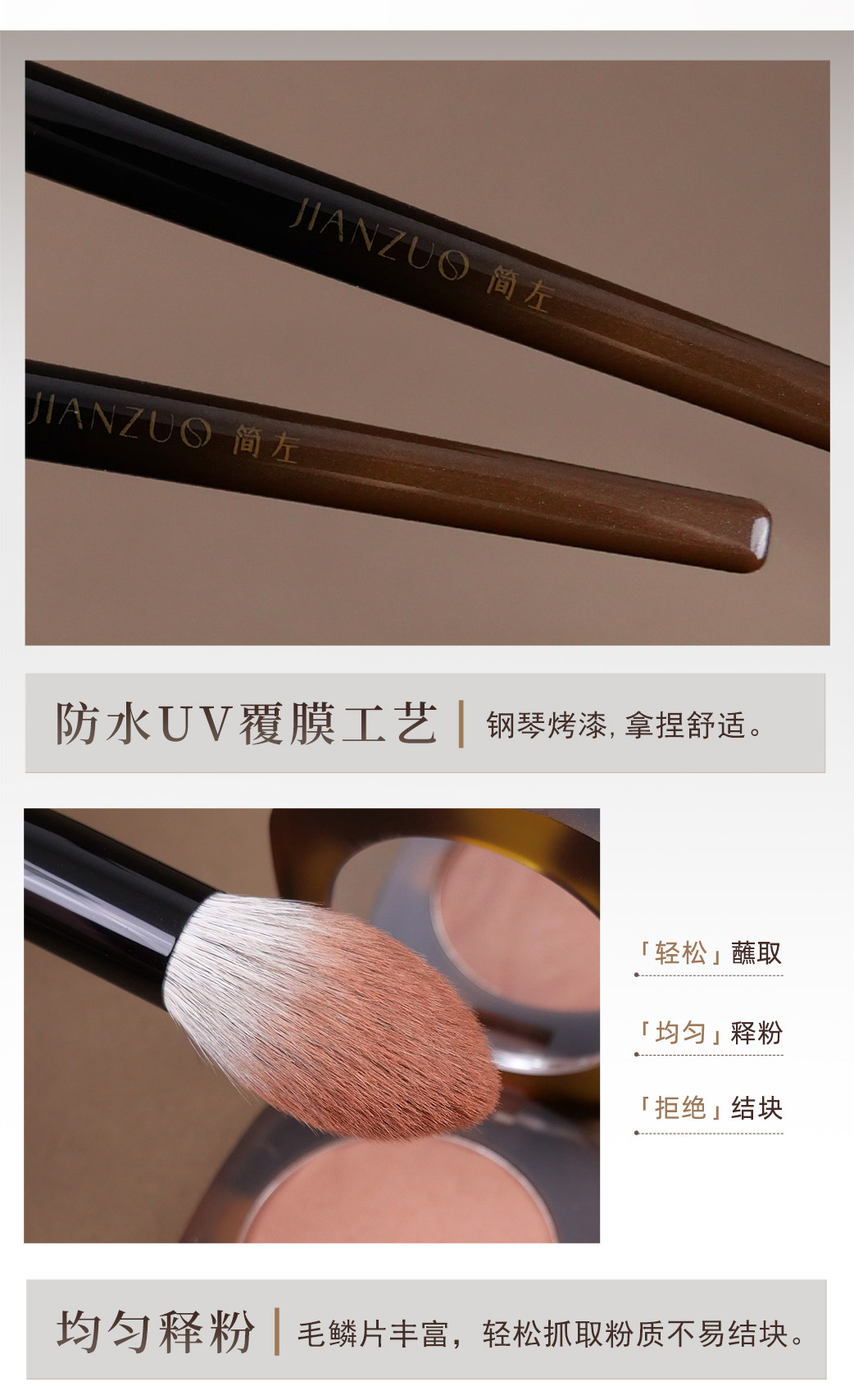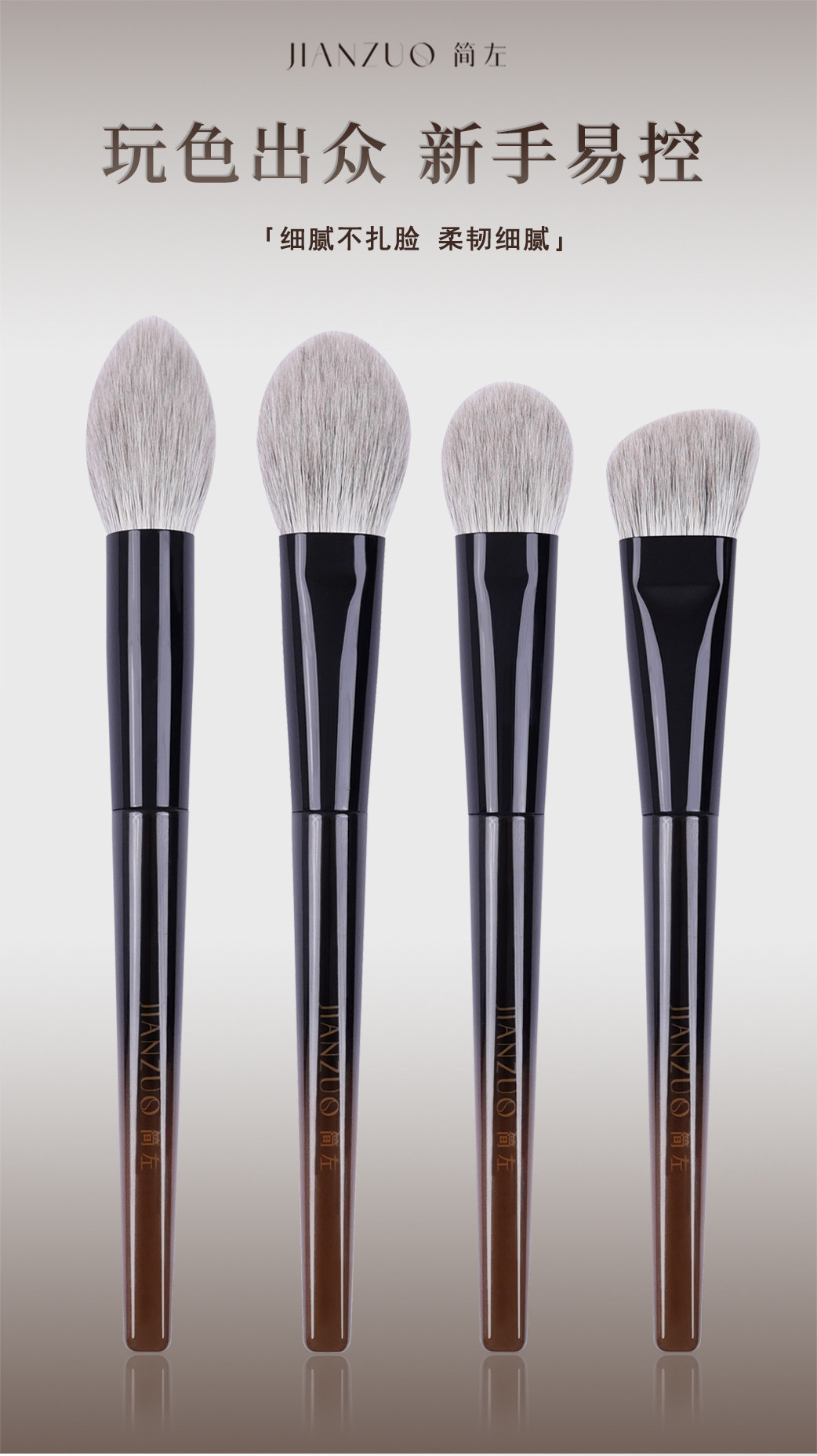 簡左如然系列動物毛化妝刷腮紅刷高光刷修容隂影輪廓散粉定妝刷子
