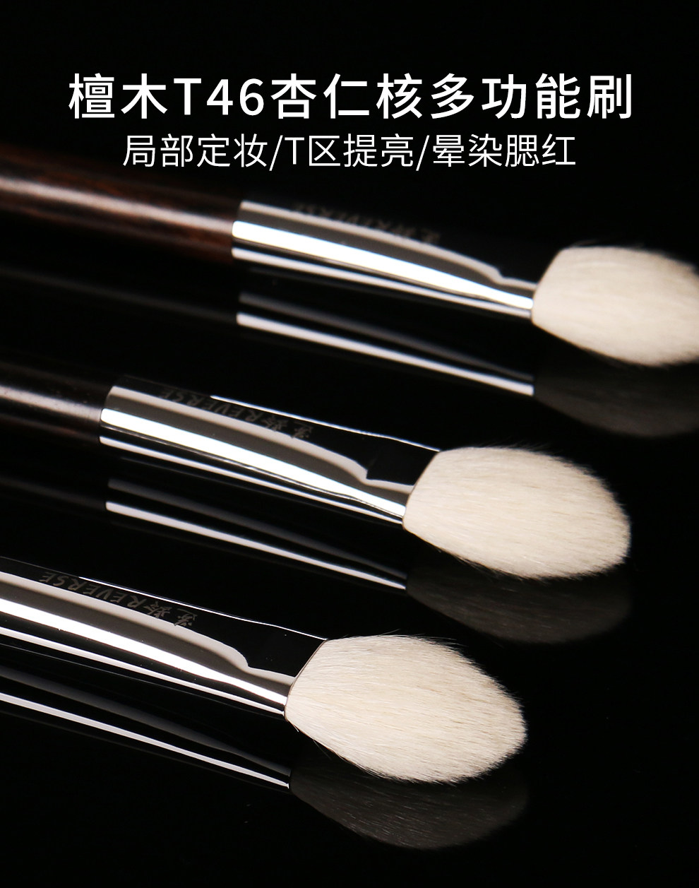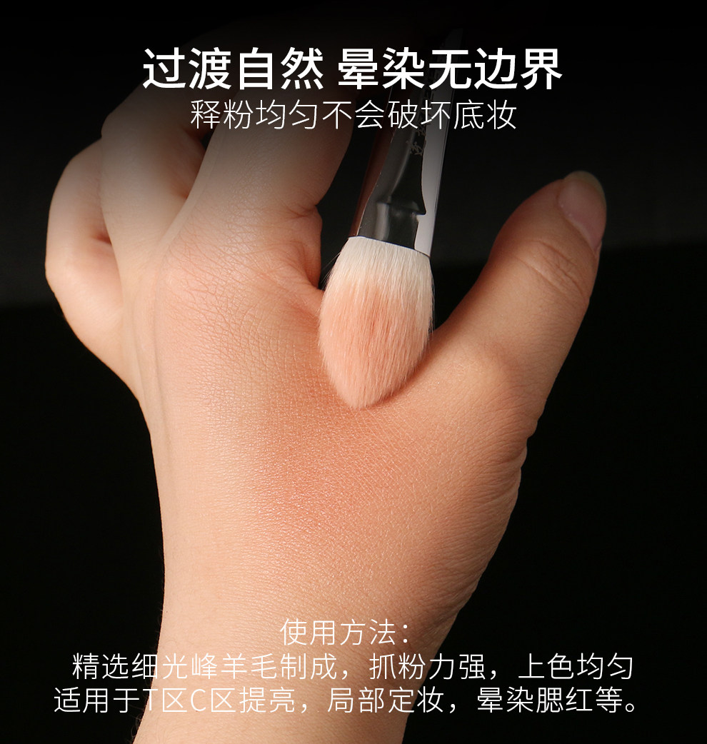 逆齡檀木T46杏仁核多功能刷動物毛啞光提亮侷部定妝腮紅刷高光刷