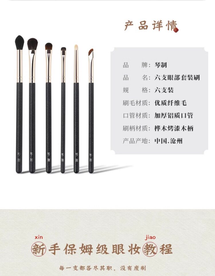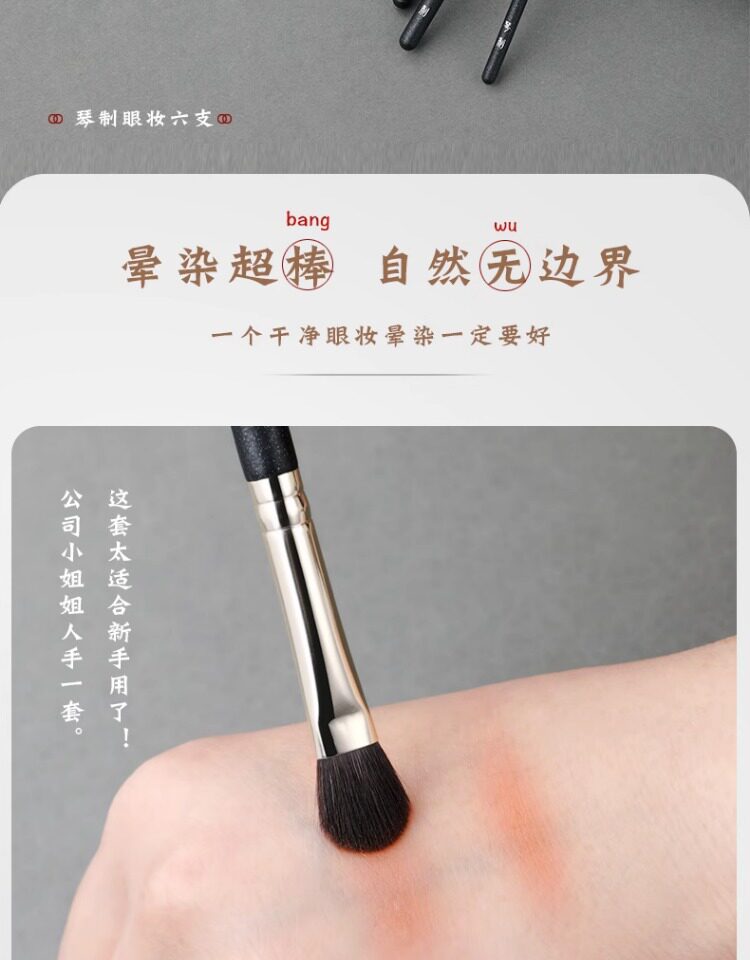 琴製化妝刷眼部六支套裝暈染鋪色刷上色刷眼影刷細節刷鐮刀眼線刷