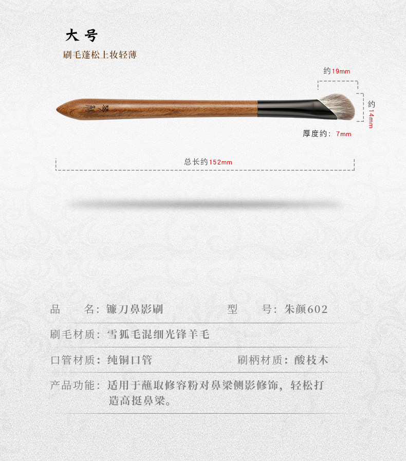 琴製化妝刷硃顔系列602鐮刀鼻影刷斜頭山根修容刷動物毛一支裝