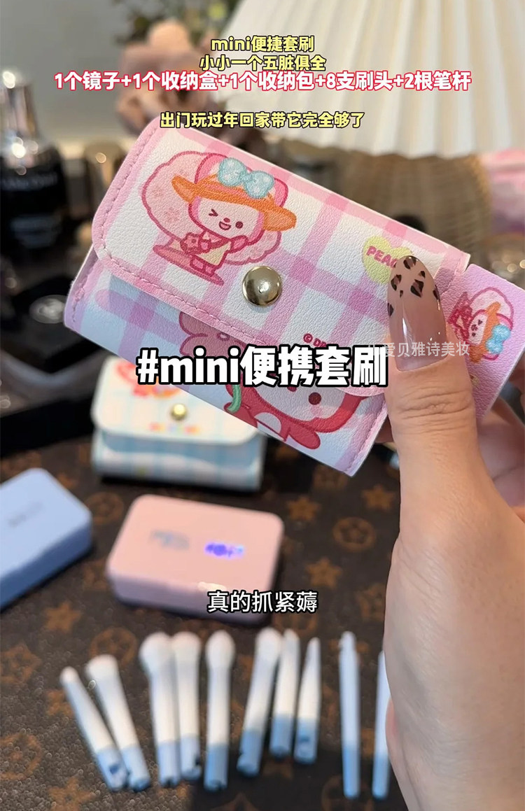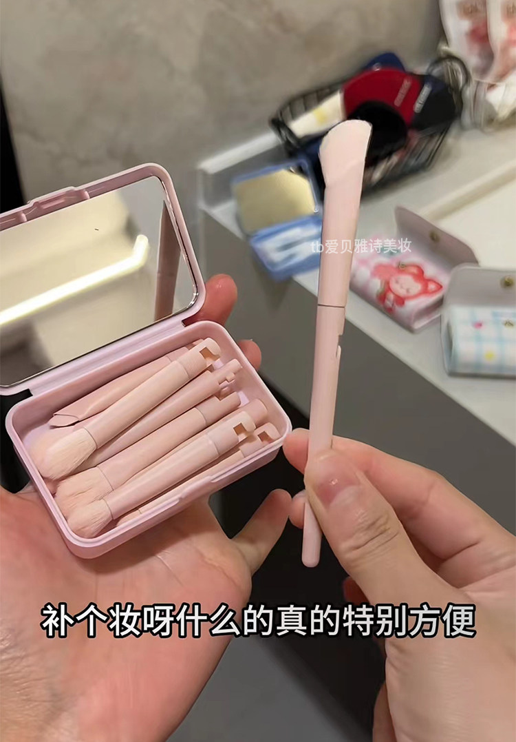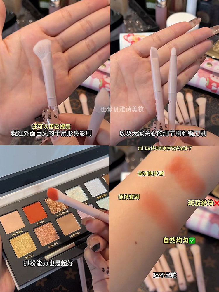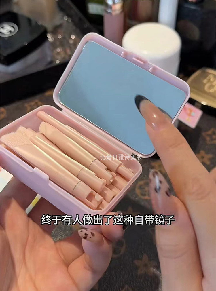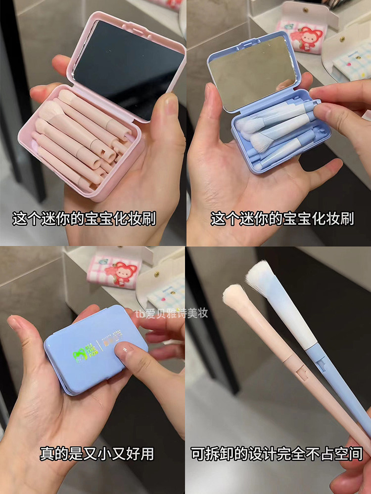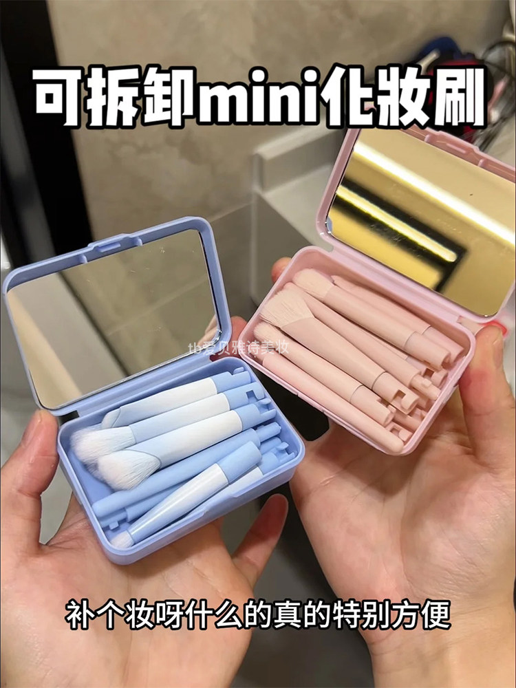補妝什麽呀特方便!迷你可攜式可拆卸拼接化妝刷套裝全套鏡子收納包