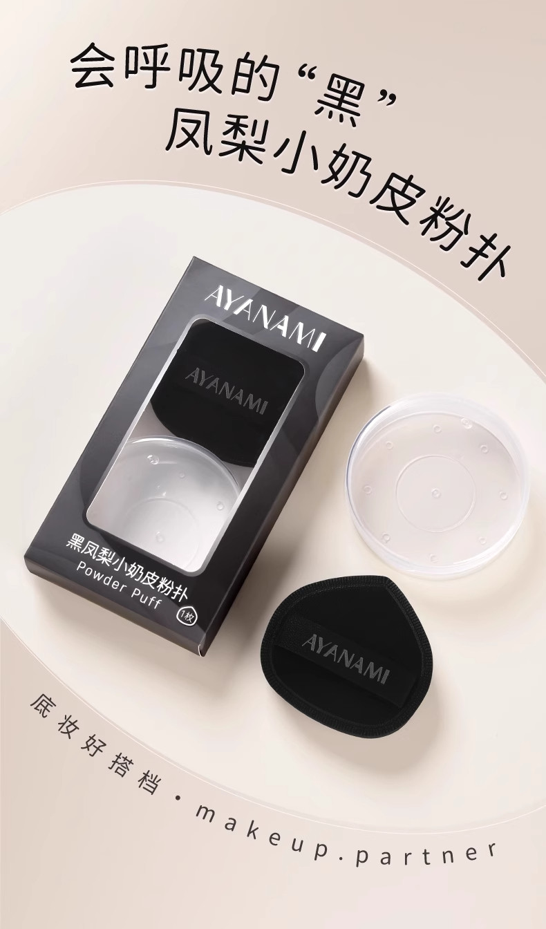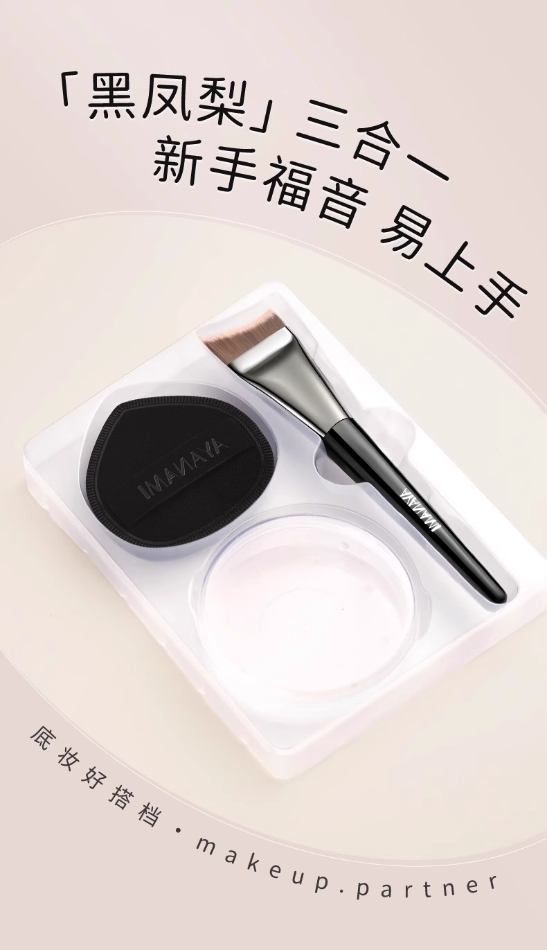 粉撲套裝無痕【黑鳳梨CP套刷】平頭一字粉底刷乾濕兩用柔軟粉撲