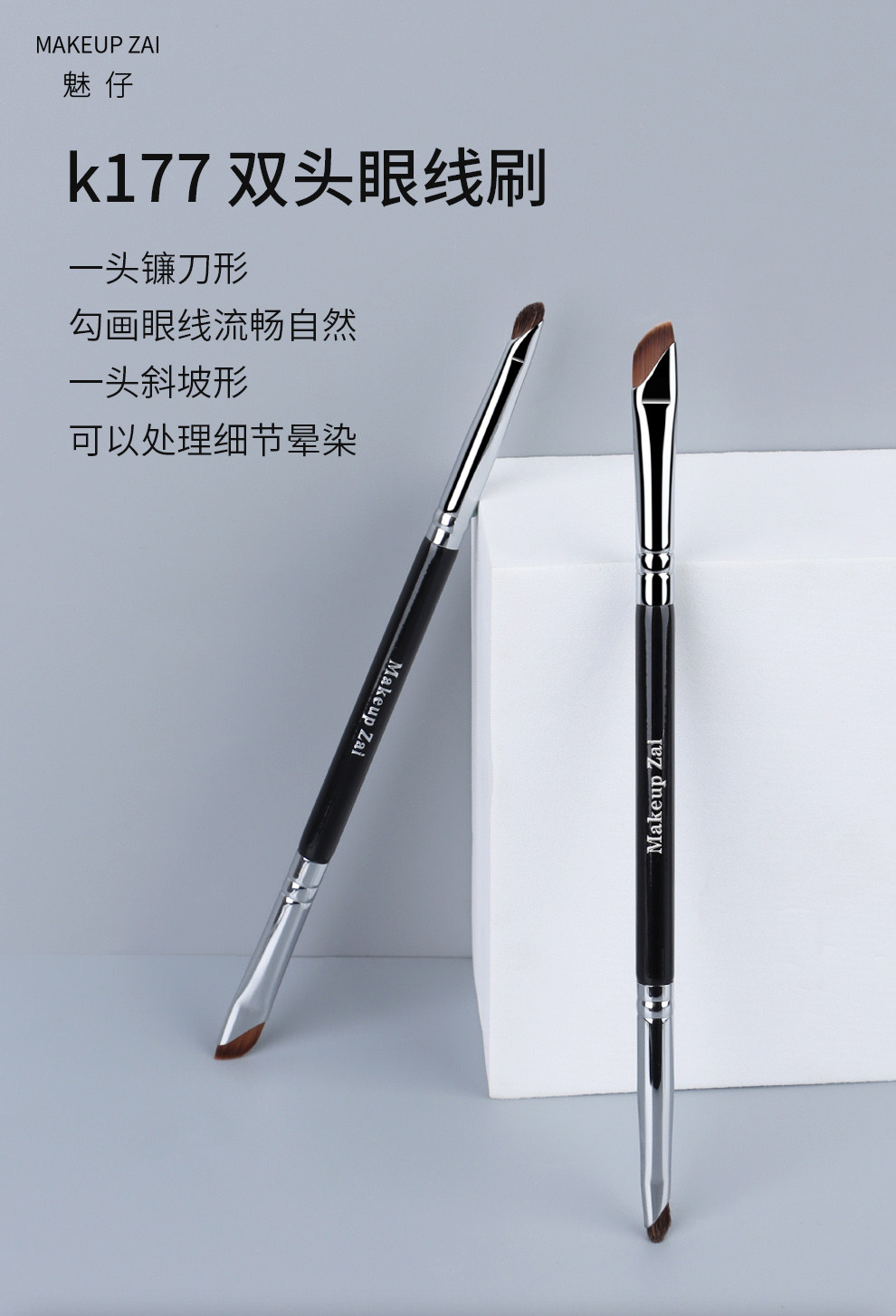 魅仔K177雙頭眼線刷眉刷鐮刀下至臥蠶刷斜角刀鋒細節一支裝化妝刷