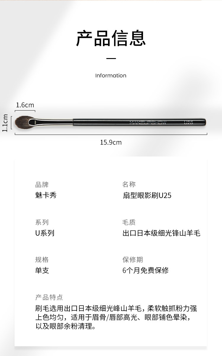魅卡秀U25扇形眼影刷高光刷小號眼部提亮細節刷超薄精準羊毛滄州