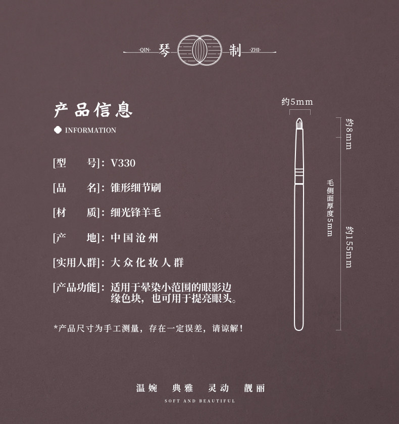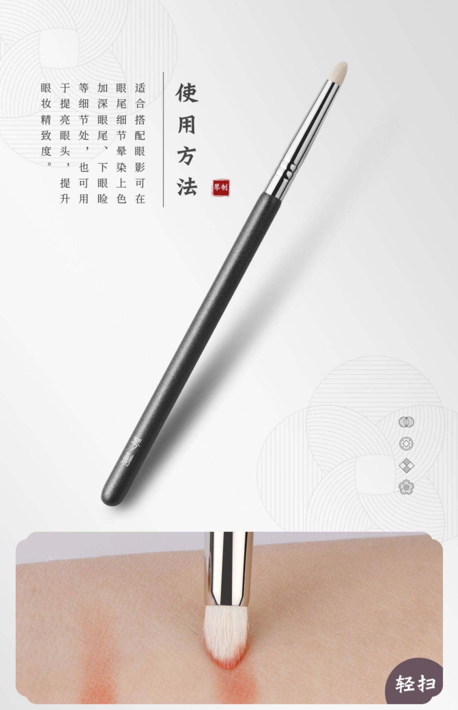 琴製化妝刷V系列V330錐形暈染刷眼部細節刷軟毛動物毛小號眼影刷
