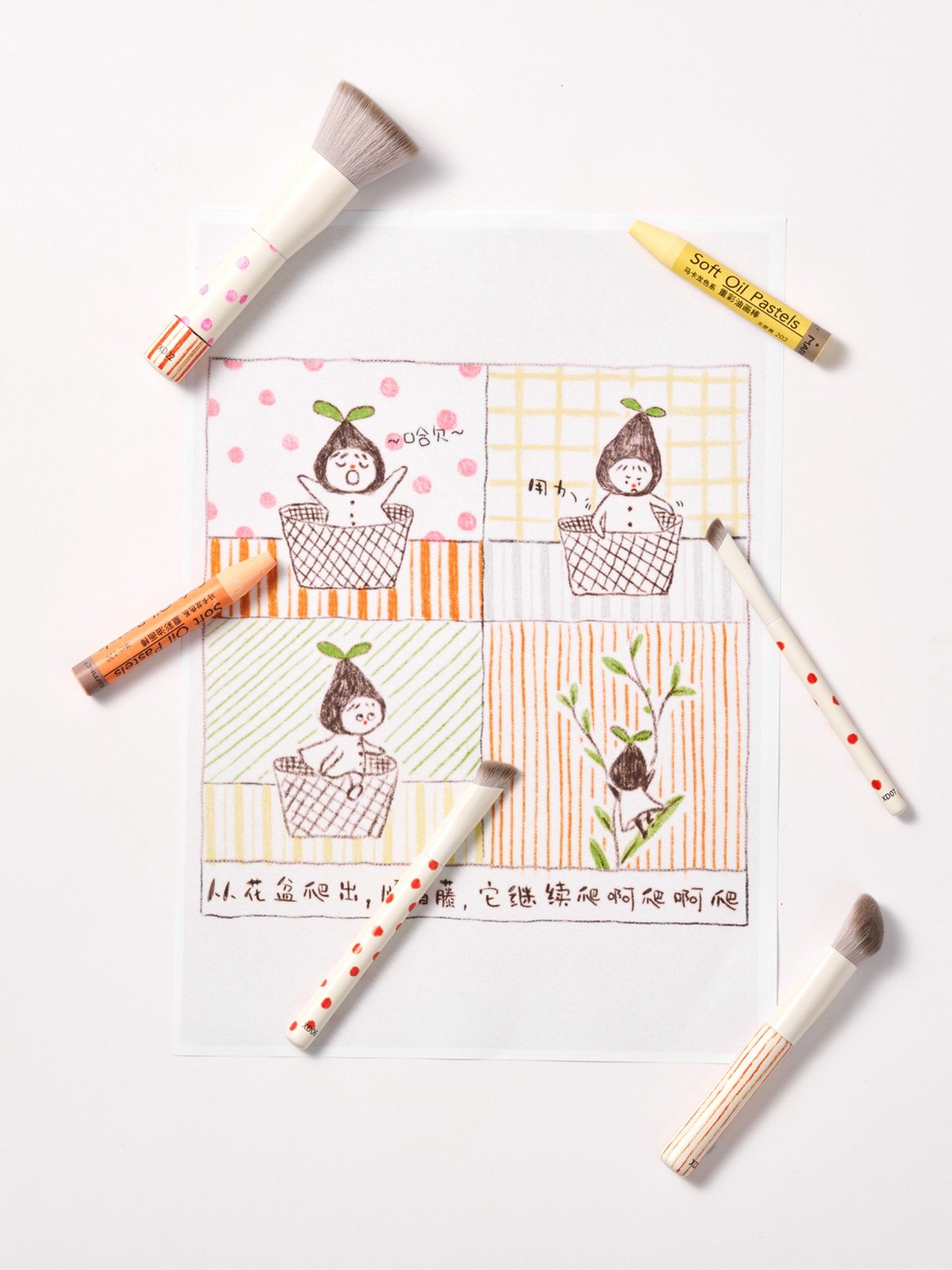 星兜小掃把腮紅刷斜坡形腮紅膏刷高光膏刷可攜式短柄化妝刷繪本XD04