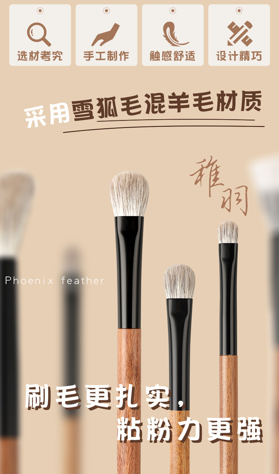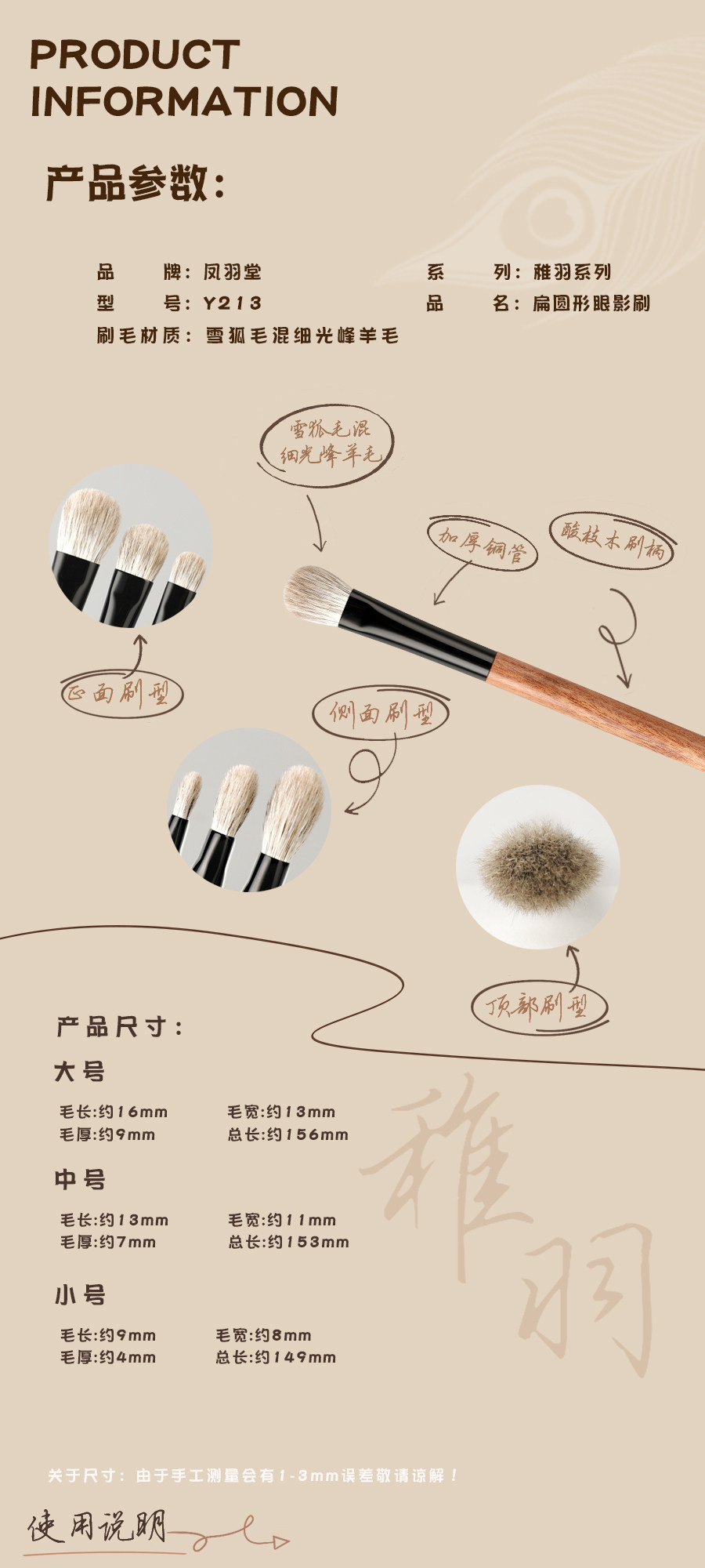 鳳羽堂化妝刷稚羽系列Y213扁圓頭動物毛眼影刷鋪色刷上色刷細節刷