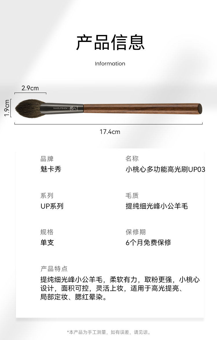 魅卡秀UP03小桃心高光刷提亮侷部定妝細節腮紅暈染刷動物毛化妝刷