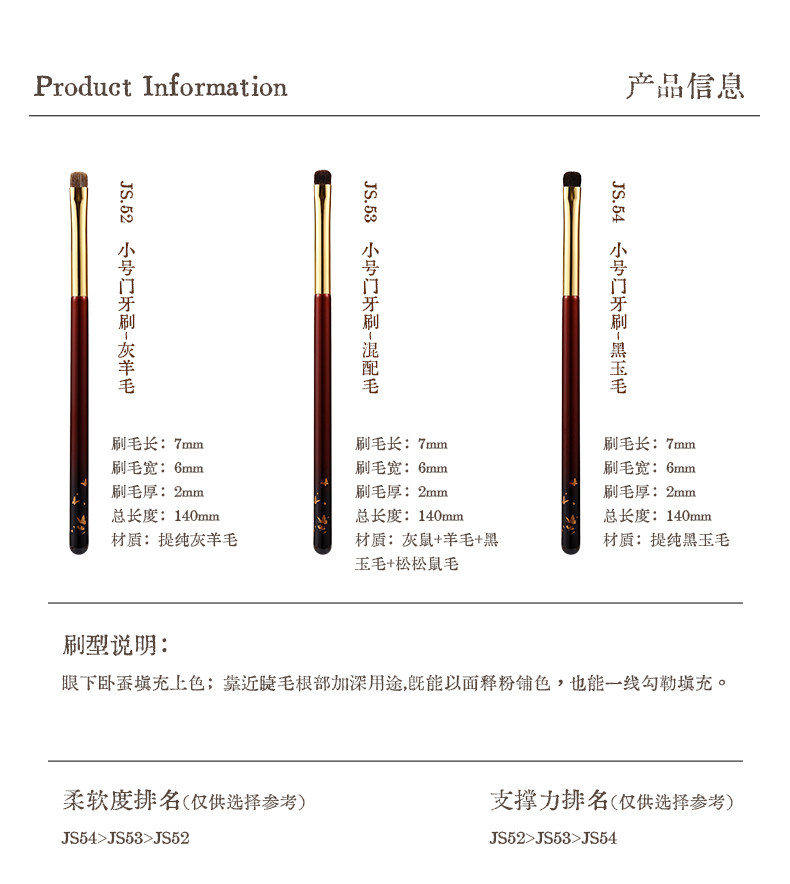 見刷如面 小號門牙眼部刷JS52/53/54灰羊毛黑玉毛細節加深臥蠶刷