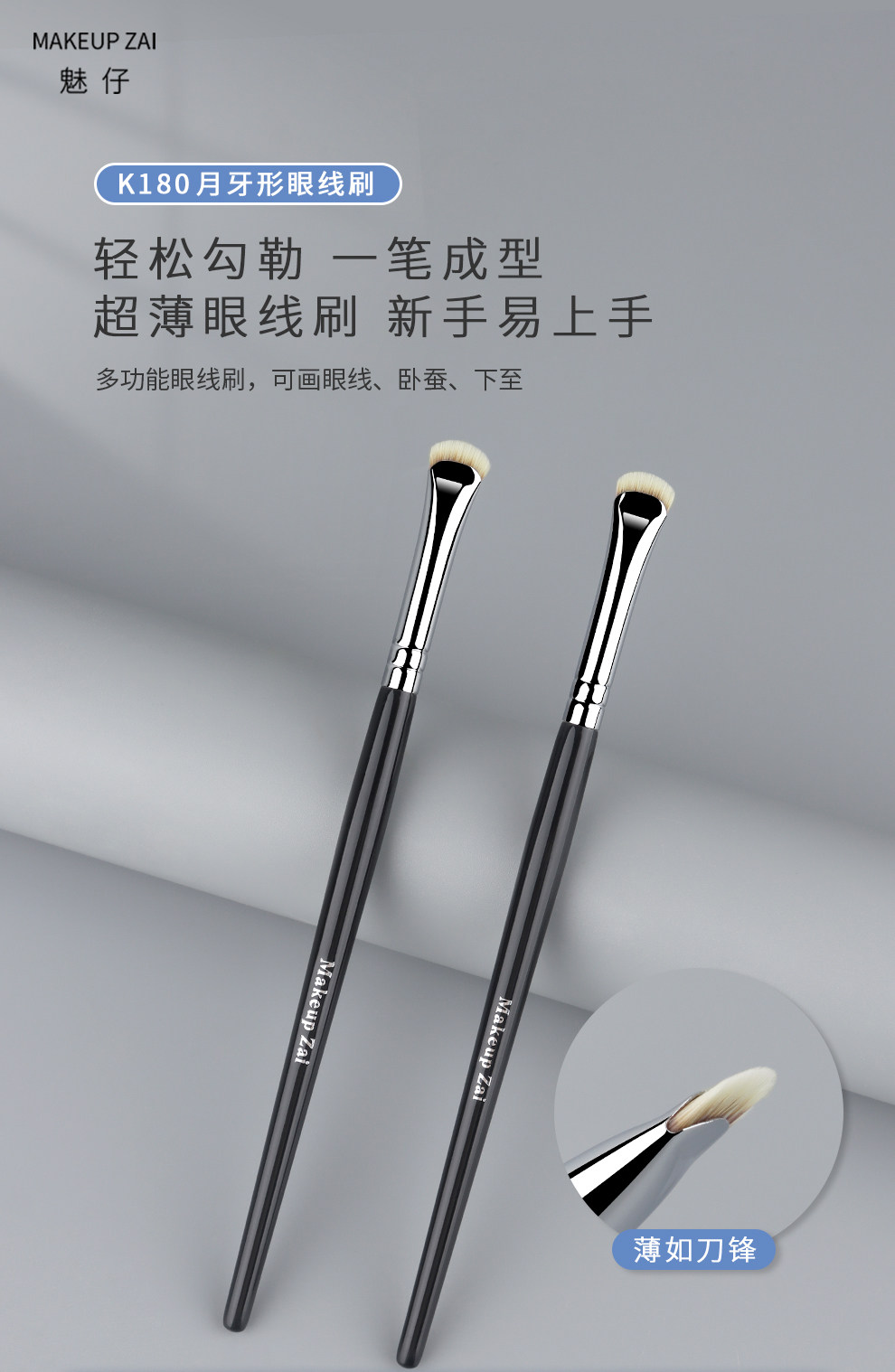 魅仔K180月牙形眼線刷一筆勾勒下至臥蠶刷極細扁頭眉刷刀鋒化妝刷