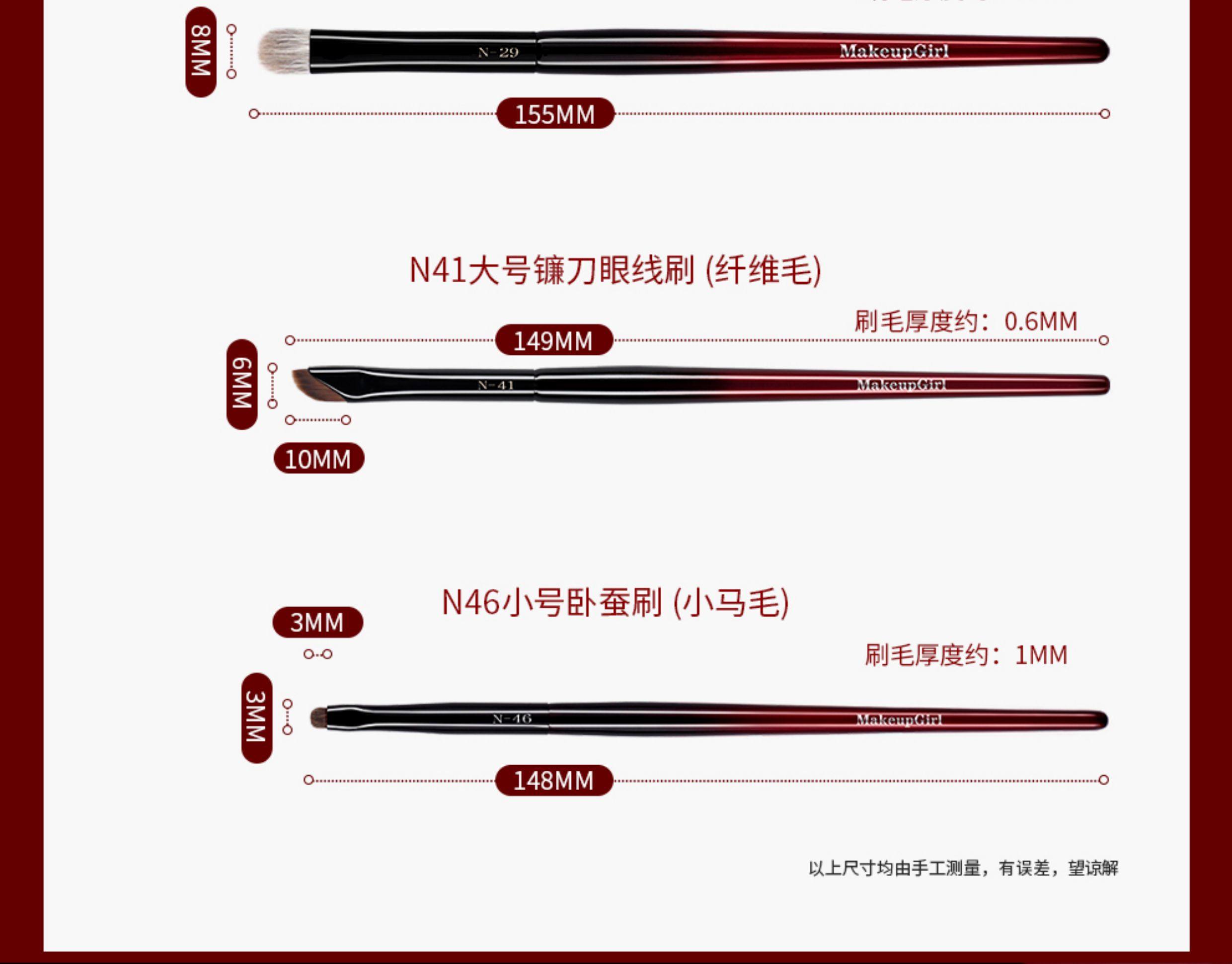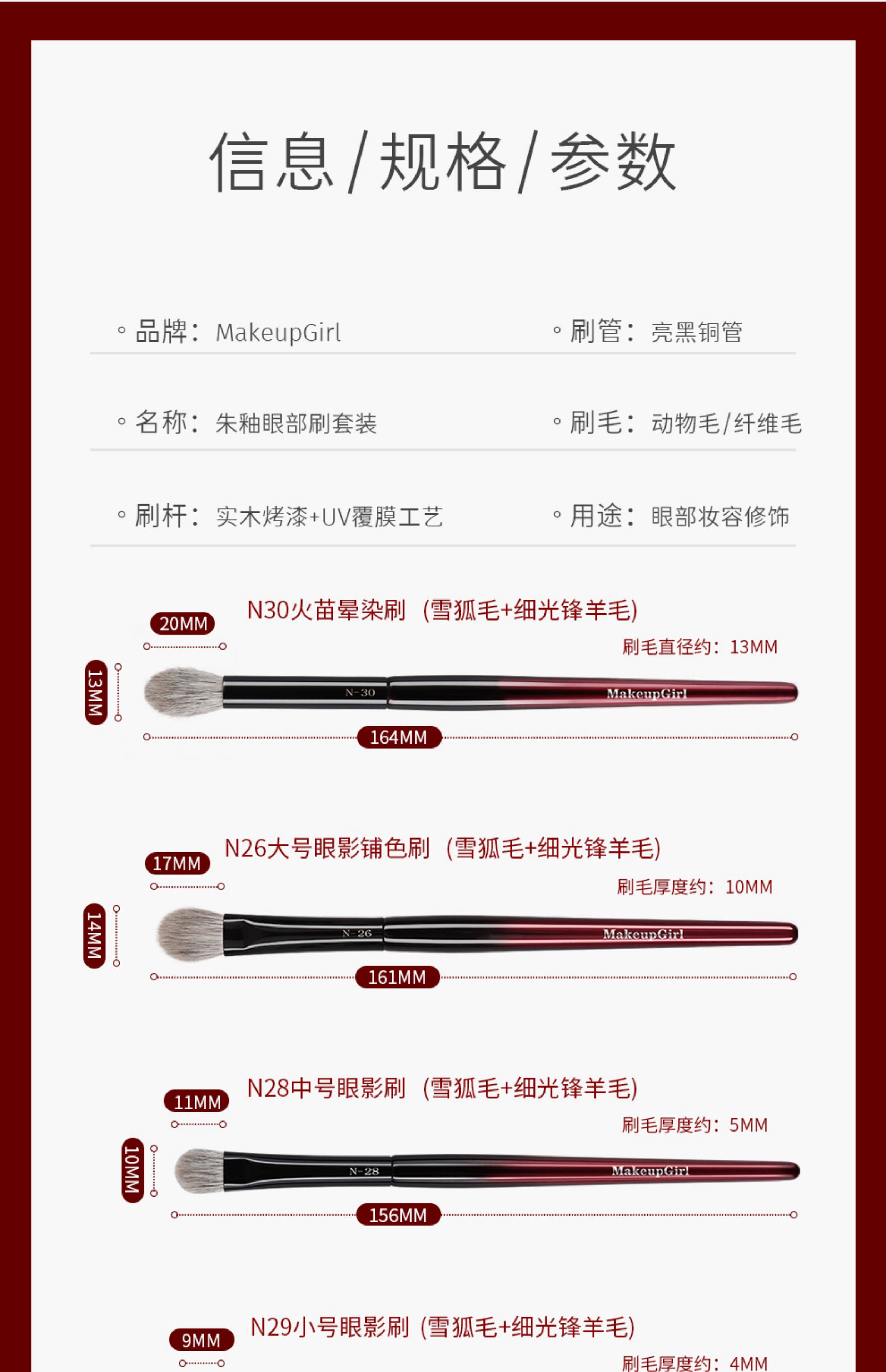 魅女郎硃釉眼影刷套裝細節暈染眼線刷動物毛眼部三件套滄州化妝刷