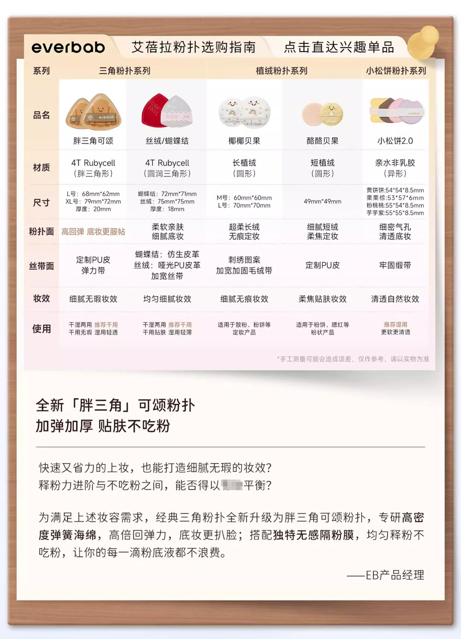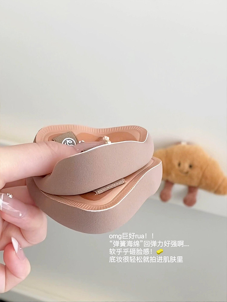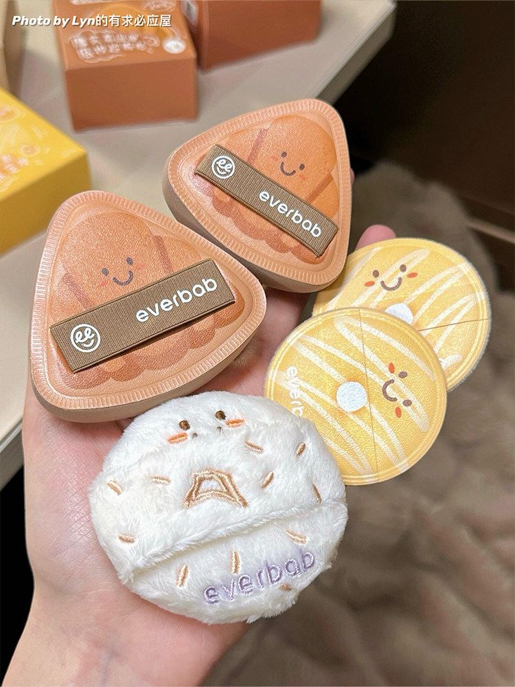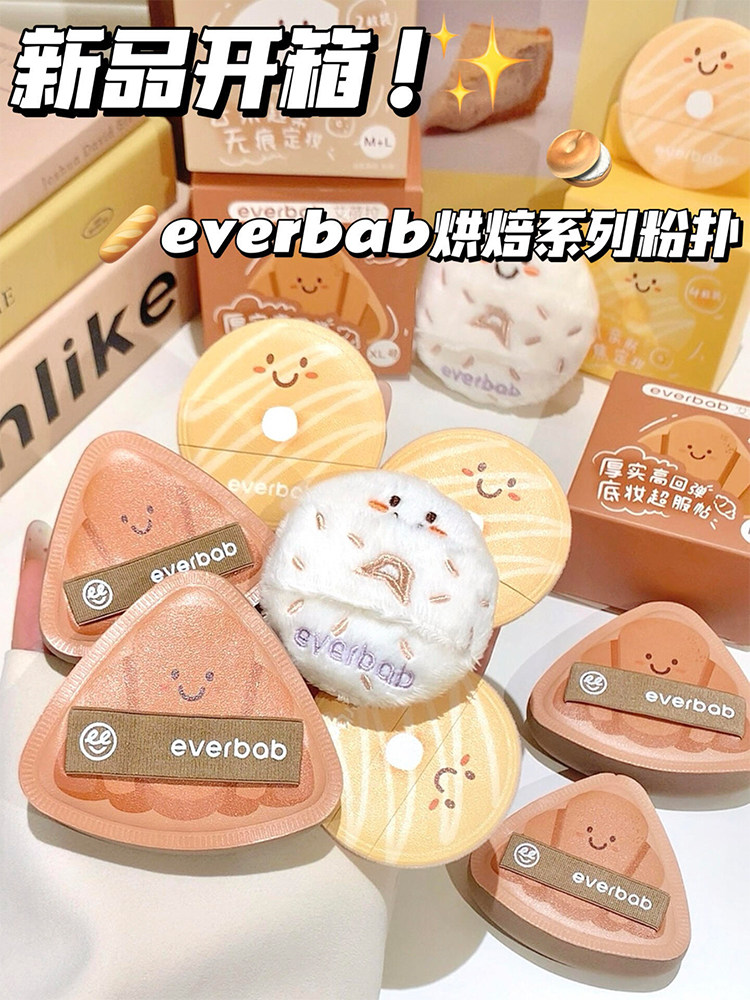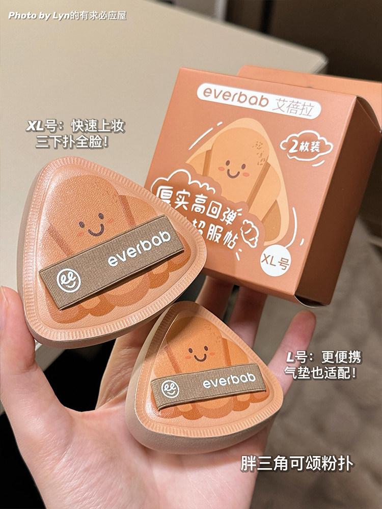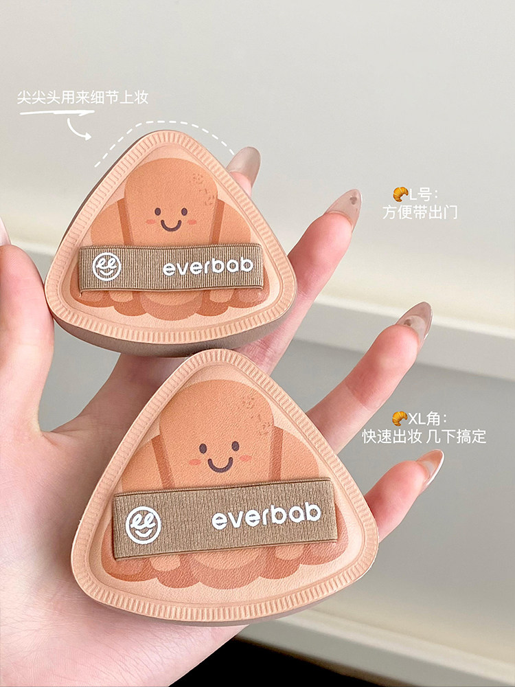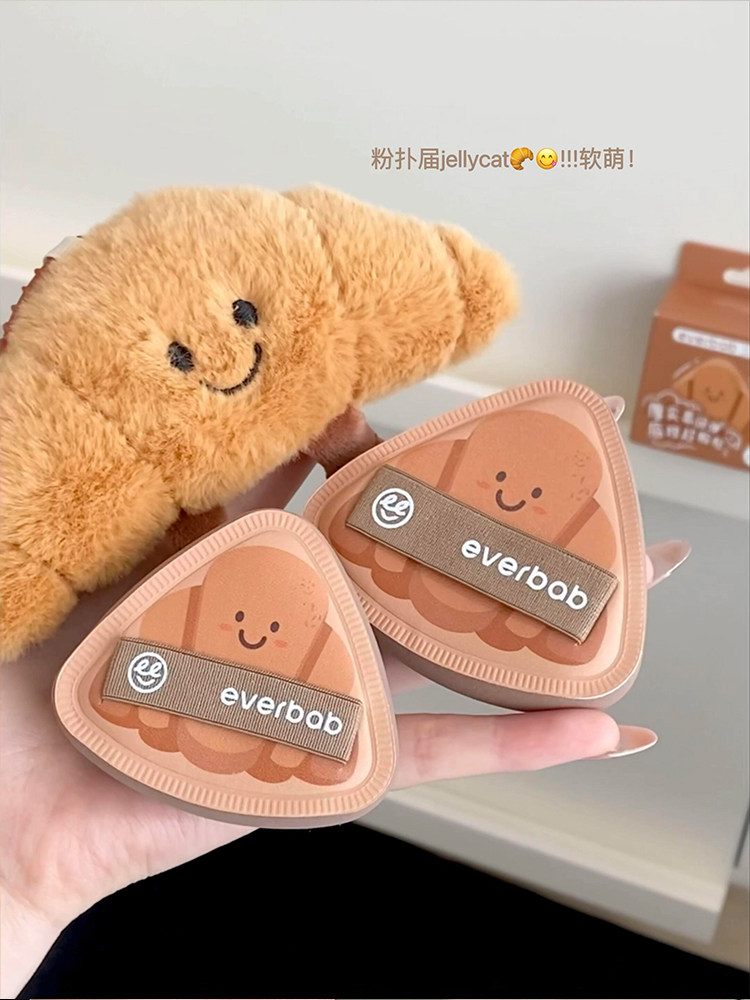 everbab氣墊粉撲胖三角可頌植絨散粉粉餅粉底液高彈專用不吃粉女