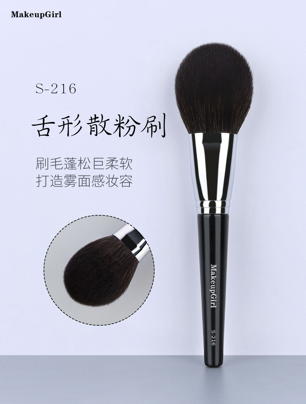 魅女郎S216散粉刷超大蓬松扁圓頭面部蜜粉定妝刷軟毛一支裝化妝刷