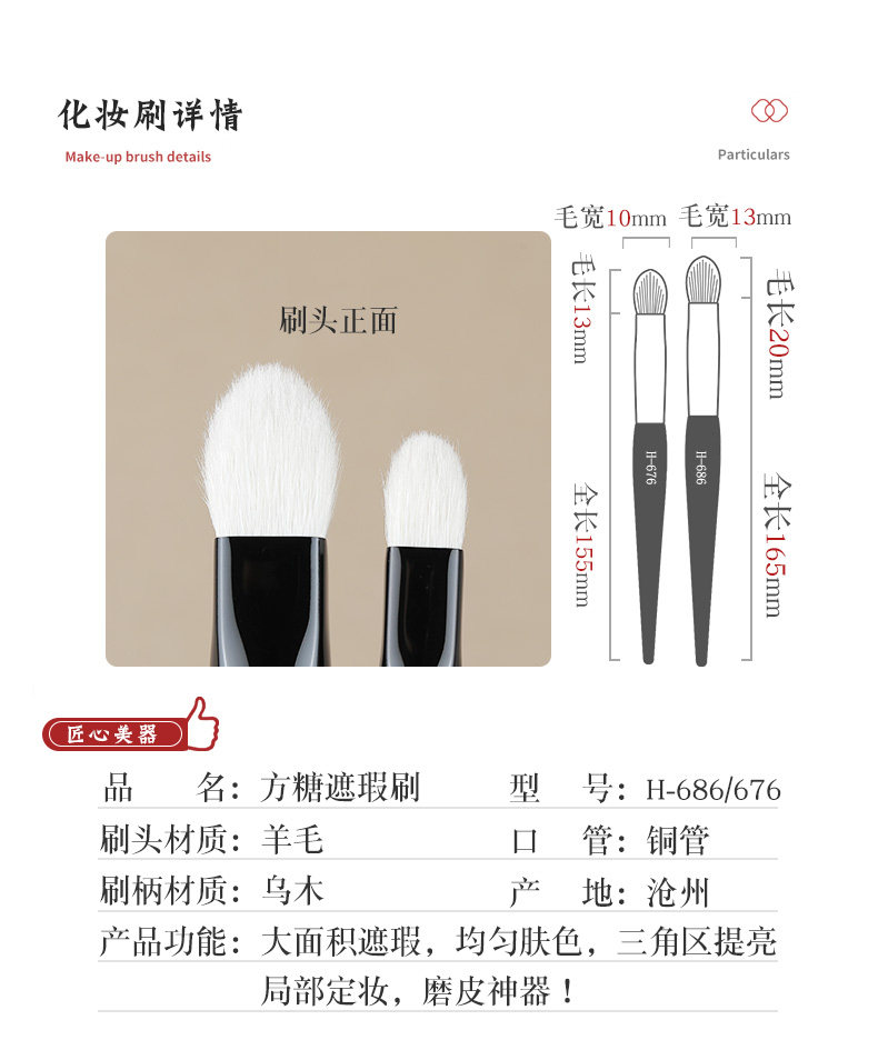 畫春堂化妝刷H686方糖三角面中提亮刷高光刷動物毛H676面部提亮刷