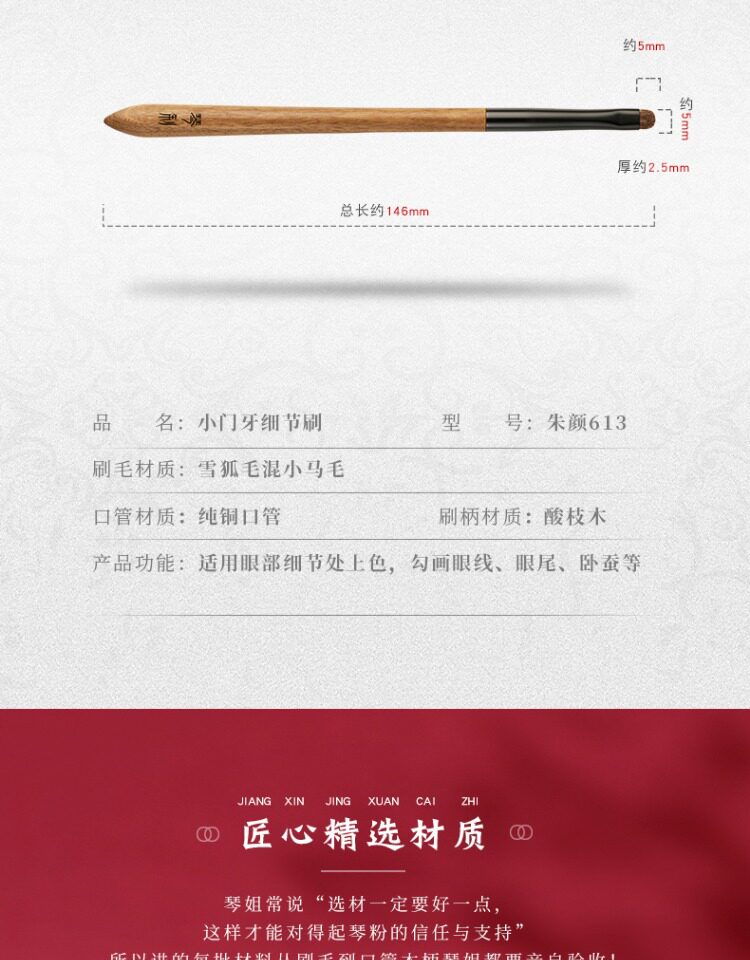 琴製化妝刷硃顔系列613小號門牙形細節刷精細眼影刷動物毛一支裝