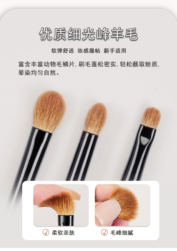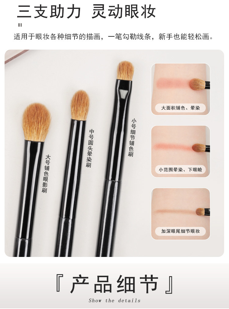 小胖丁3支羊毛眼影刷套裝三件套動物毛暈染鋪色刷細節臥蠶化妝刷