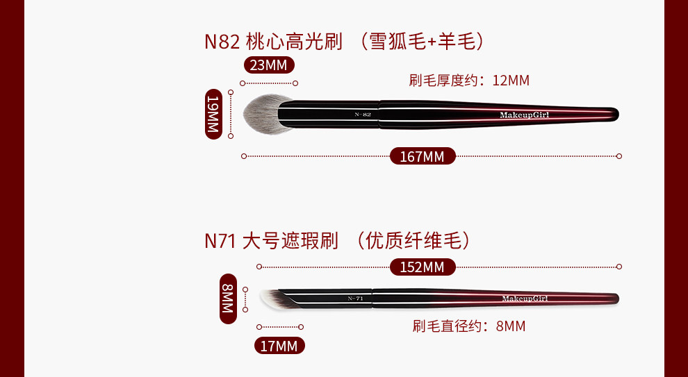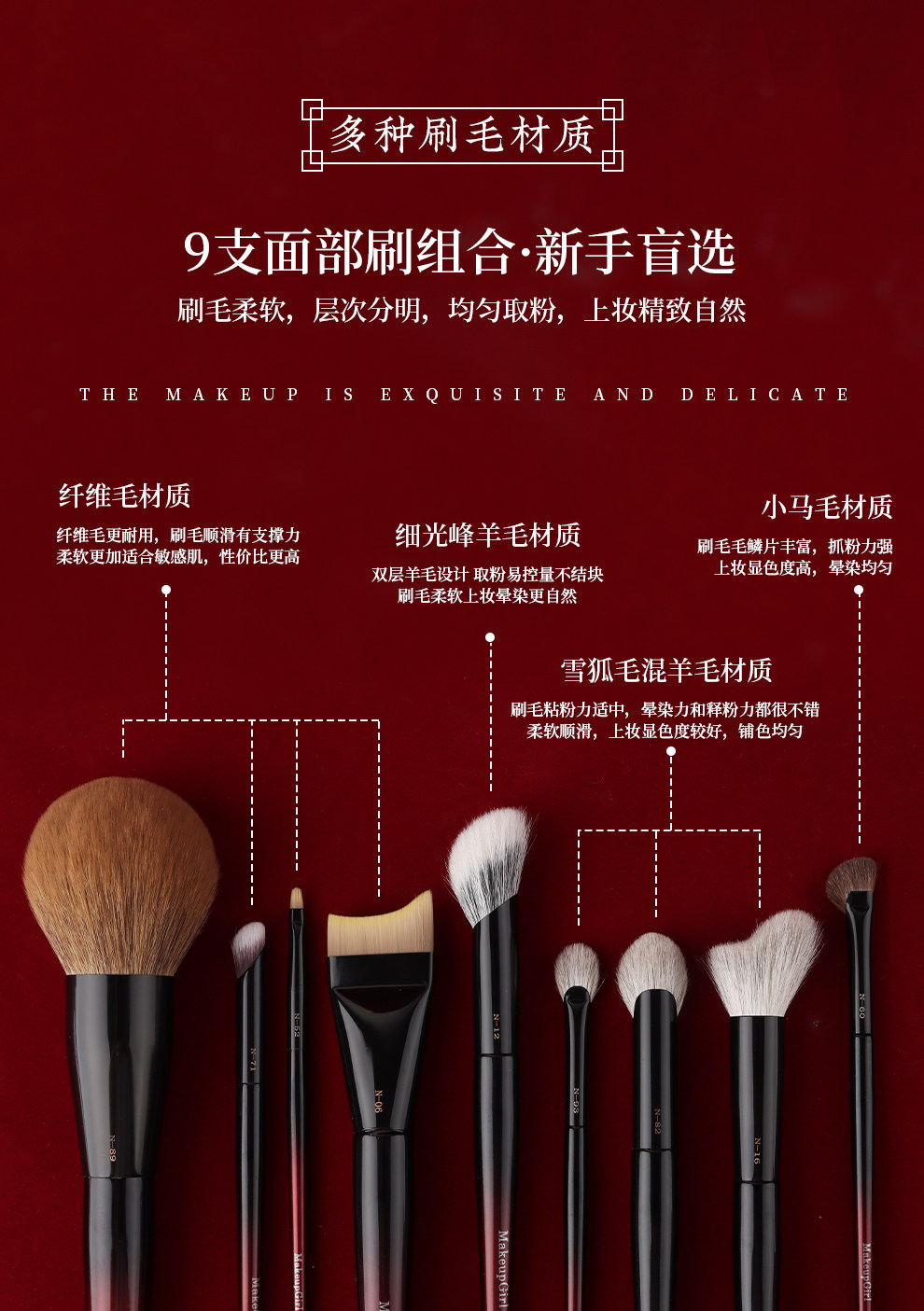 魅女郎硃釉面部刷套裝粉底遮瑕腮紅修容散粉刷新手軟毛專業化妝刷