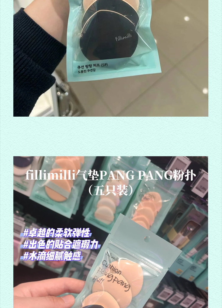 韓國fillimilli氣墊粉撲海綿化妝服帖不吃粉散粉定妝水滴乾濕兩用